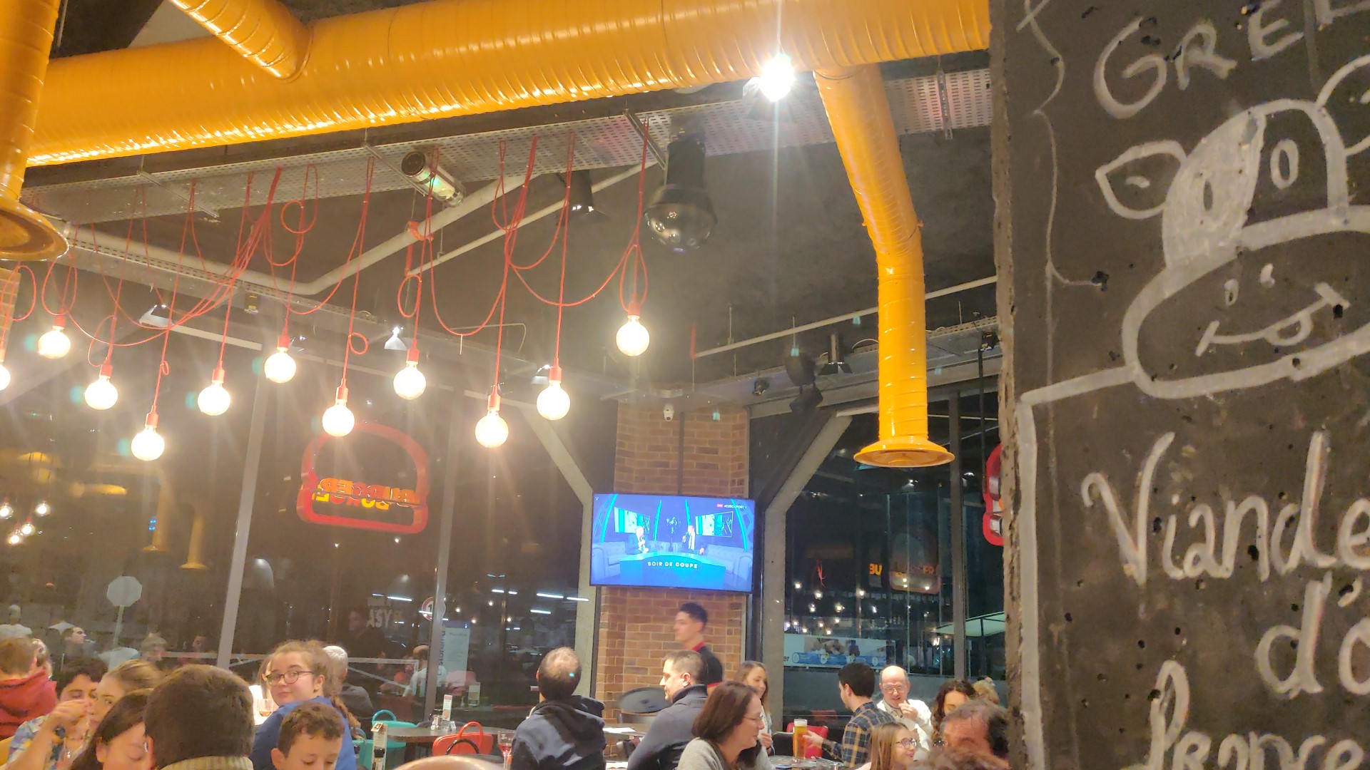 Ambiance conviviale et survoltée lors d'événements sportifs importants. On y mange bien. Les burgers sont bons comme à chaque fois. Les prix abordables.
