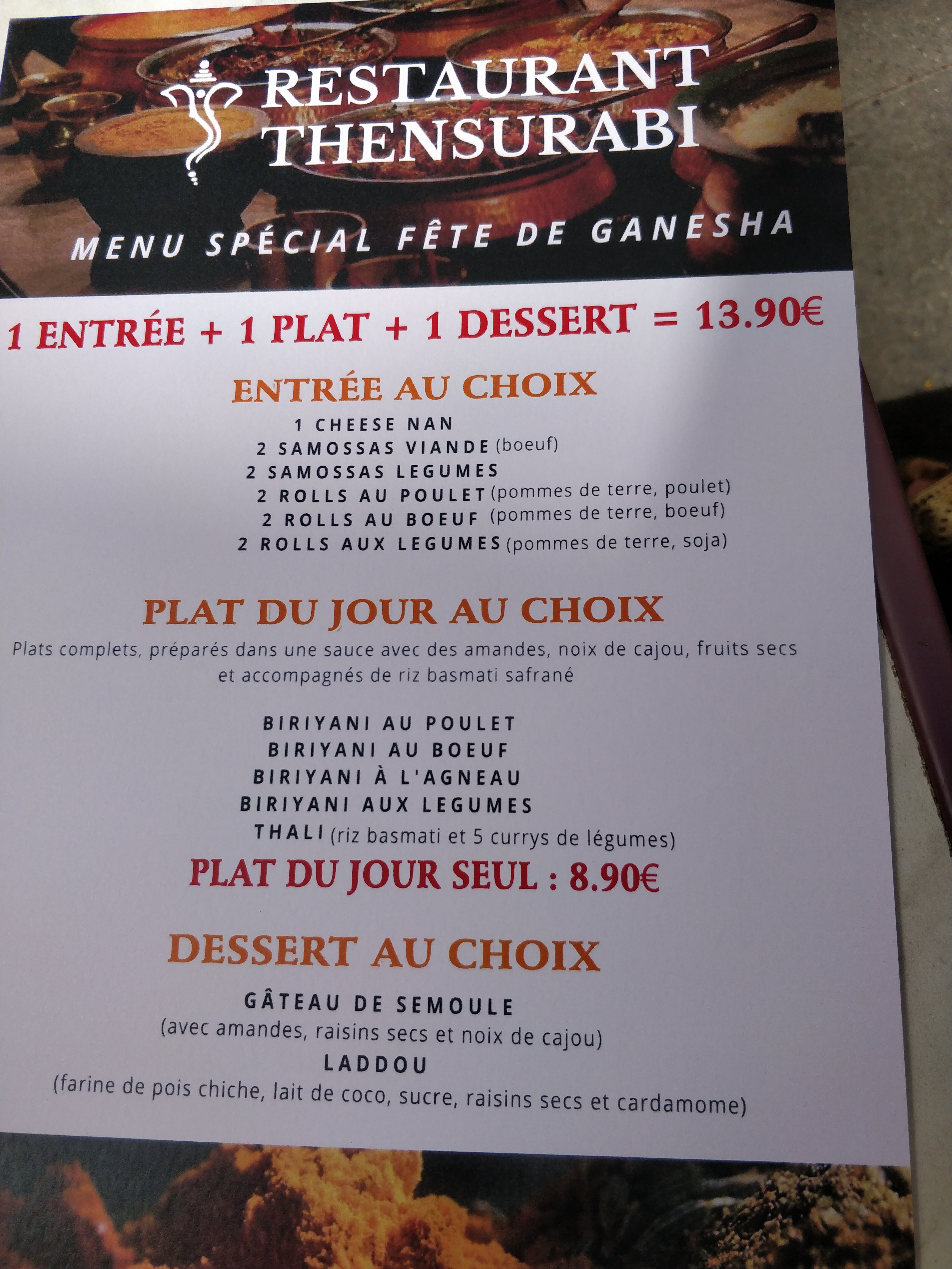 Authentique restaurant indien, au cœur du quartier indien à Paris. (Photo jointes lors de la fête de Ganesh qui a lieu fin août)