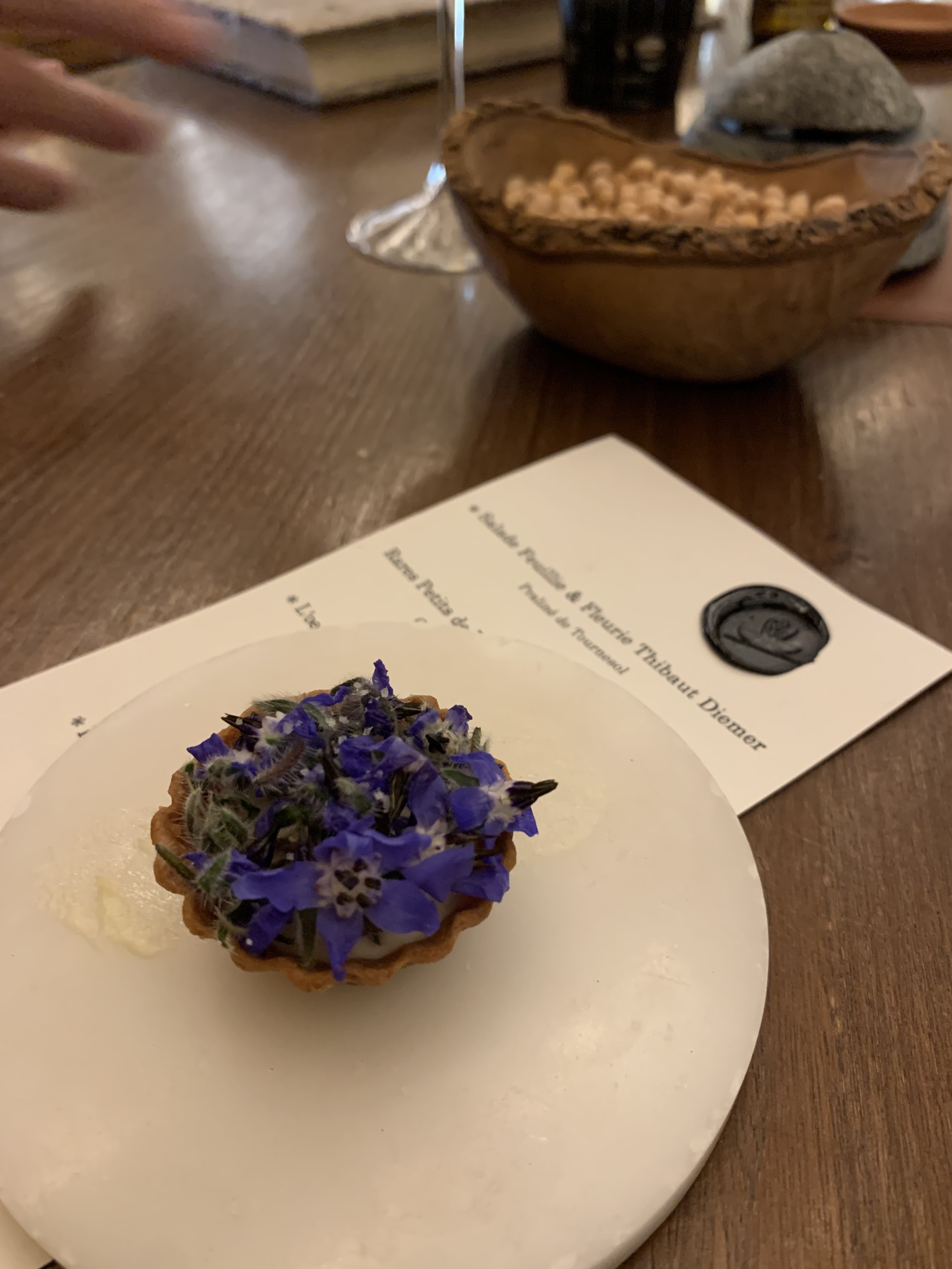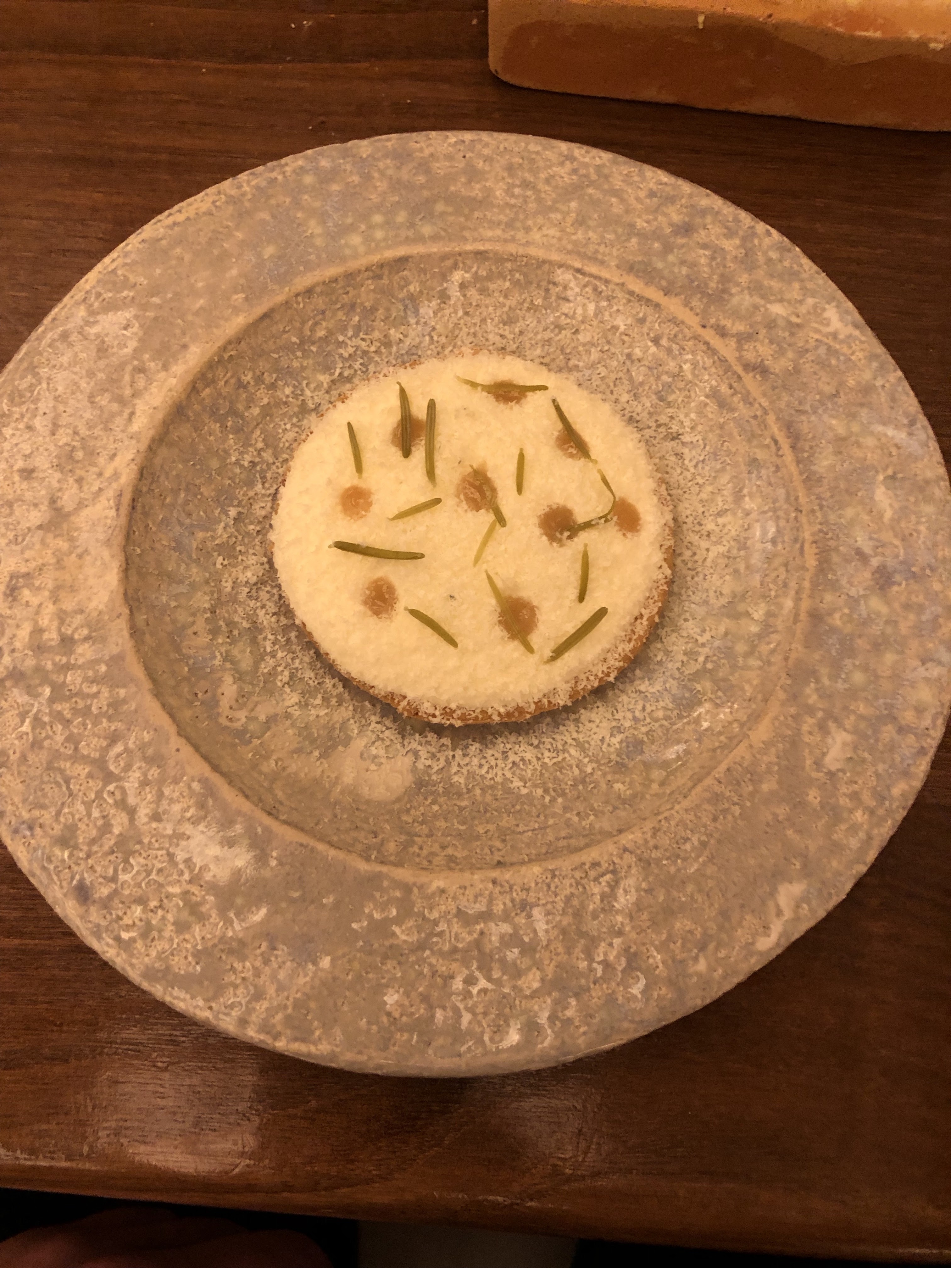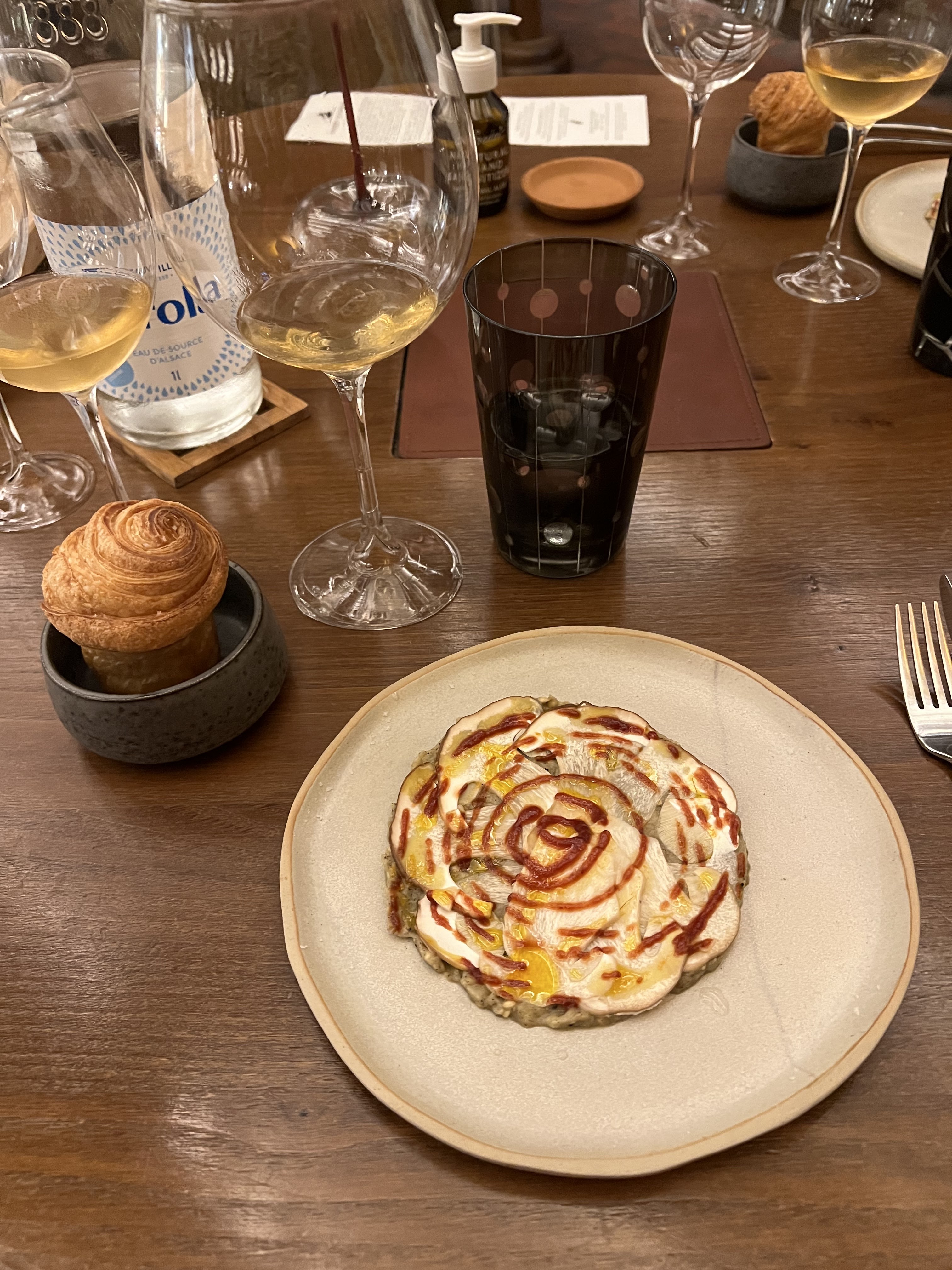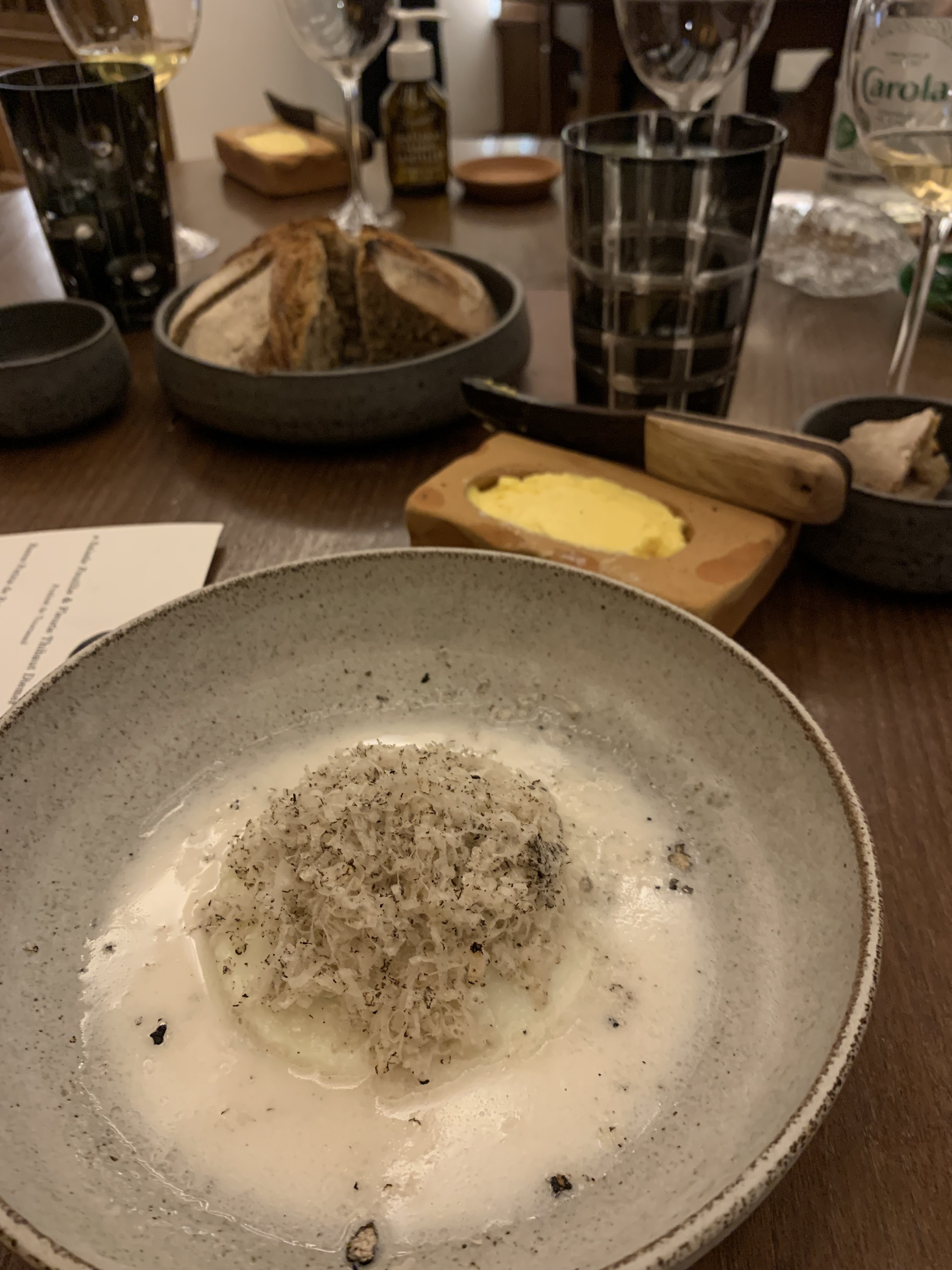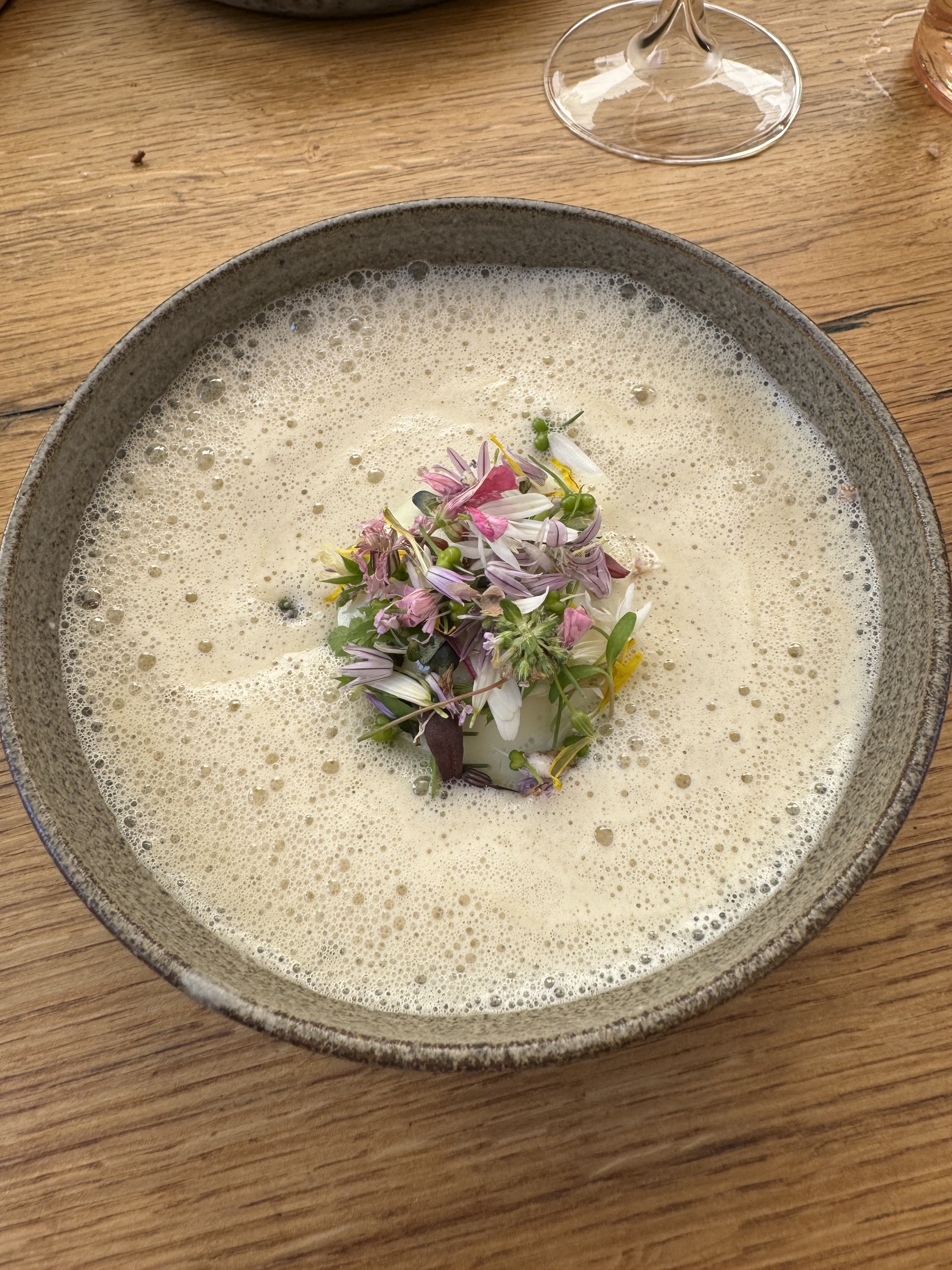 Nous avons eu un repas fantastique ici. Le service était impeccable et on pouvait vraiment dire combien d'efforts ils ont déployé pour créer une expérience merveilleuse. Lorsque nous sommes arrivés, il y avait un panier de pain au levain cru sur notre table, celui-ci nous a ensuite été servi fraîchement sorti du four plus tard au cours de notre soirée avec du beurre fraîchement baratté sous nos propres yeux. Génie!!! Cependant, une partie de notre soirée m’a complètement brisé le cœur. Alors que nous parlions au sommelier de nos boissons à combiner avec notre repas, nous nous sommes sentis poussés à prendre l'accord mets et vins complet de 9 plats. Elle a ajouté que les gens pouvaient généralement conduire ensuite, car le montant était très faible.
