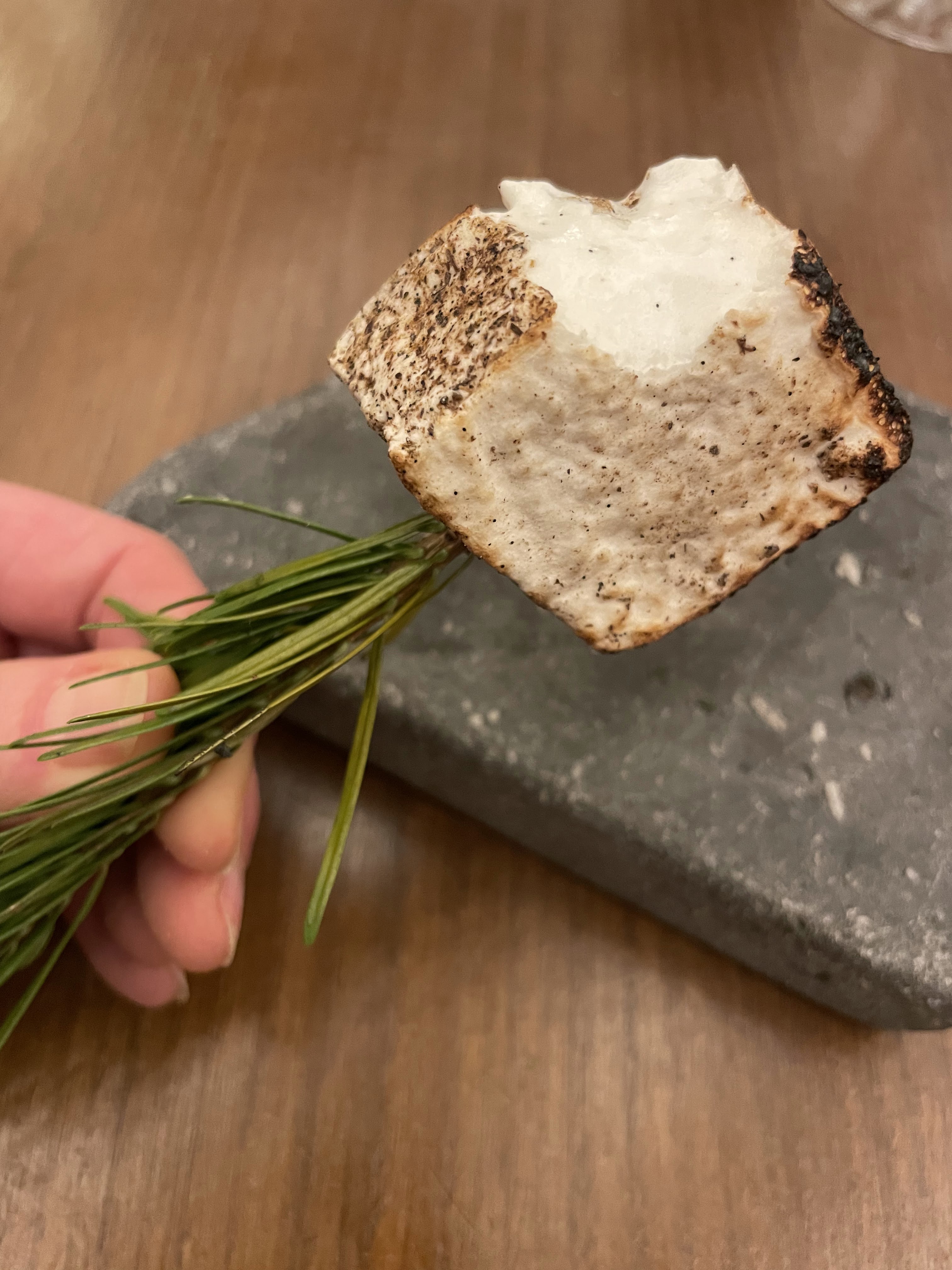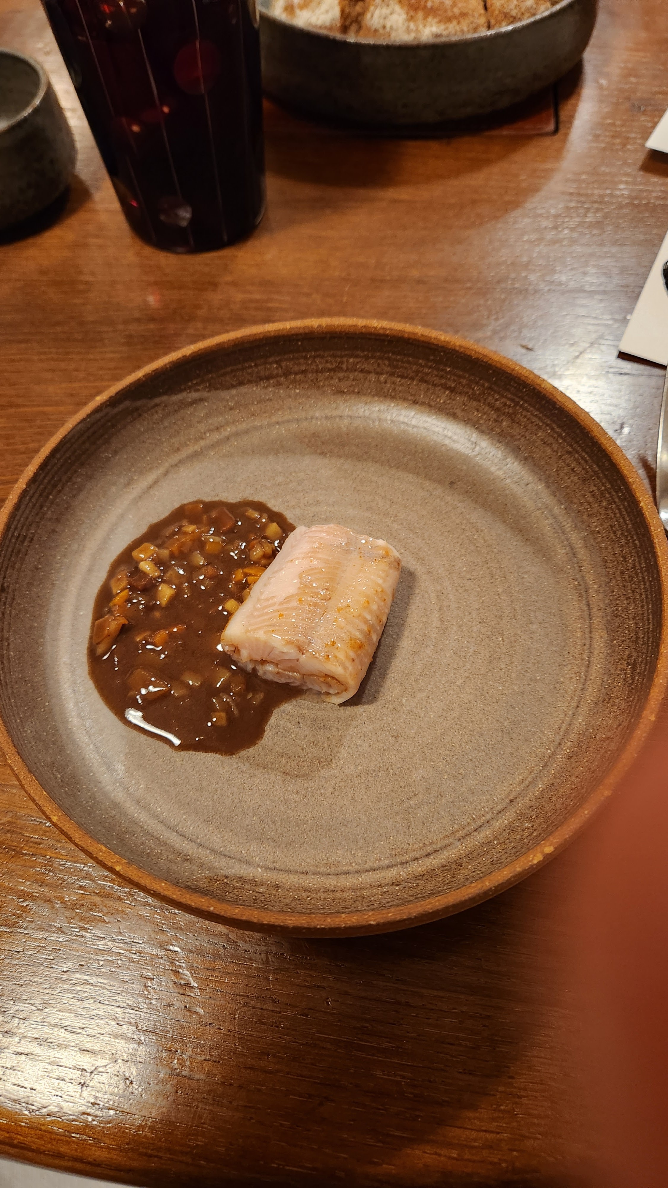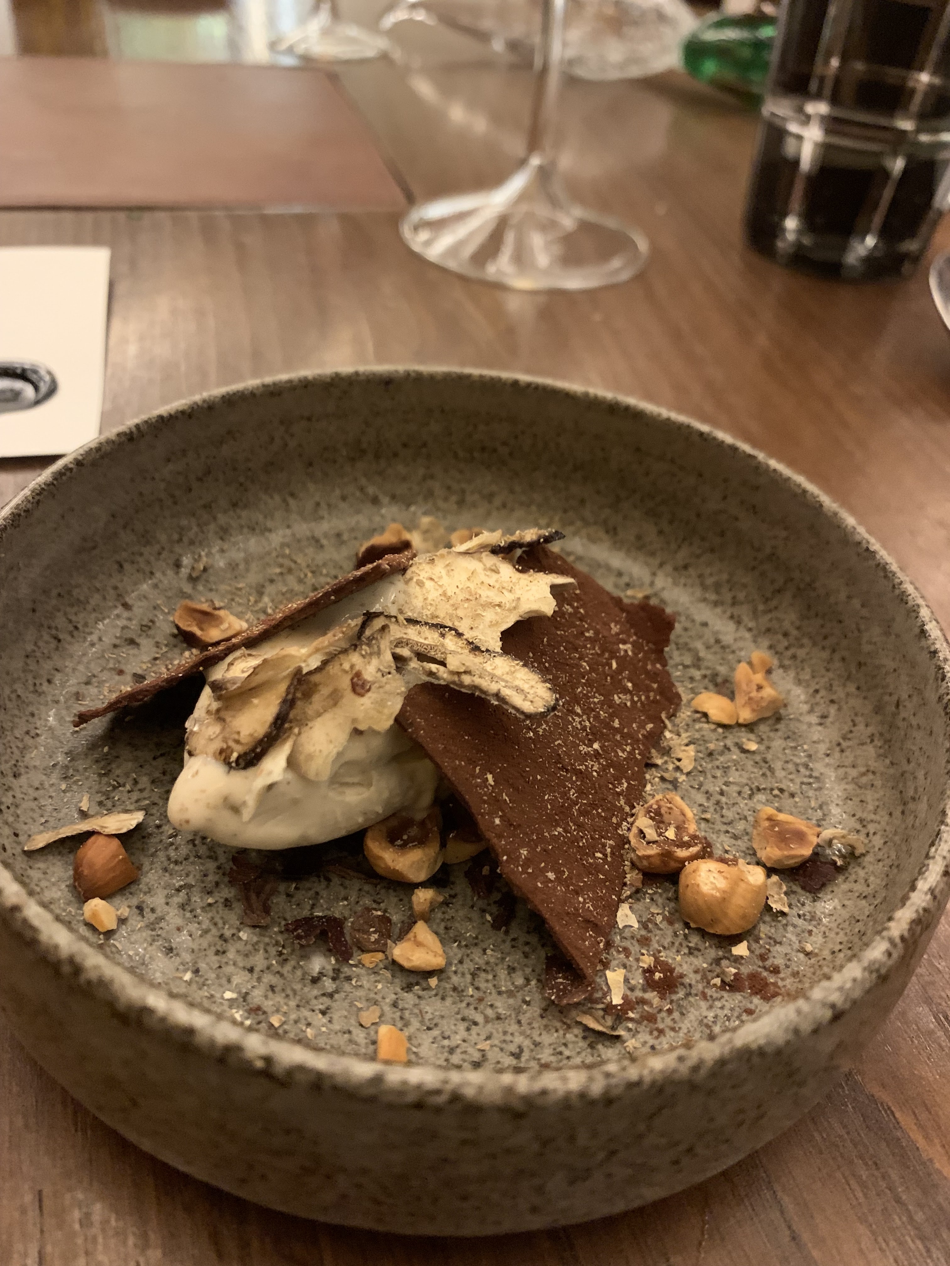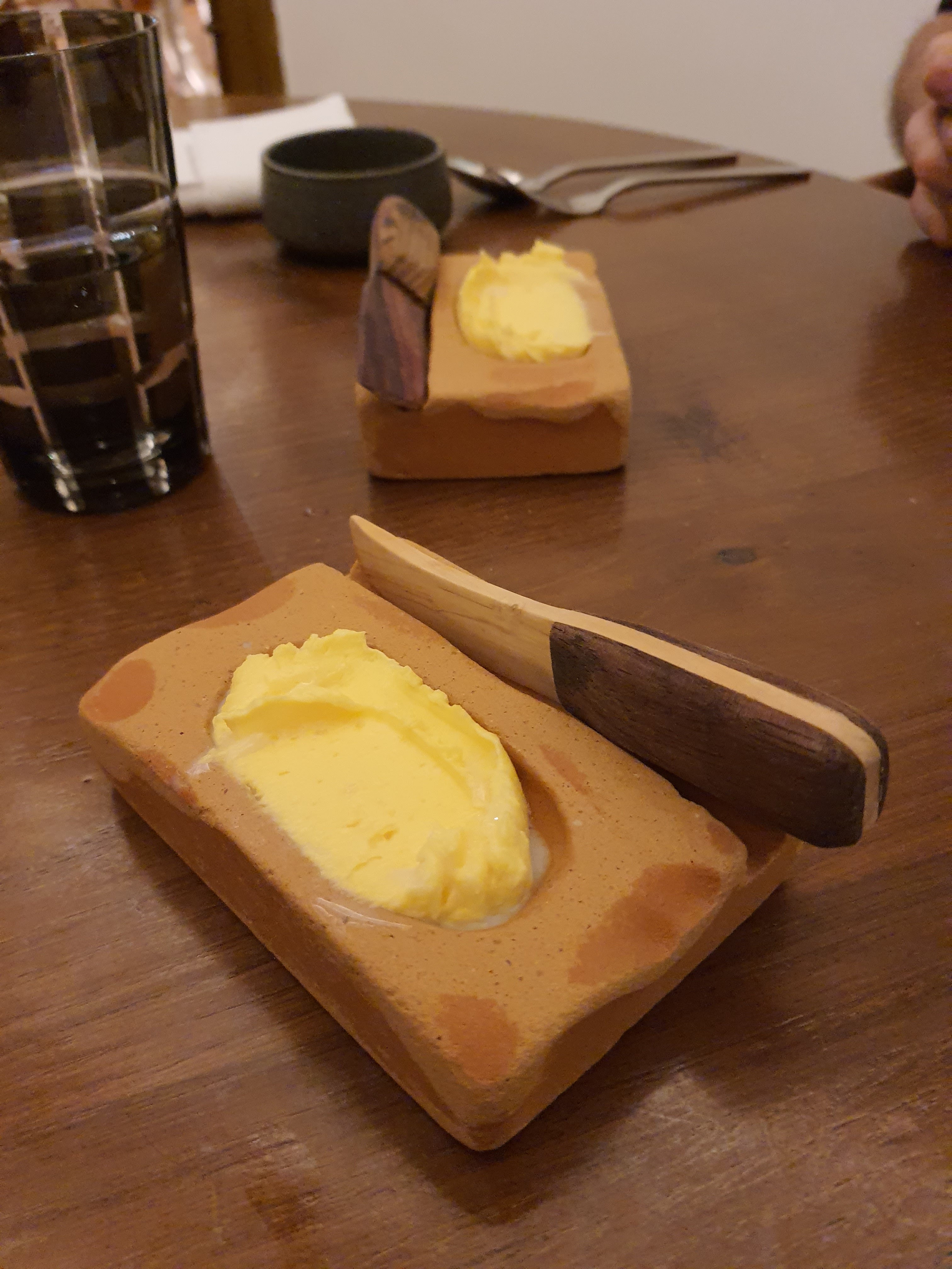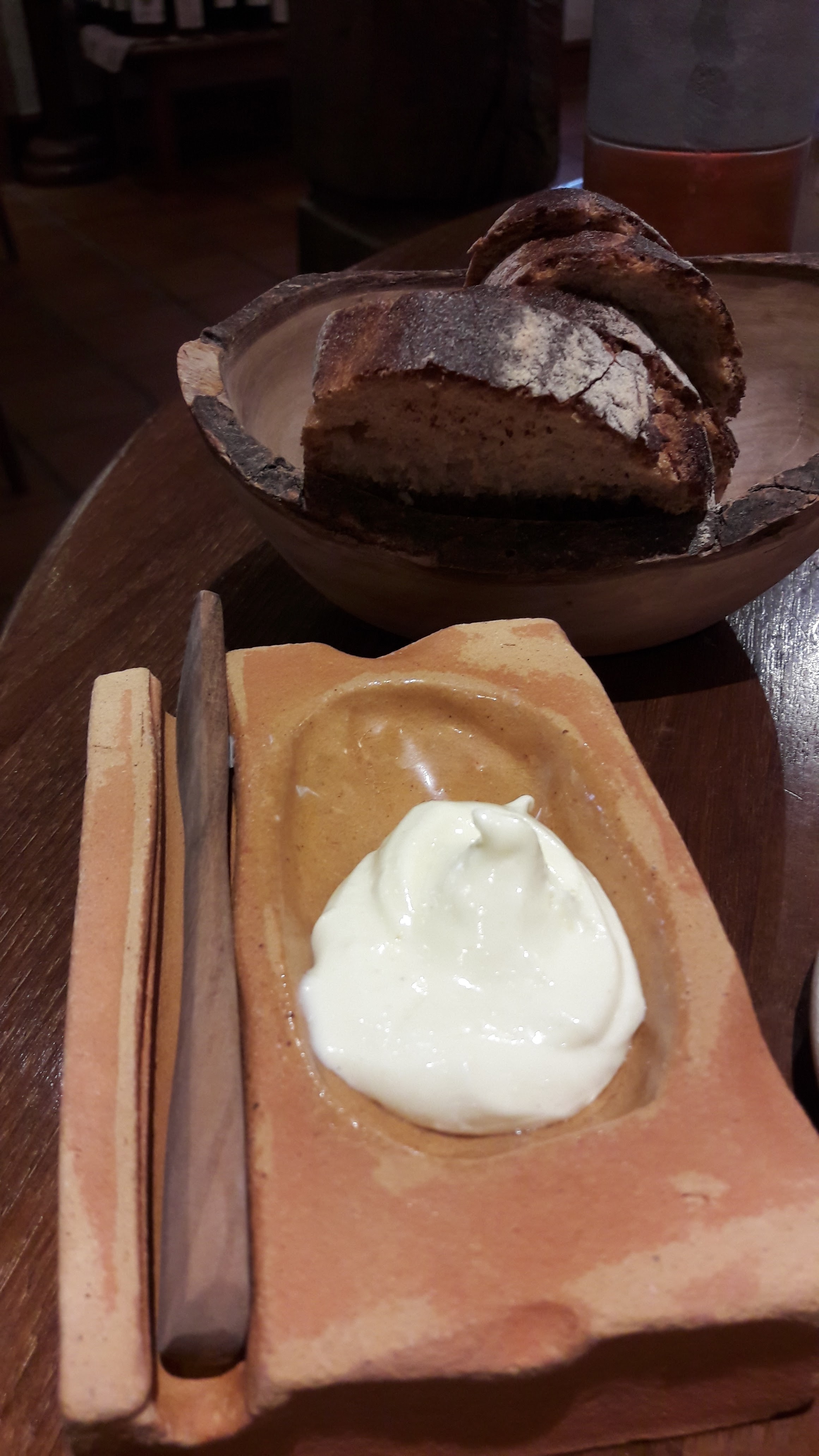 Nous avons eu un repas fantastique ici. Le service était impeccable et on pouvait vraiment dire combien d'efforts ils ont déployé pour créer une expérience merveilleuse. Lorsque nous sommes arrivés, il y avait un panier de pain au levain cru sur notre table, celui-ci nous a ensuite été servi fraîchement sorti du four plus tard au cours de notre soirée avec du beurre fraîchement baratté sous nos propres yeux. Génie!!! Cependant, une partie de notre soirée m’a complètement brisé le cœur. Alors que nous parlions au sommelier de nos boissons à combiner avec notre repas, nous nous sommes sentis poussés à prendre l'accord mets et vins complet de 9 plats. Elle a ajouté que les gens pouvaient généralement conduire ensuite, car le montant était très faible.