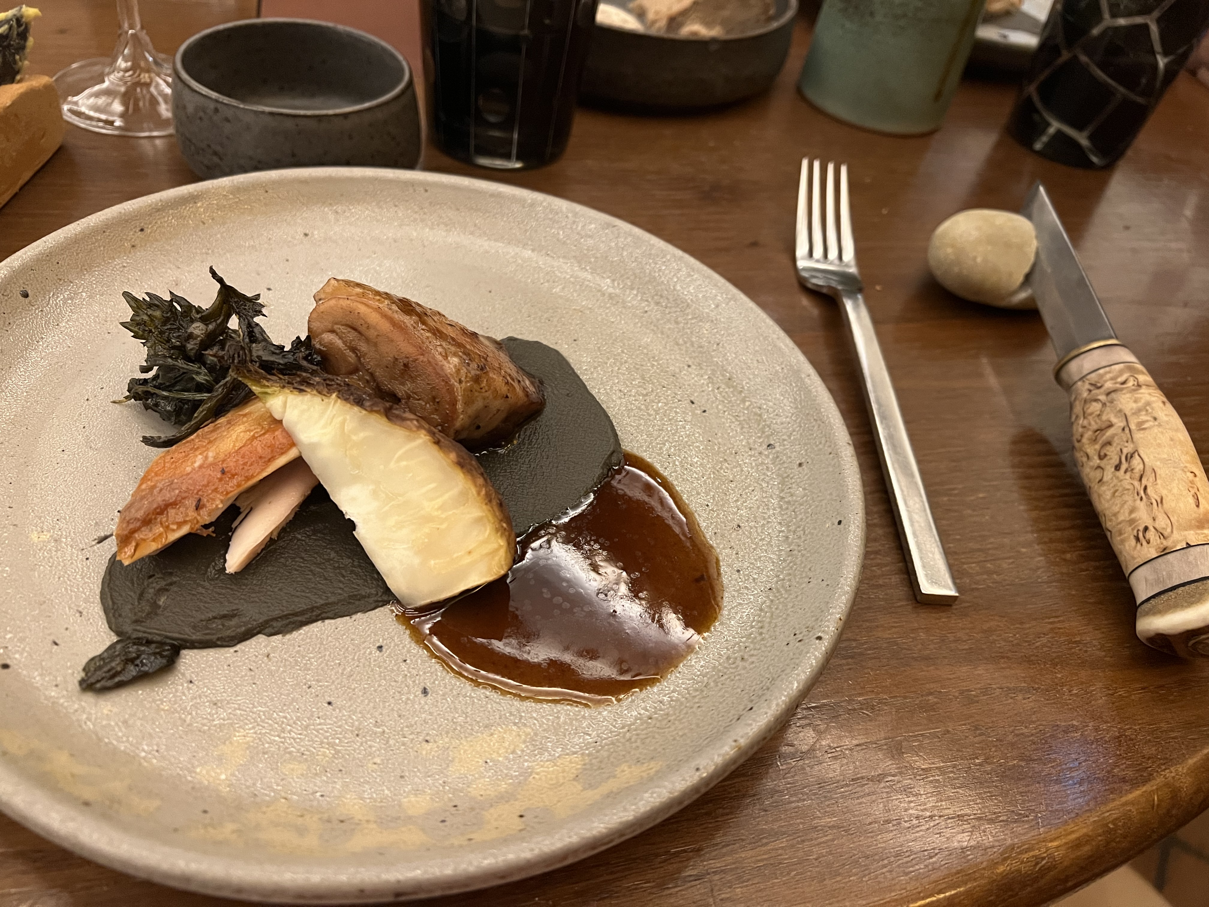 Très bon resto étoilé la cuisson des viandes excellentes juste un peu trop peu dans l assiette pour le prix