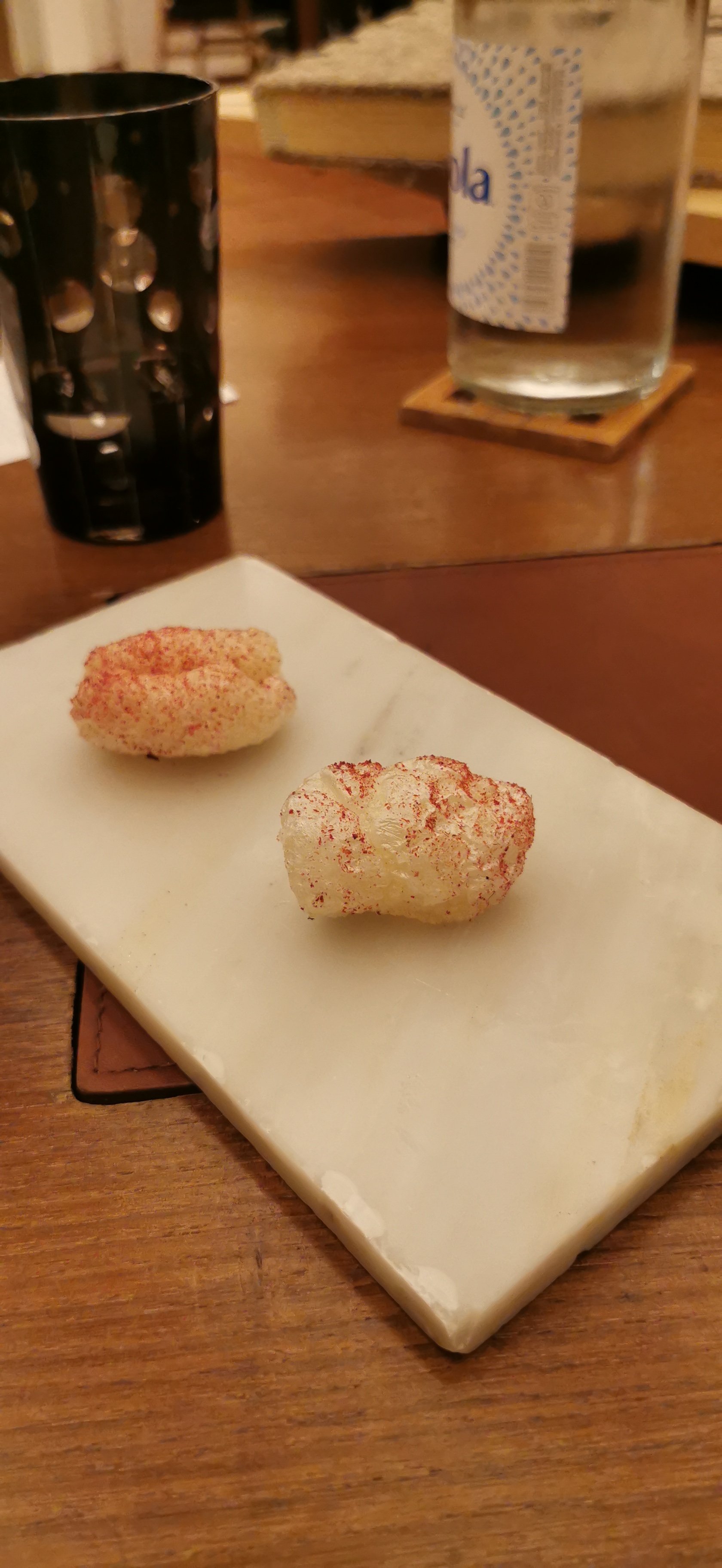A par le pain et le beurre je m'attendais à plus de découvertes et à sentir le personnalité du chef de ses plats. Mais très déçue. Une huître avec de l'eau de concombre et a la place quelques feuilles d'endives vapeur avec des pointes d'ail noir. Des portions minuscules. Un vin servi dans une bouteille qui a soit disant perdu sont étiquete... et pour finir le repas une glace de lait de chèvre avec des cendres et des morceaux de charbon. Pas compris ceci. Suis souvent allée dans des étoilés et même si parfois les portions sont petites il y a tjs une découverte. Désolée vraiment chef mais là c'est exagéré aucune émotion et un prix exorbitant pour ce que nous avons mangé