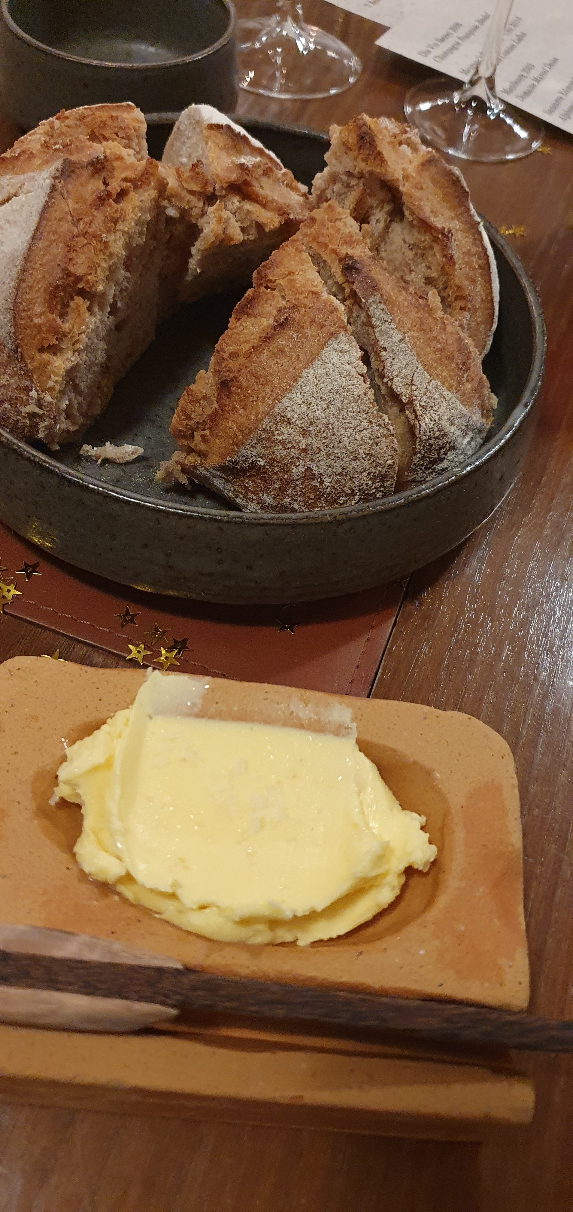 Je donne un avis 4 étoiles sur 5 Peut-être nous attendions-nous à une expérience époustouflante et avions des attentes plus élevées pour un restaurant étoilé Michelin et un restaurant étoilé vert donnant 5/5, mais ce n’était pas le cas pour nous. Nous avons eu le plaisir d'y dîner pour un repas de 7 plats. Certains d'entre nous (3 personnes) étaient végétariens et ils nous ont donc hébergés lors de la réservation en s'assurant que nous tous (7 personnes) recevions de la nourriture végétarienne, ce qui nous convenait bien. L'ambiance est vraiment belle, une vieille maison alsacienne entièrement rénovée. L'accord mets et vins et les accords sans alcool n'étaient pas les meilleurs que nous ayons eu par rapport à ce que nous avions dans d'autres restaurants gastronomiques. Cela ne complétait pas bien les plats. Et les verres à vin vides et les verres vides n'étaient pas retirés rapidement de la table après chaque repas. Il en résulta une table avec plus de 15 verres vides. Les desserts étaient exceptionnels ! Fantastique. Le fromage qu'on nous servait était trop fort et la plupart d'entre nous ne pouvaient malheureusement pas finir de le manger. Nous avons aimé l’expérience unique de baratter du beurre devant nous pour le déguster avec du pain chaud fraîchement sorti du four. Les plats principaux et les entrées étaient corrects. Le personnel était sympathique et poli.