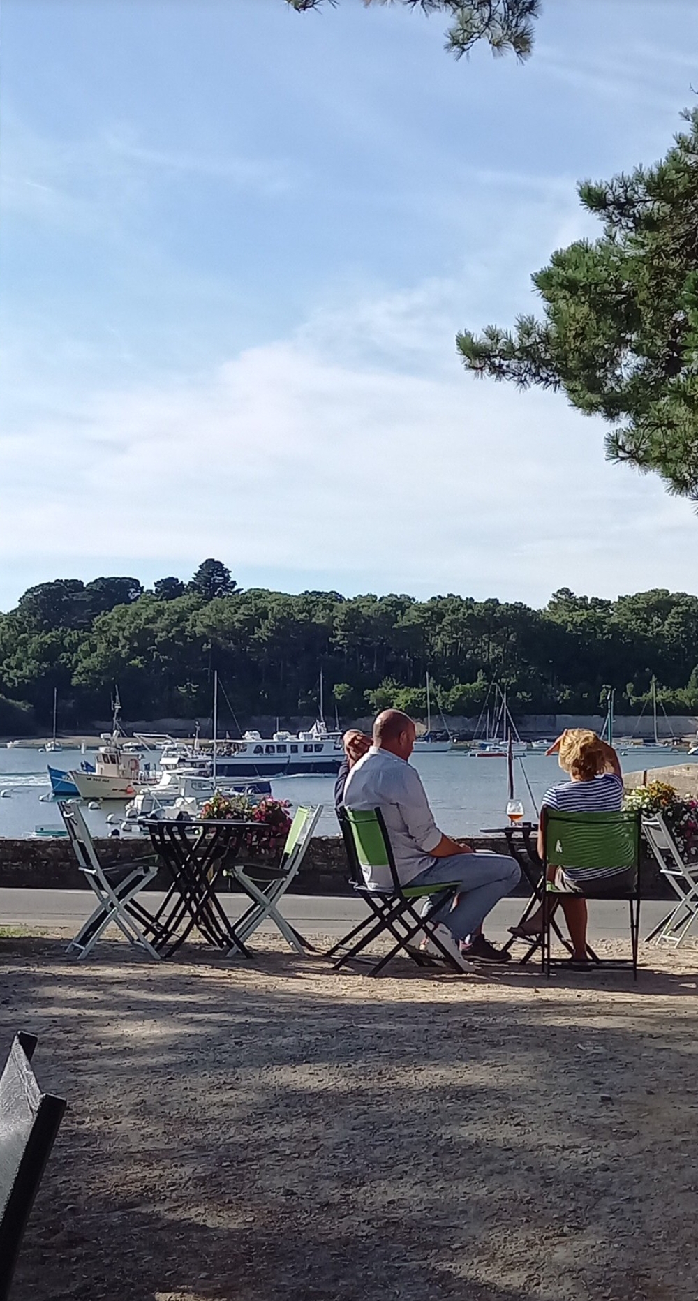 Agréable terrasse sous les pins avec une belle vue sur les sinagots de port anna. Cuisine saine sur la base de produits de la mer.belle réussite pour néo 56 bravo!