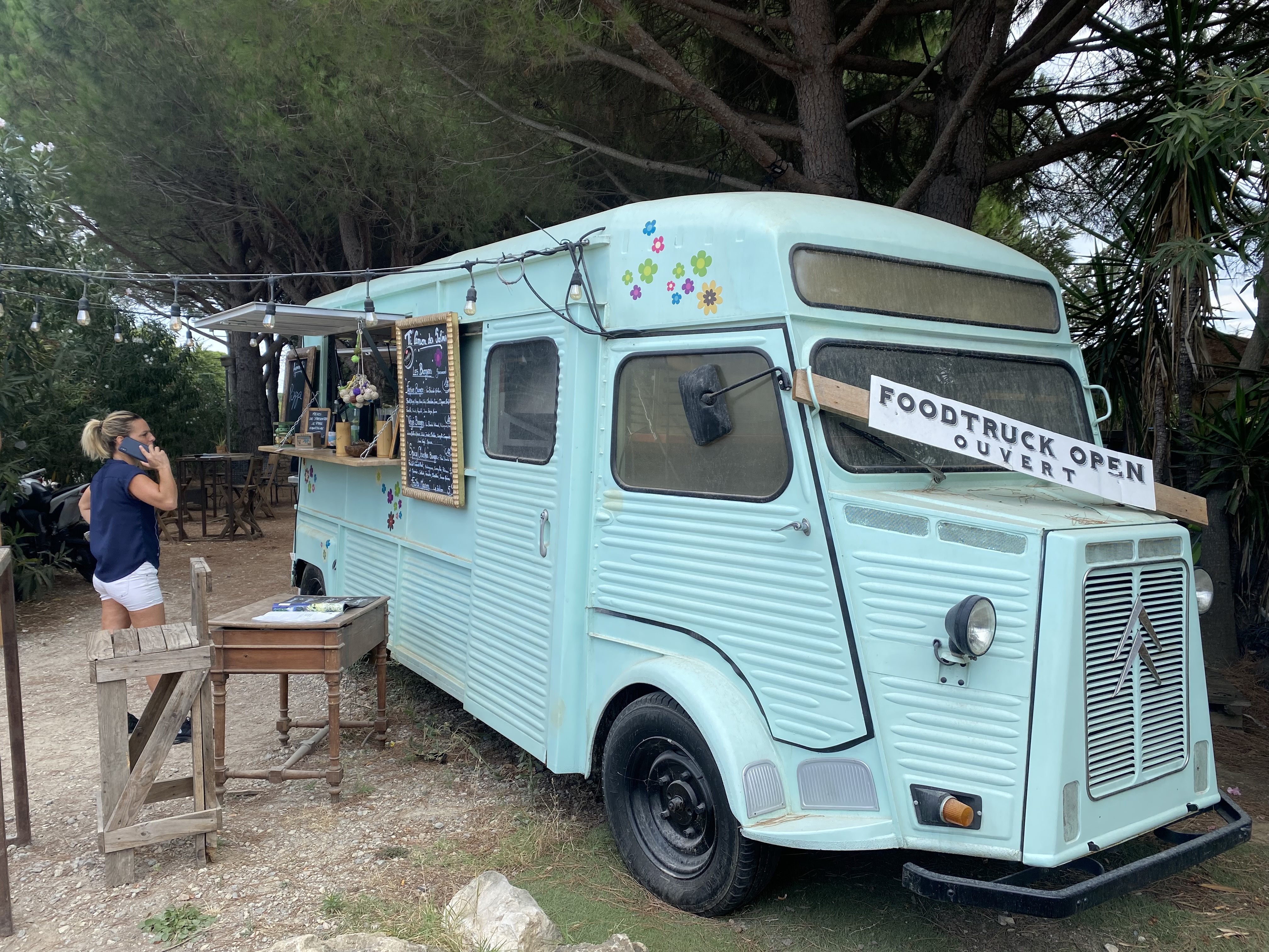 un des petis camions,mais qui s'est sacrément étalé. Pas de la grande gastronomie, mais pour un petit camion, c'est vraiment sympa. La carde sous une pinède.. trop top