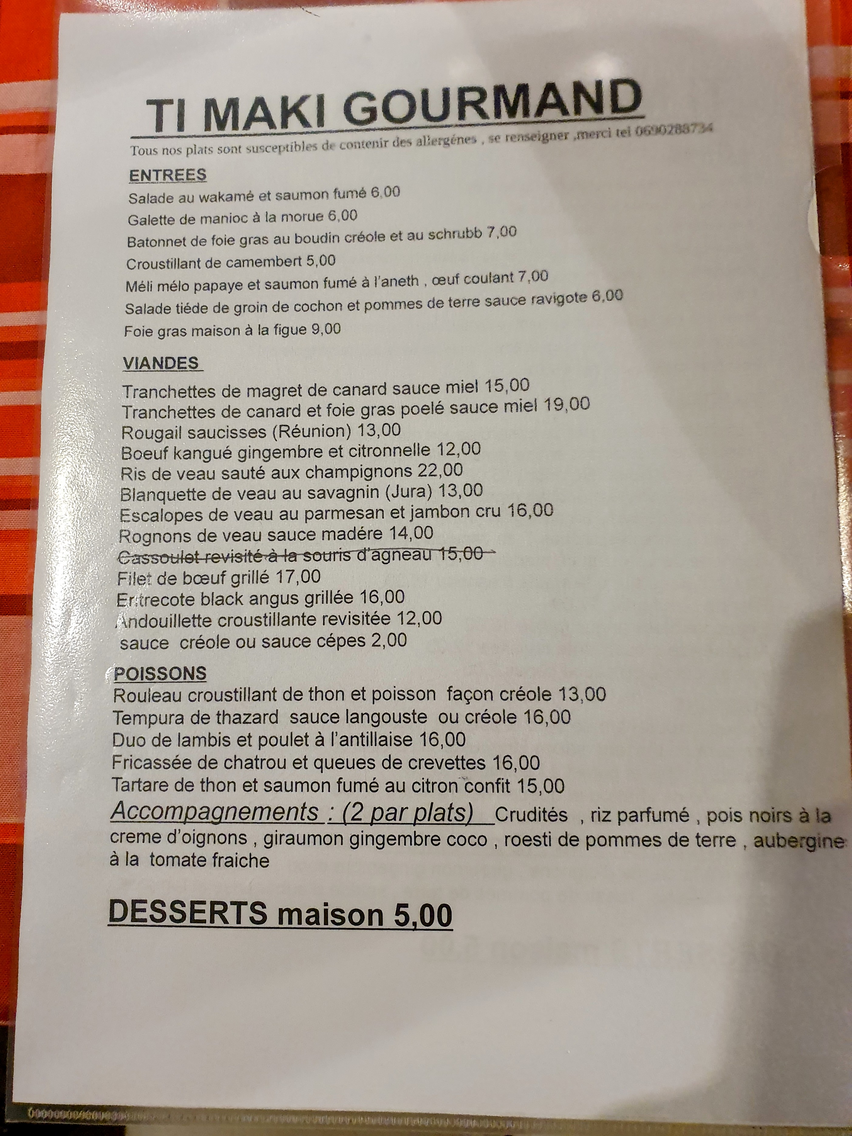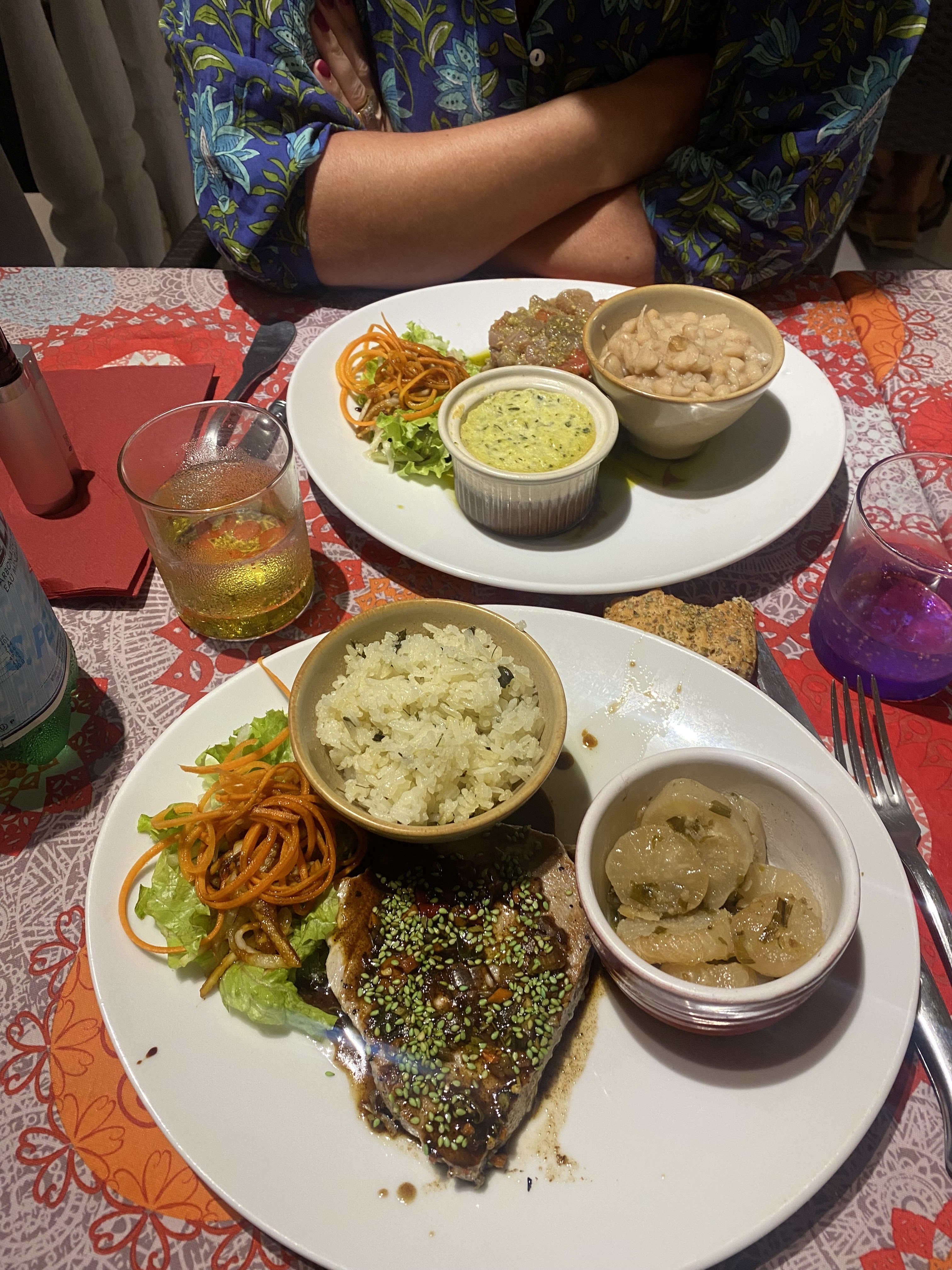 Plats recherchés alliant des produits de métropole et de Guadeloupe. Le résultat est bluffant. Je recommande.