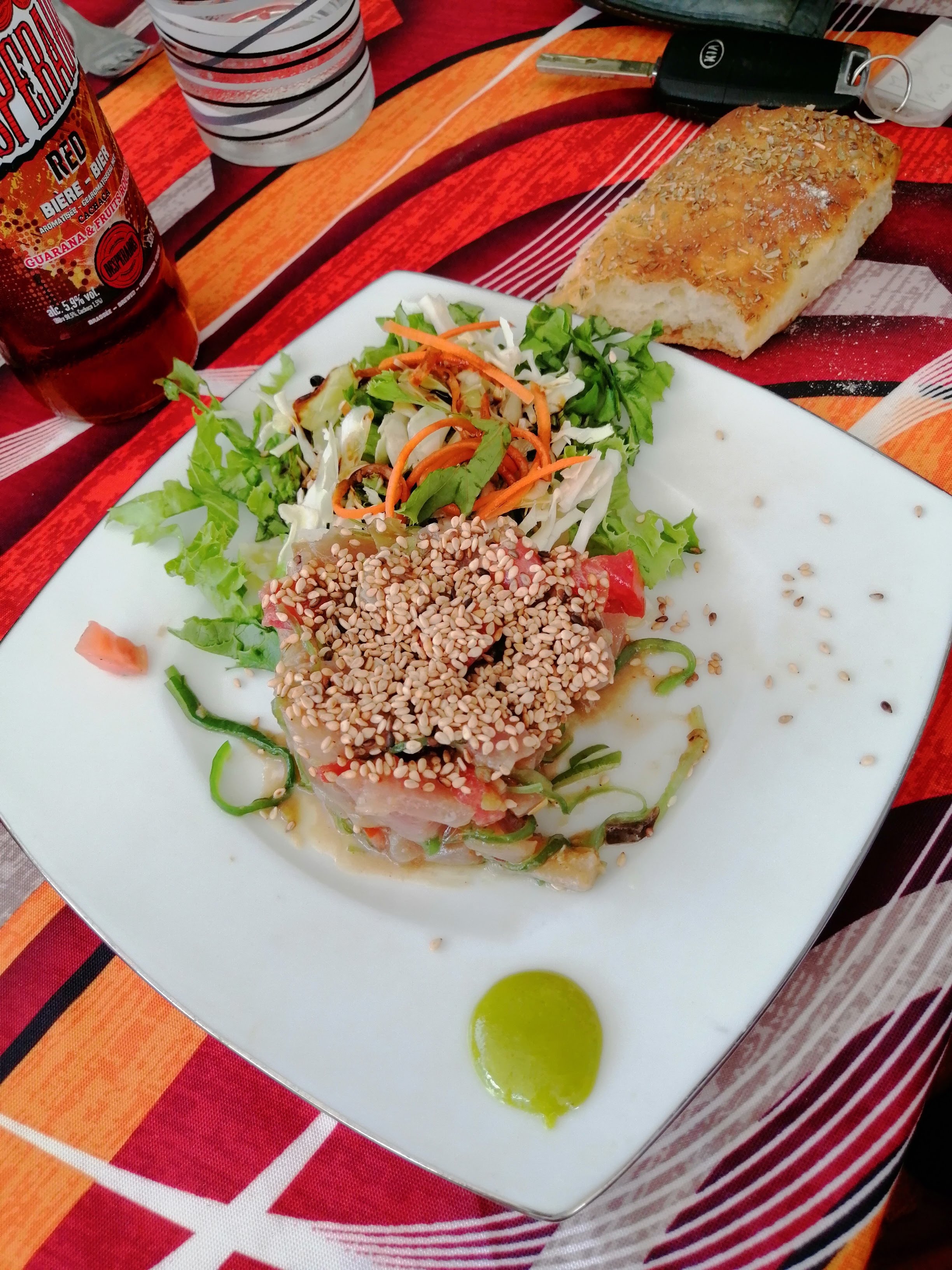 Super accueil et produits excellents. Jus des fruits du jardin, desserts maison, thon pêché la veille.