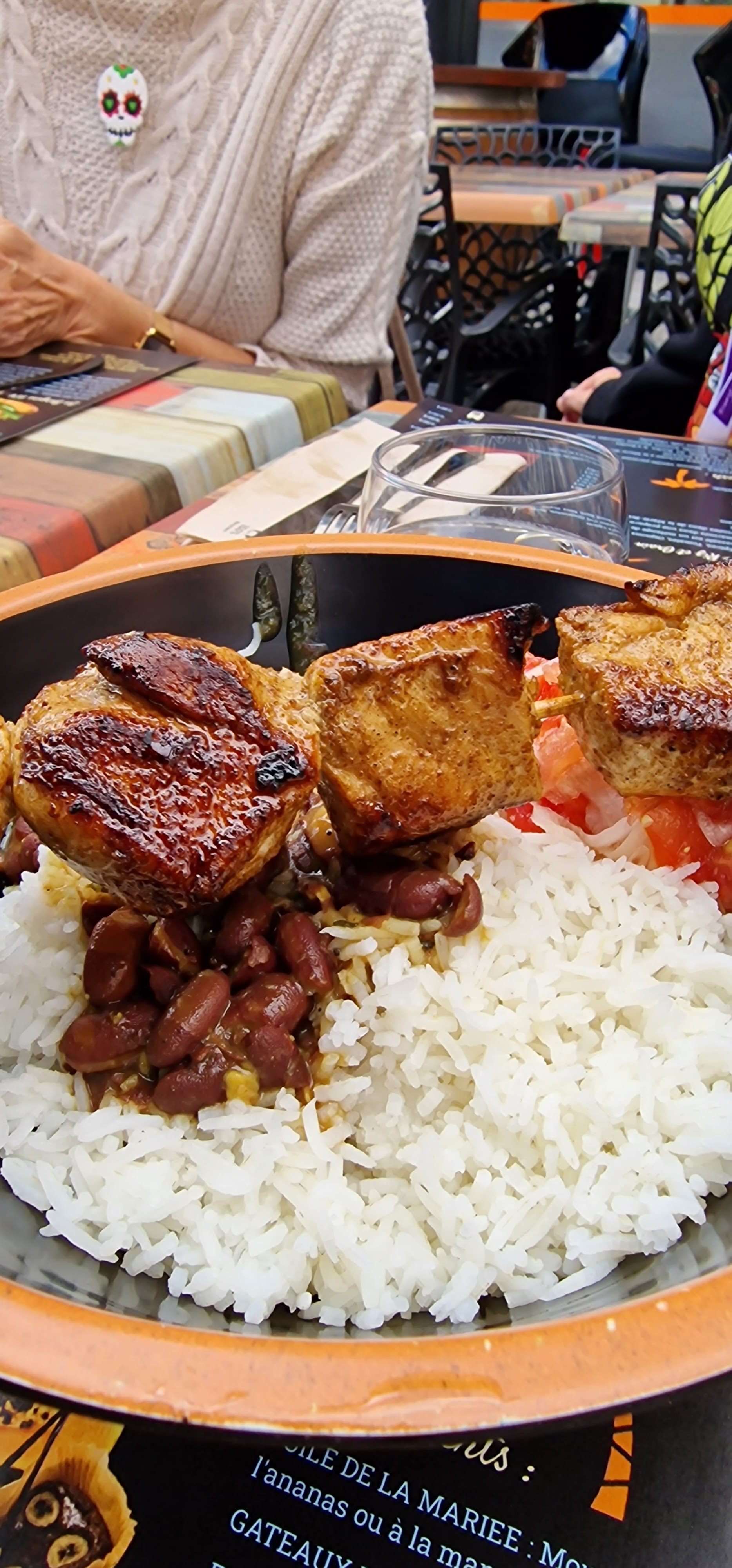 Déjà pour commencer..très accueillant !! La carte très raisonnable, et on ne sait quoi choisir...lol le piment farcis est très bon, ni trop fort ni pas assez..lol du moins à mon goût. La brochette de boeuf...par ou commencer...la viande est tendre et très bien mariné...j'ai pris aussi de l'espadon ! Lol je dirais un mélange de saveurs,l'espadon est excellent. Pour l'accompagnement c'est pareil .. j'ai voyagé à la réunion ce soir merci beaucoup..