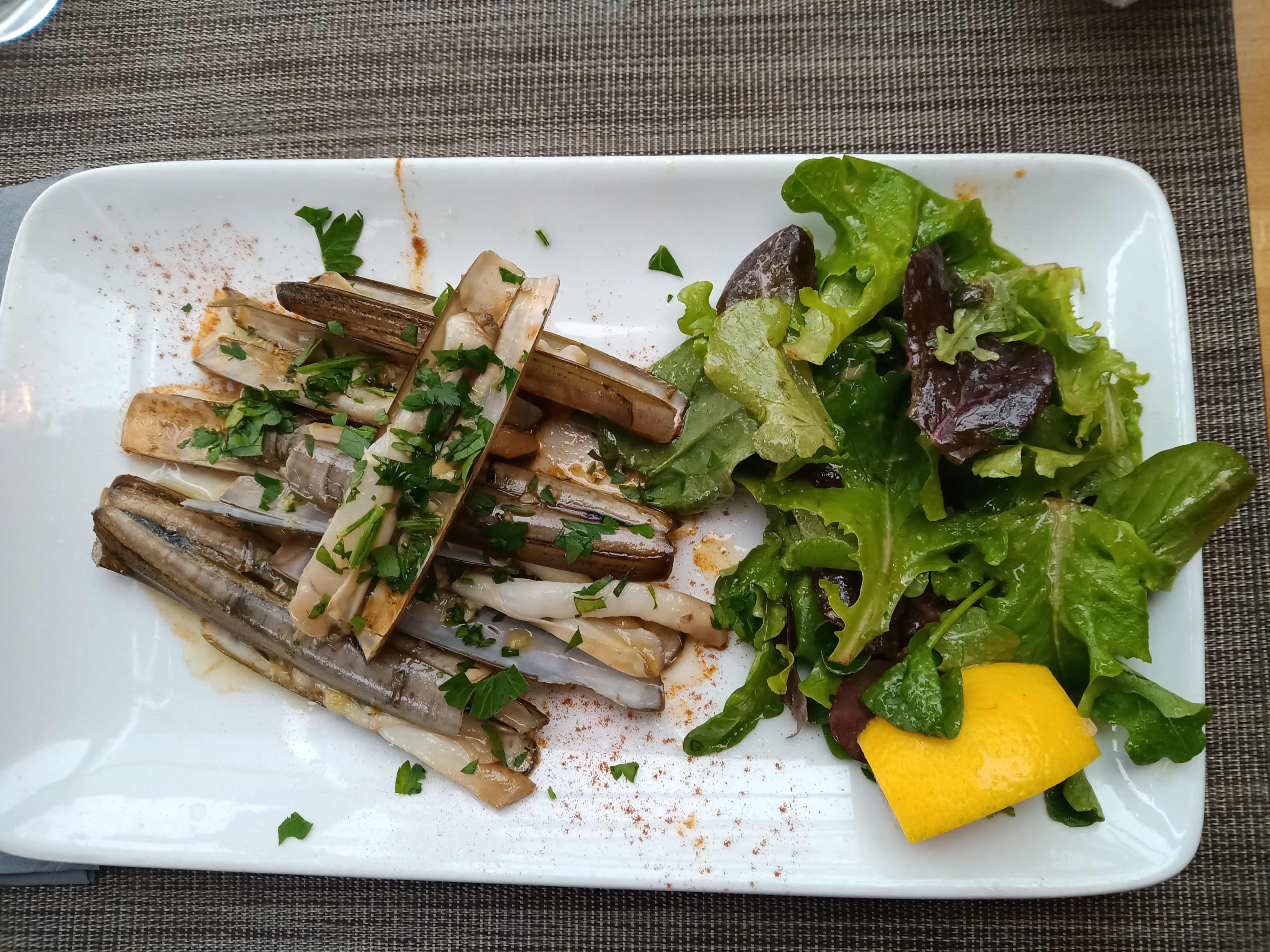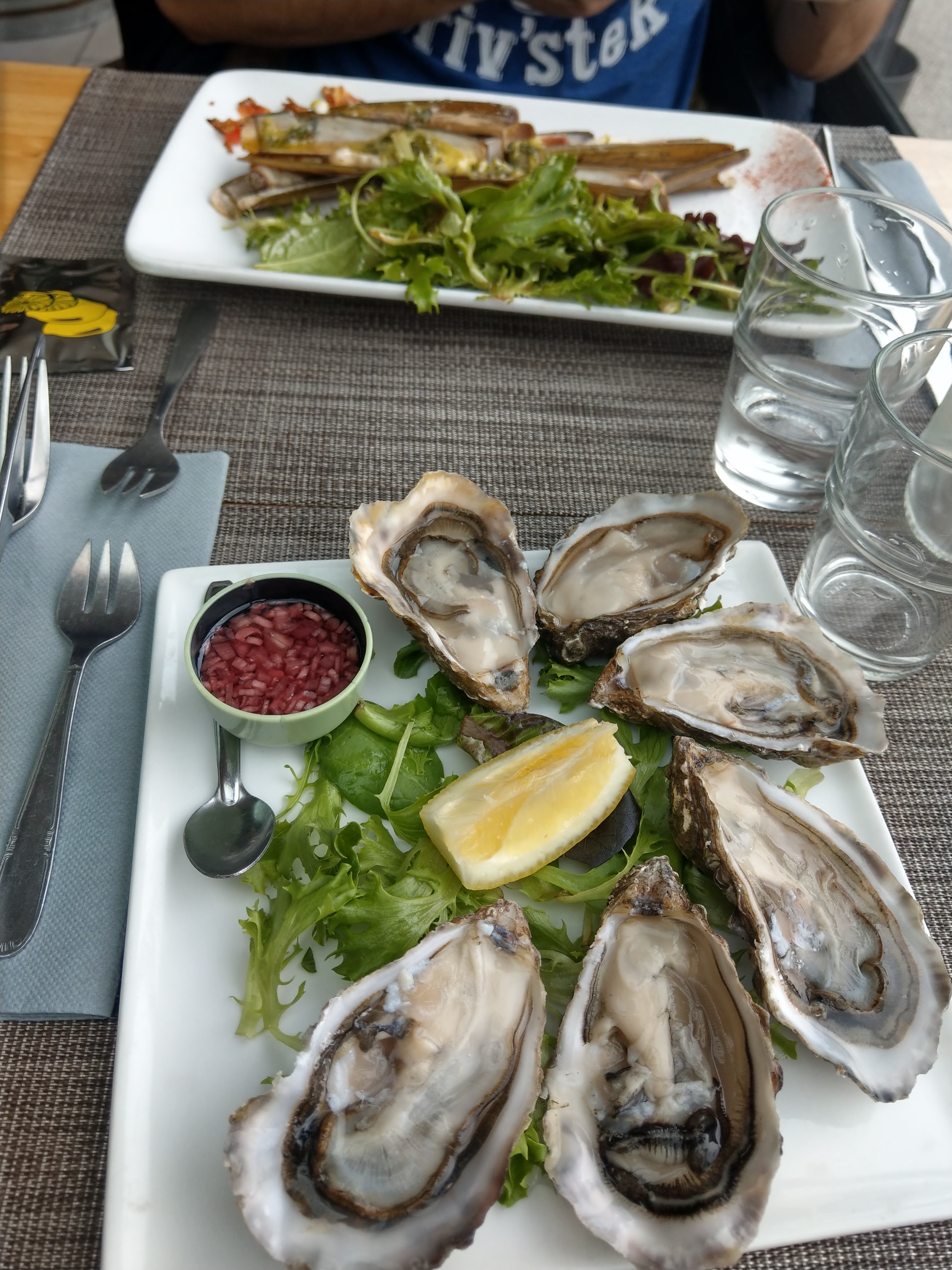 Nous avons pris les plats du jour: couteaux en entrée et palourdes en plat. C'était vraiment bon et rien à redire niveau quantité de fruits de mer. Service agréable. Je n'ai mis que 4 étoiles car c'était un peu gras (beaucoup d'huile). Mais nous reviendrons avec plaisir!