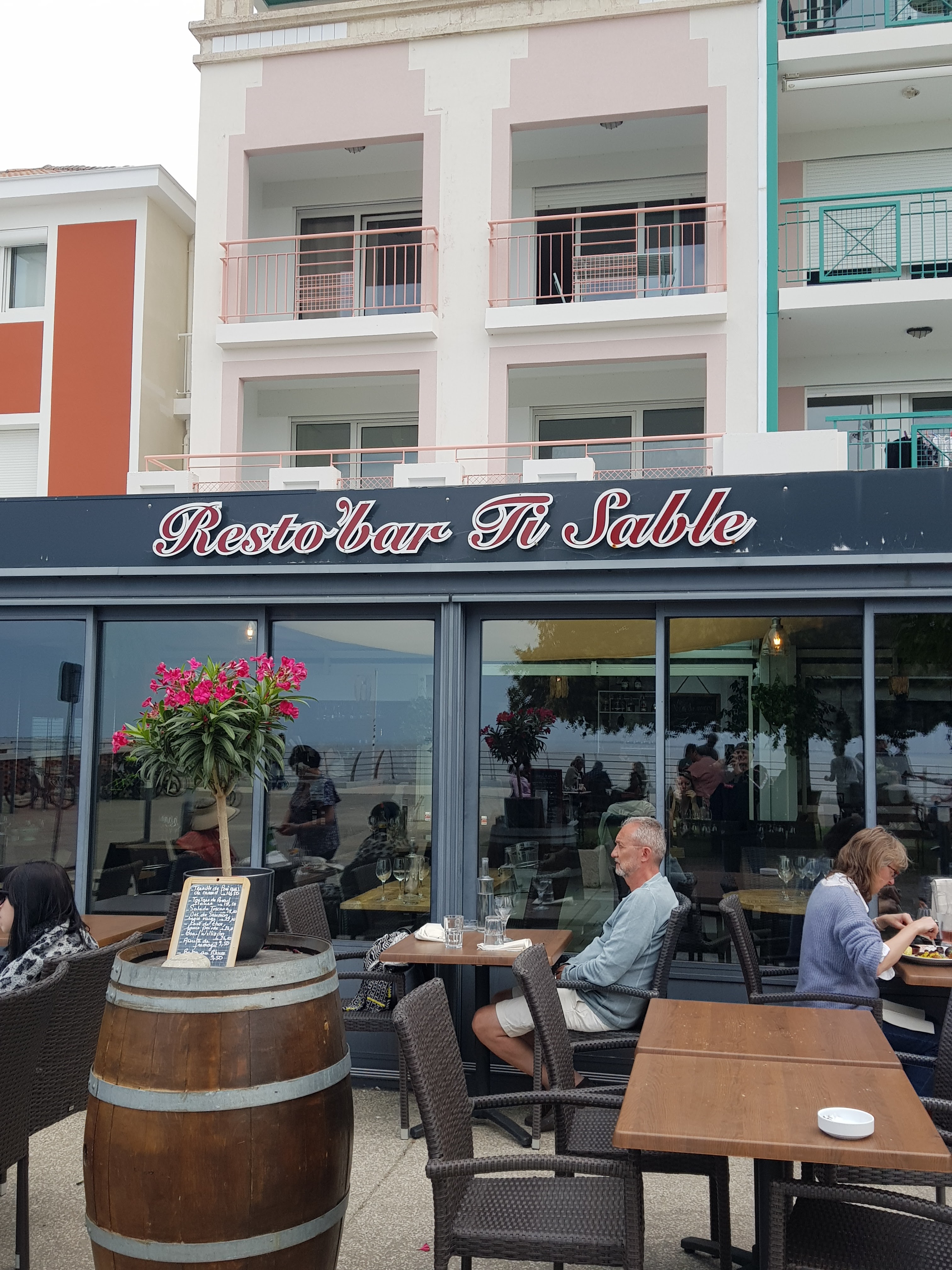 Très joli intérieur, décoré avec goût pour les menus je ne peux pas vous dire, nous avons pris juste un café mais idéalement placé, face à la mer. Une pause ou petite faim alors le Ti Sable est fait pour vous.