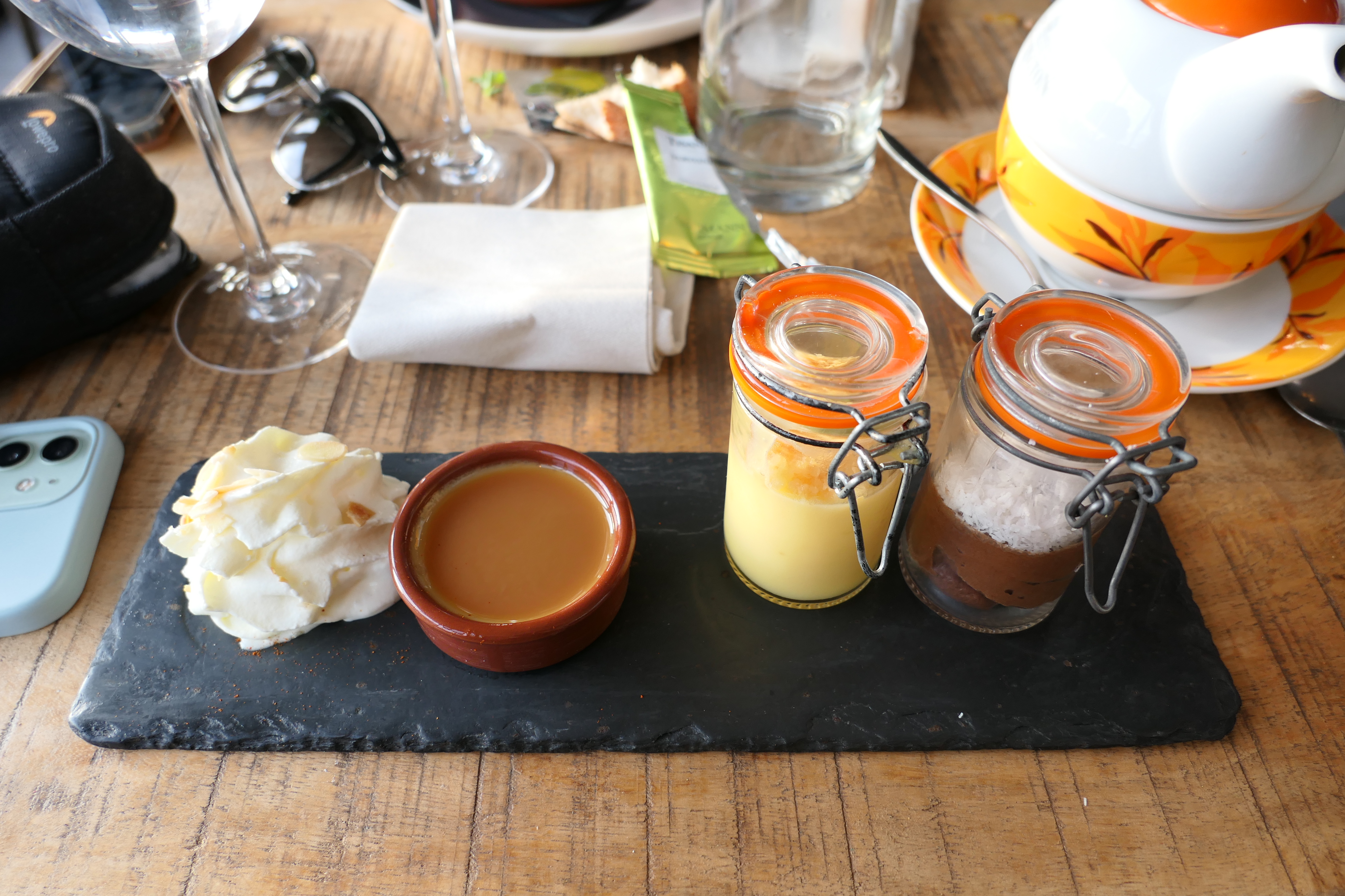 Très agréable malgré le mauvais temps (c'est le jeu). Sur l'ardoise nous avons trouvé tout ce dont nous avions envie pour le déjeuner. Tout le monde est charmant, c'est très bon, en bonne quantité et un service pile poil à la bonne vitesse pour passer un bon moment. Nous reviendrons c'est sûr. 👍👌