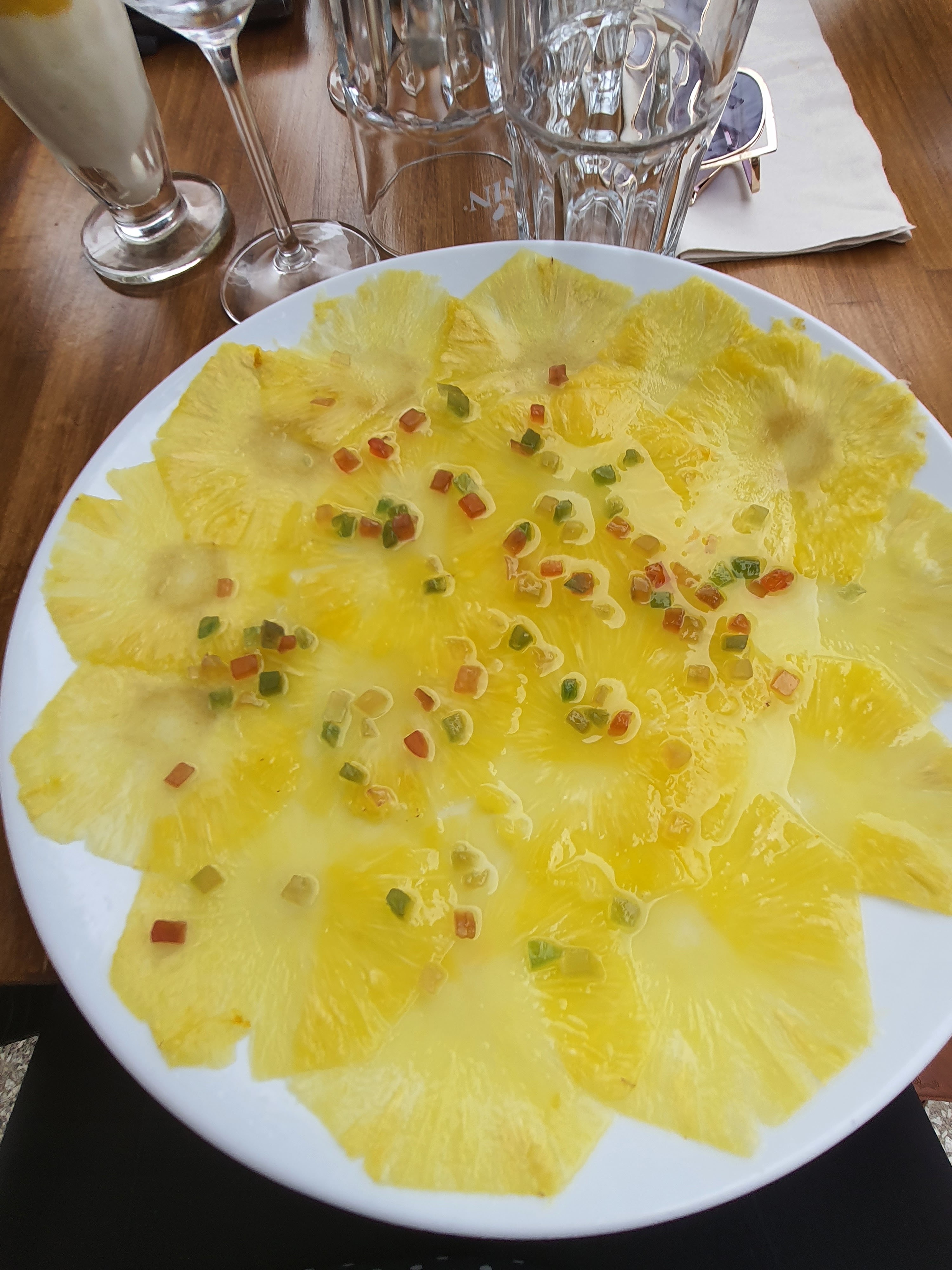 tout y est !! cela commence de l'accueil téléphonique pour la réservation en passant par l'accueil au restaurant par, a la fois le personnel de salle au même titre que la patronne, disponibles , souriants et attentionnés pour l'ensemble des clients. C'est aussi cela la restauration !! Bien évidement cela ne fait pas tout. Parlons donc du menu : Un régal , des produits frais (pour nous c'était Gambas) et extrêmement bien cuisiné, carpaccio d'ananas aRHUMatisé :-) , bref en résumé un rapport qualité / Prix juste top . Si vous passez un seul soir ou midi a Fouras c'est la qu'il faut vous arrêter. Nous y sommes donc retournés et avons pris acras , œuf lentilles, rougaille saucisse …. Juste somptueux. Que dire si ce n’est bravo au chef et son équipe et vivement la suite de la carte . 🙏