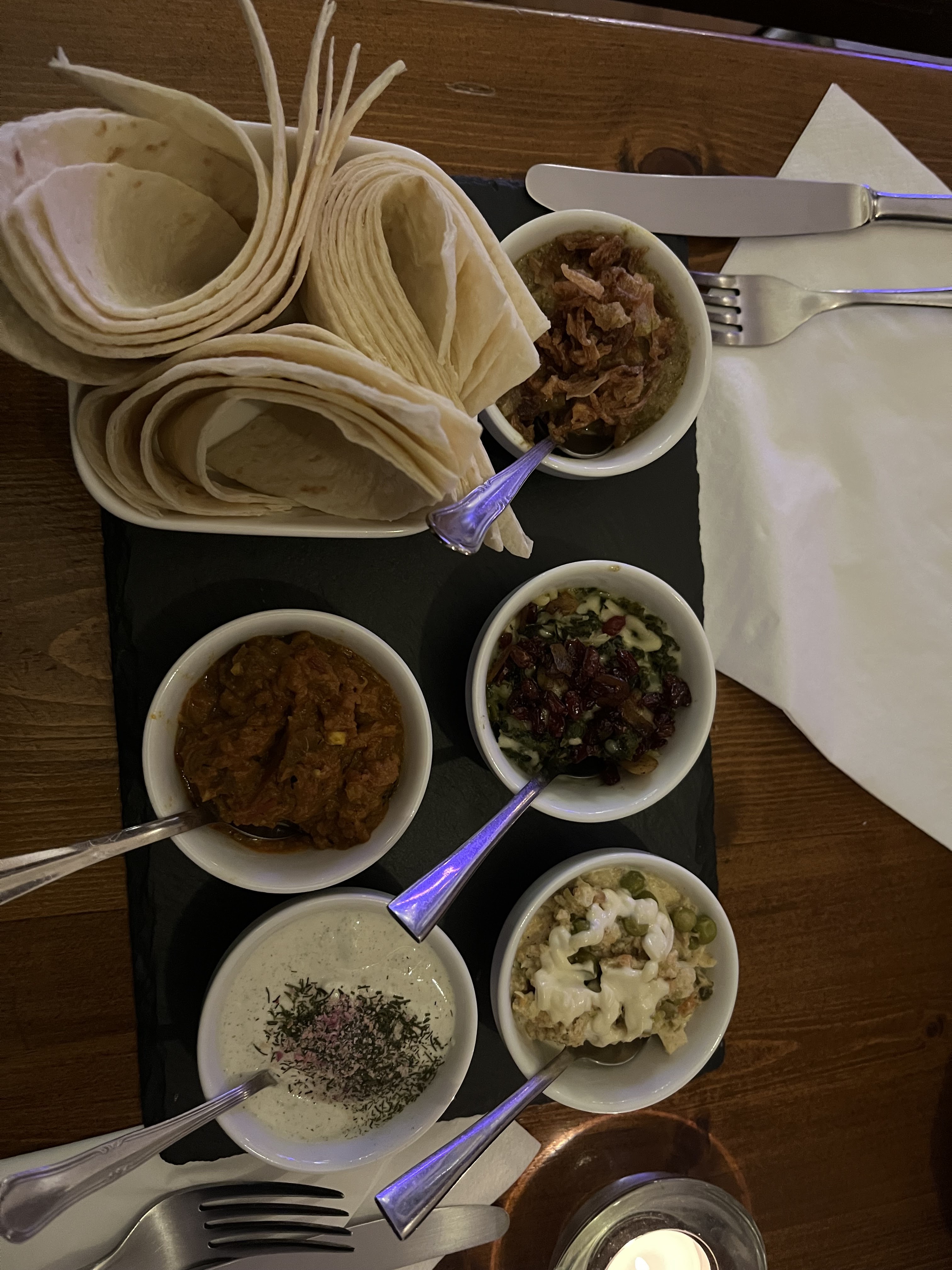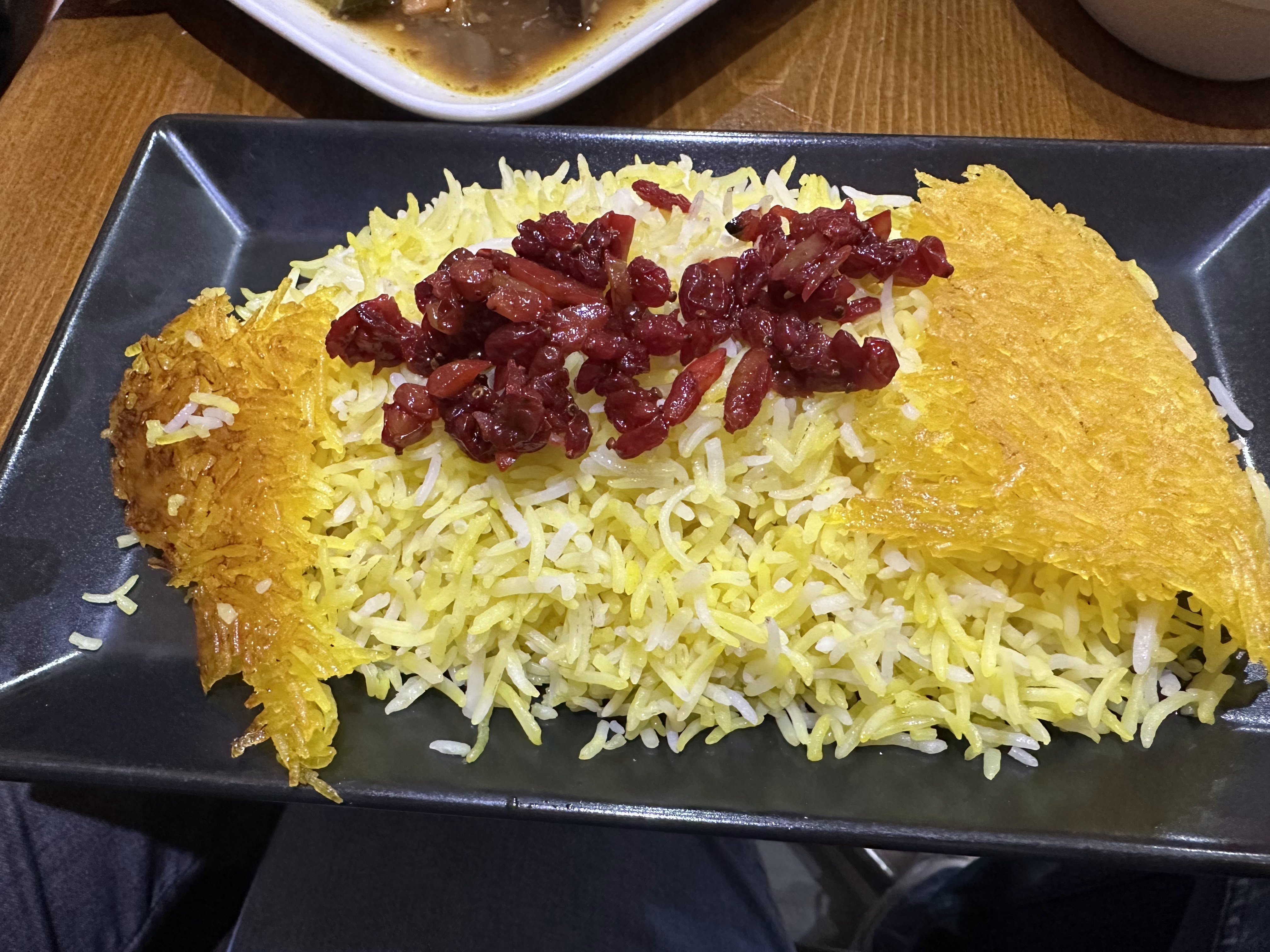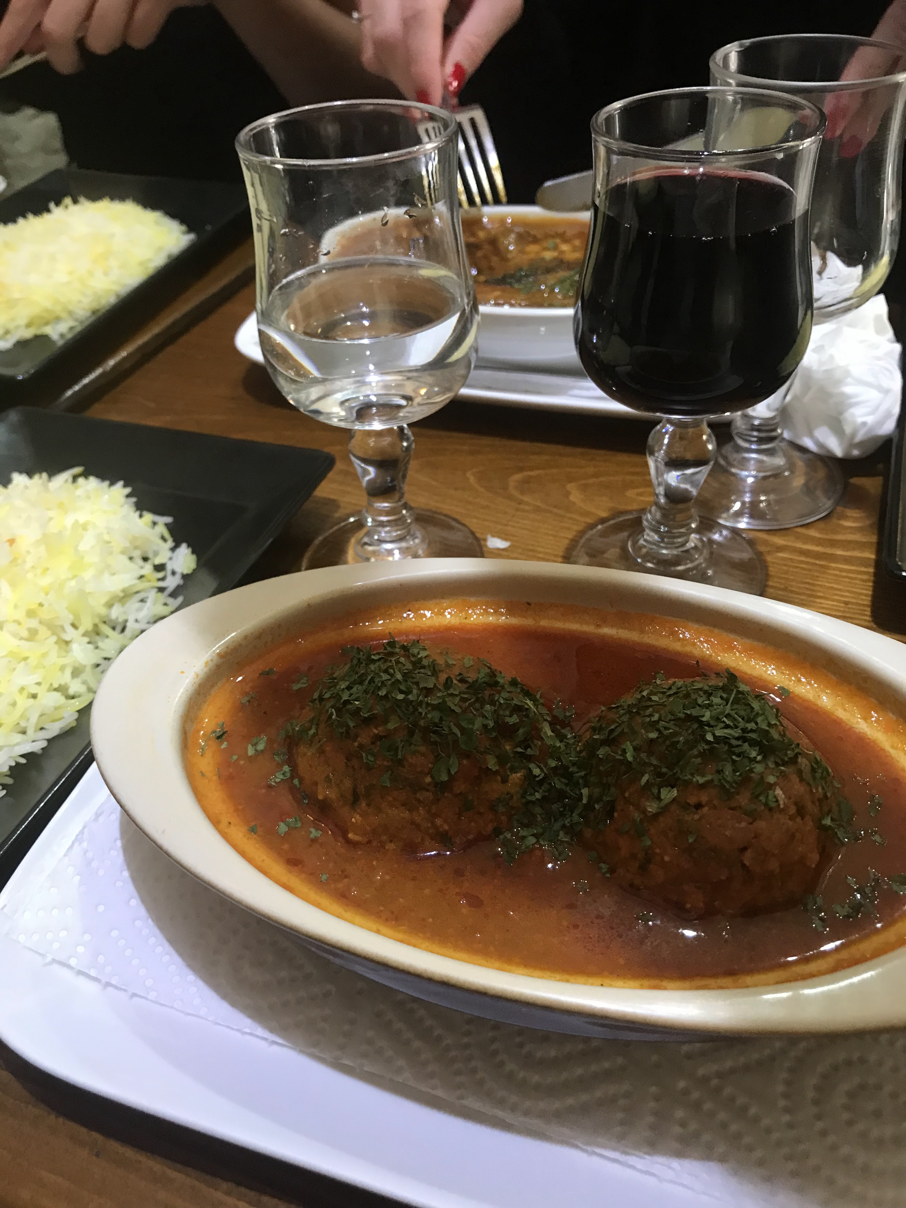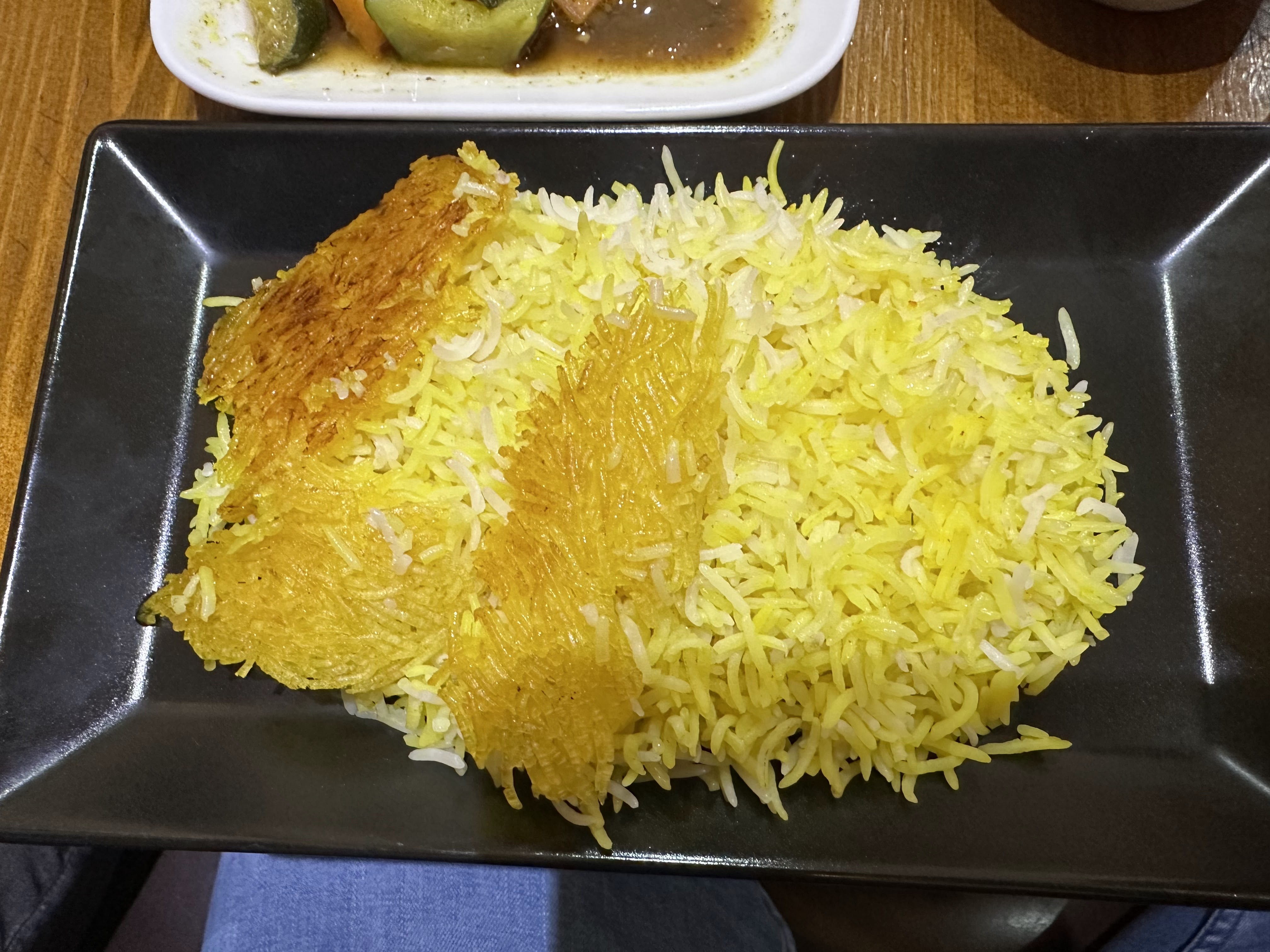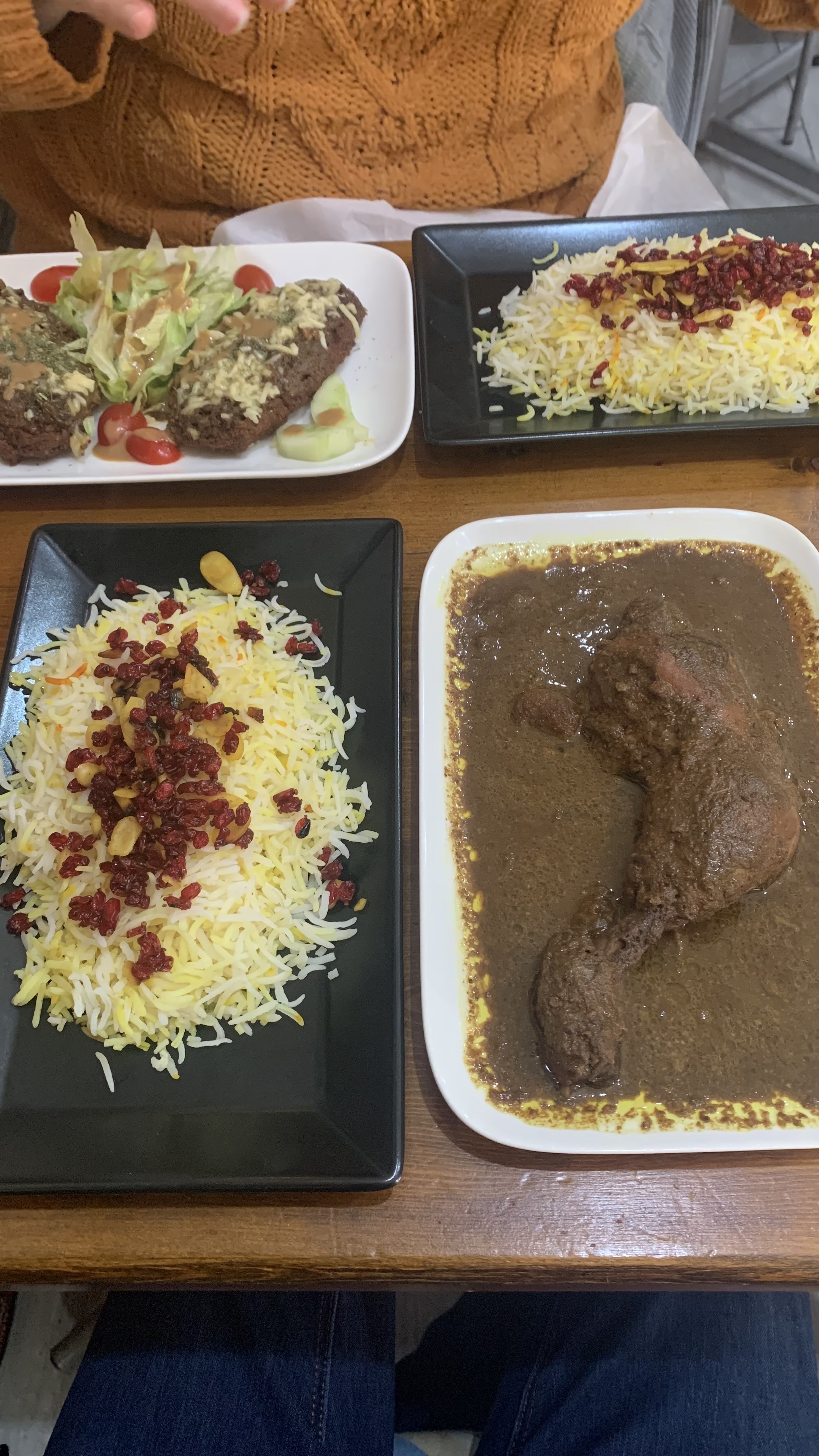 De très bons aliments , à la hauteur de mes attentes (plat principal plateau des apéros). Deux petites fautes : on ne te donne pas de menu (ça n’existe pas j’imagine et ça peut être gênant pour une personne qui veut tenter le plat iranien pour la première fois) et qu’il y a très peu de ris avec les plats en sauce.