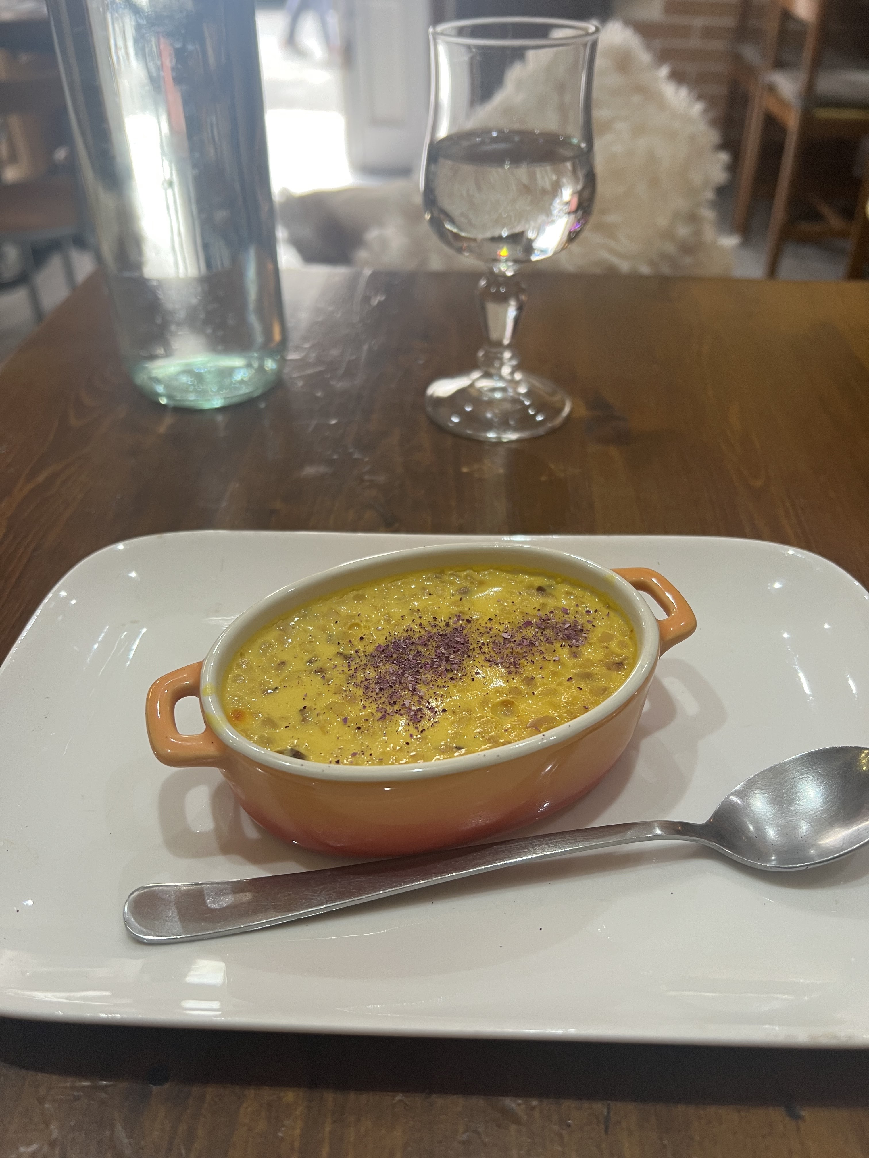 Cet endroit était tout autour fabuleux. Une petite atmosphère chaleureuse avec 4 à 5 petites tables signifie que vous aurez beaucoup d'interactions avec le propriétaire et le chef. Nous n'avons jamais regardé un menu, il s'est assis à la table à côté de nous pour discuter un moment puis a parcouru tout ce qu'il avait à proposer. Je recommande à 100% d'essayer les entrées, elles étaient incroyables ! 7 petits plats à déguster avec du pain, chacun une association de saveurs unique. Les plats principaux étaient tout aussi complexes et le dessert était léger et rafraîchissant. Nous avons mangé chaque bouchée et c'était la quantité parfaite de nourriture. Prenez vraiment le temps de venir par ici !