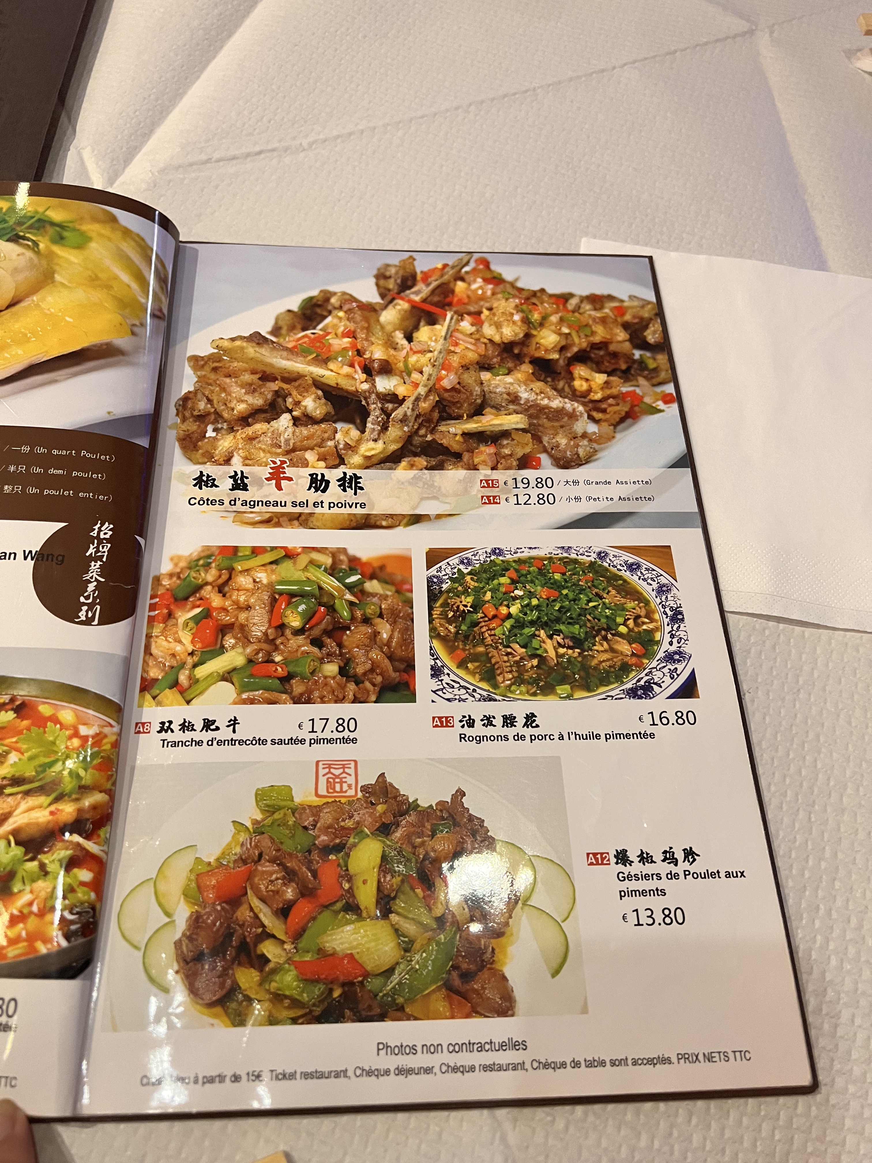 Très bon restaurant avec des plats typiques chinois, pas mal de plats très épicés il faut prendre garde mais les brochettes d'agneau sont top, la julienne de porc et le porc sauté pimenté je recommande. Le porc au caramel est fait assez différemment des autres restaurants du quartier, moins caramélisé mais justement c'est moins écoeurant. Pour l'ambiance il faut aimer un environnement assez bruyant, le service est plutôt rapide.
