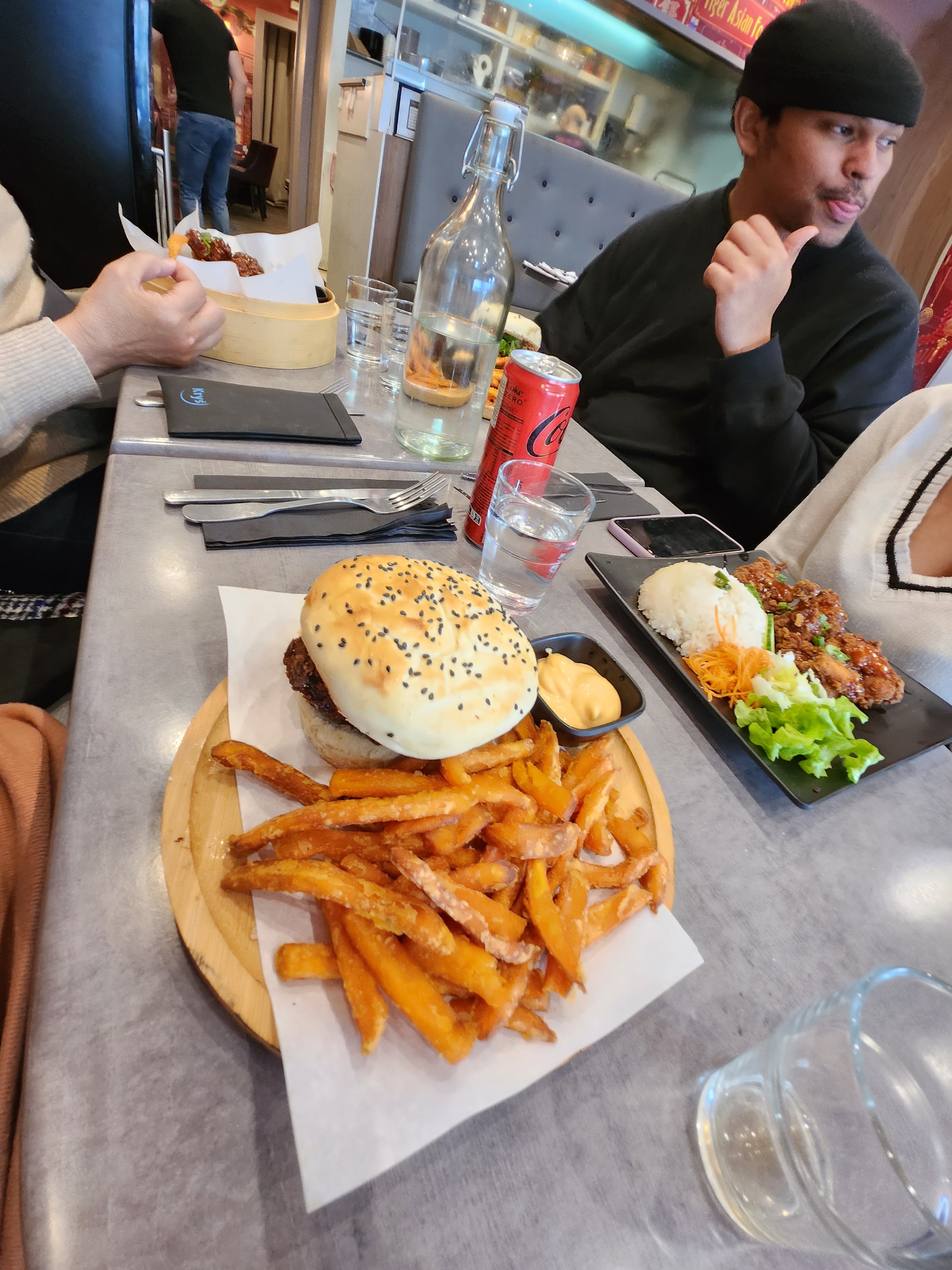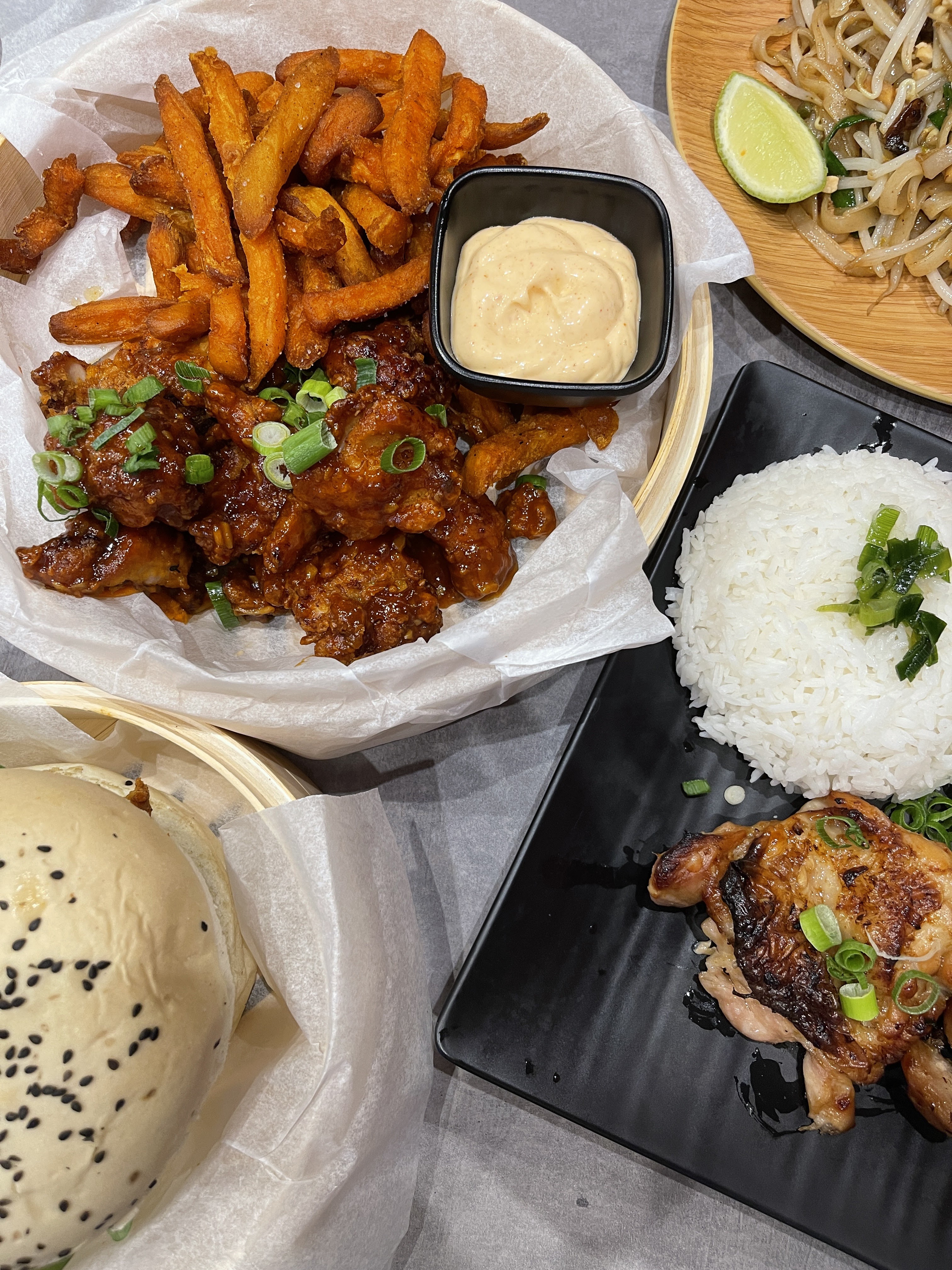 Nous avons commandé avec ma copine chez tiger asian food, un bao burger au poulet frit et un bœuf loc lac. Tout etait très bon. Vraiment très très très bon le Bao, étonnée, mais de façon positive je recommande totalement. Enfin un bon poulet coréen !!!!