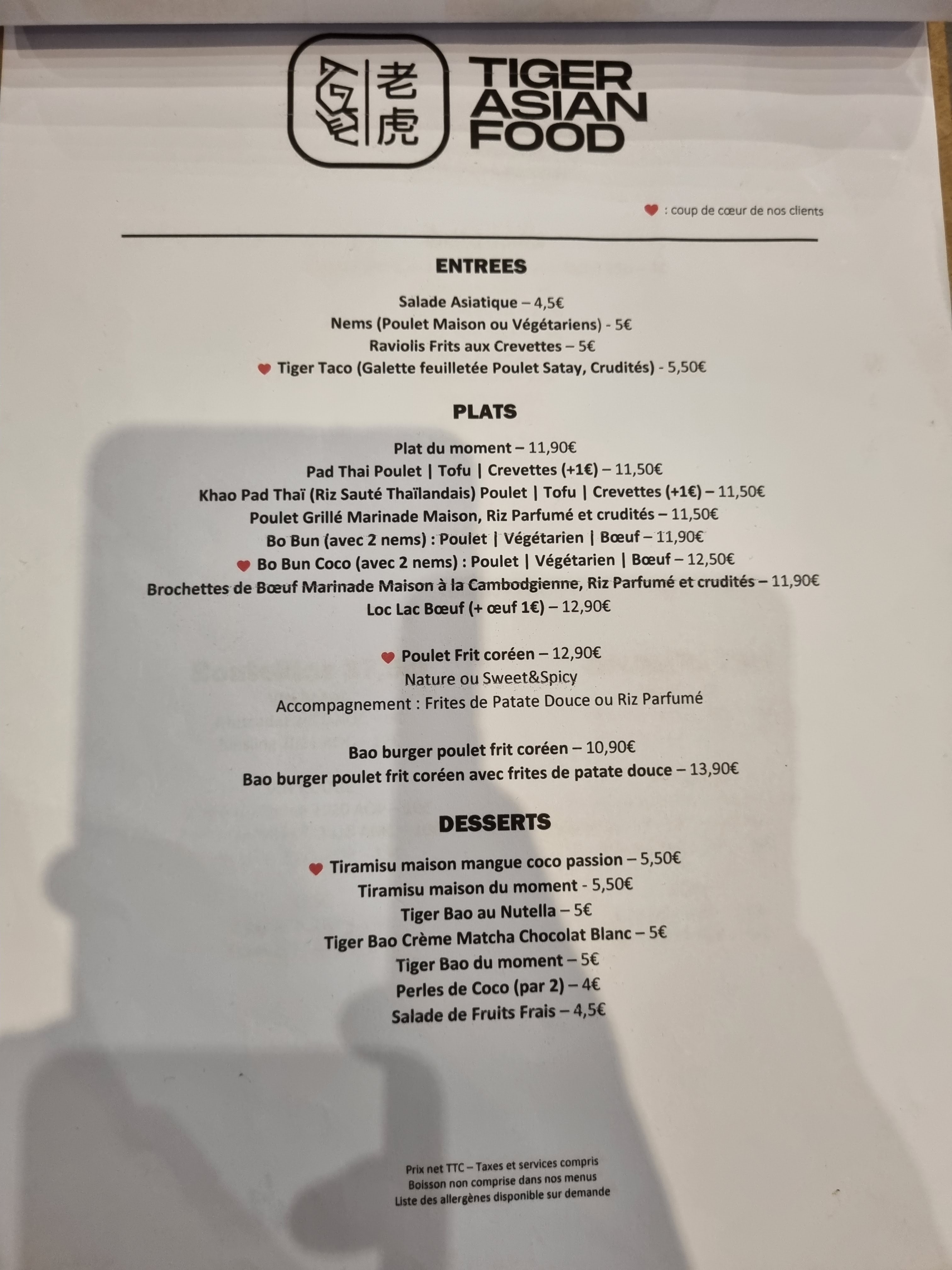 Excellente découverte de Tiger Asian Food ! Ils proposent de très bons plats asiatiques avec des produits de qualités. Le service est rapide et le personnel très chaleureux. Je recommande !