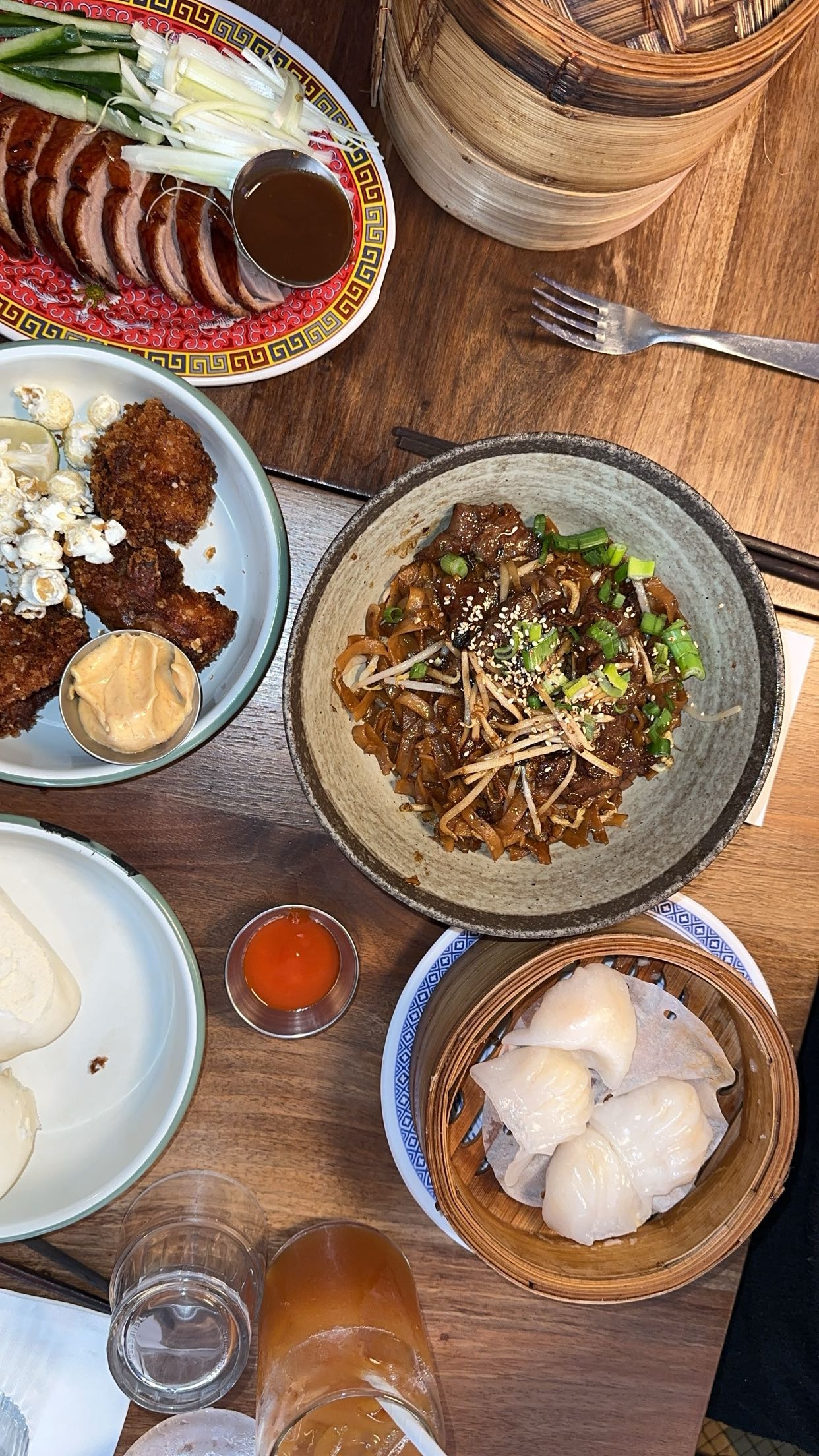 Bon restaurant! - Poulet rôti avec des guabao - Canard laqué et ses crêpes - Hakao (raviolis de crevettes) - Xiaolongbao - Crepes de crevettes