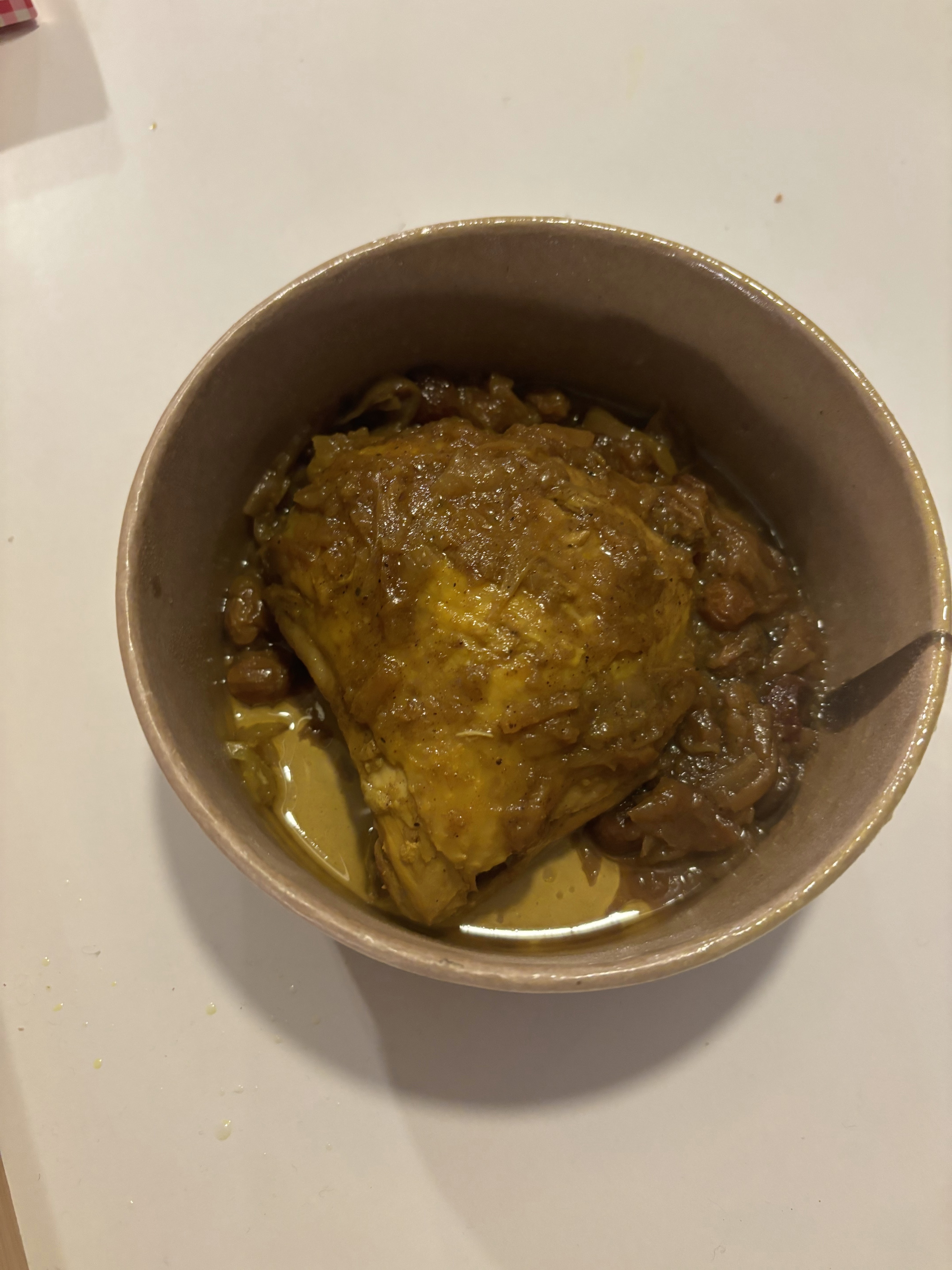 Je viens tout juste de terminer mon tajine aux pruneaux. Très bon tajine, vraiment. J'avais besoin d'un bon repas pour cette heure tardive et je ne suis pas déçu ! La sauce était parfaitement assaisonnée et l'agneau délicieux. Merci pour ce repas, je recommande
