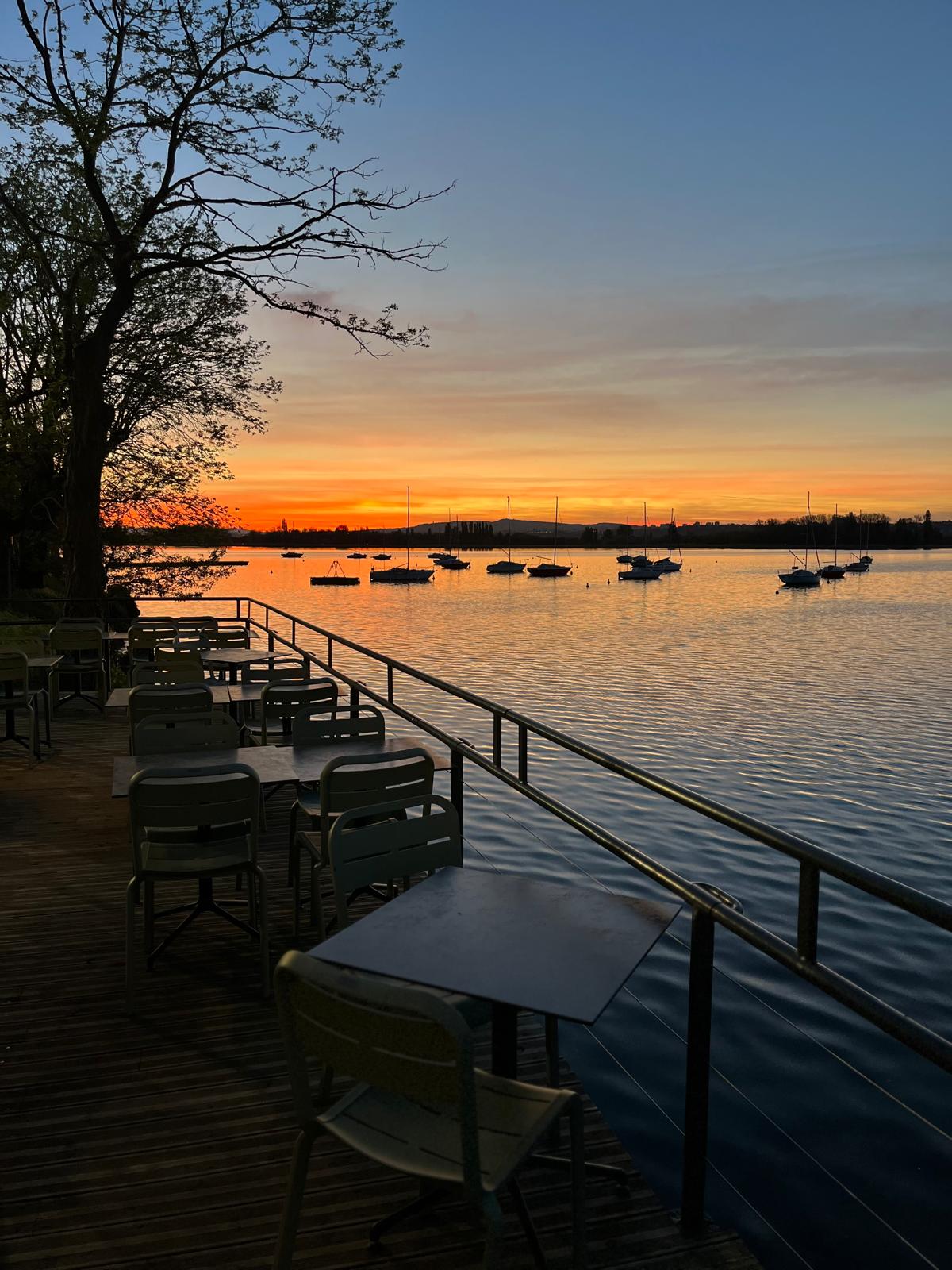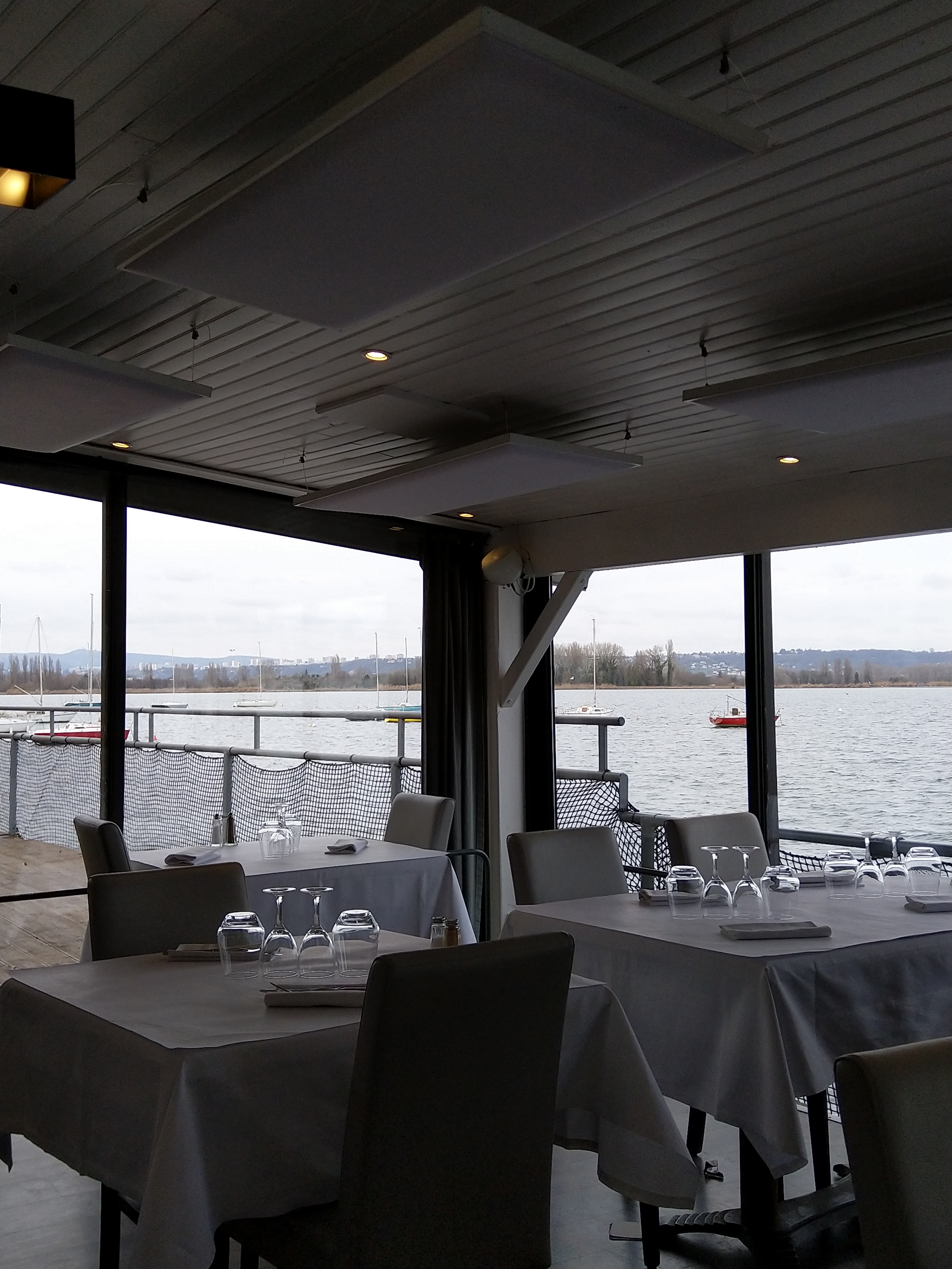 Nous avons très bien mangé : plats généreusement servis, bien présentés. Un cadre magnifique, particulièrement en fin de journée avec le coucher de soleil sur le lac. Le personnel est très agréable : souriant Plusieurs serveurs et serveuses: très peu d'attente malgré une terrasse pleine La carte comporte peu de plats mais les produits semblent frais. Seul bémol, pour les végétariens / végétaliens: la carte ne propose que peu de choses pour eux Les prix pratiqués sont sur la carte en photo