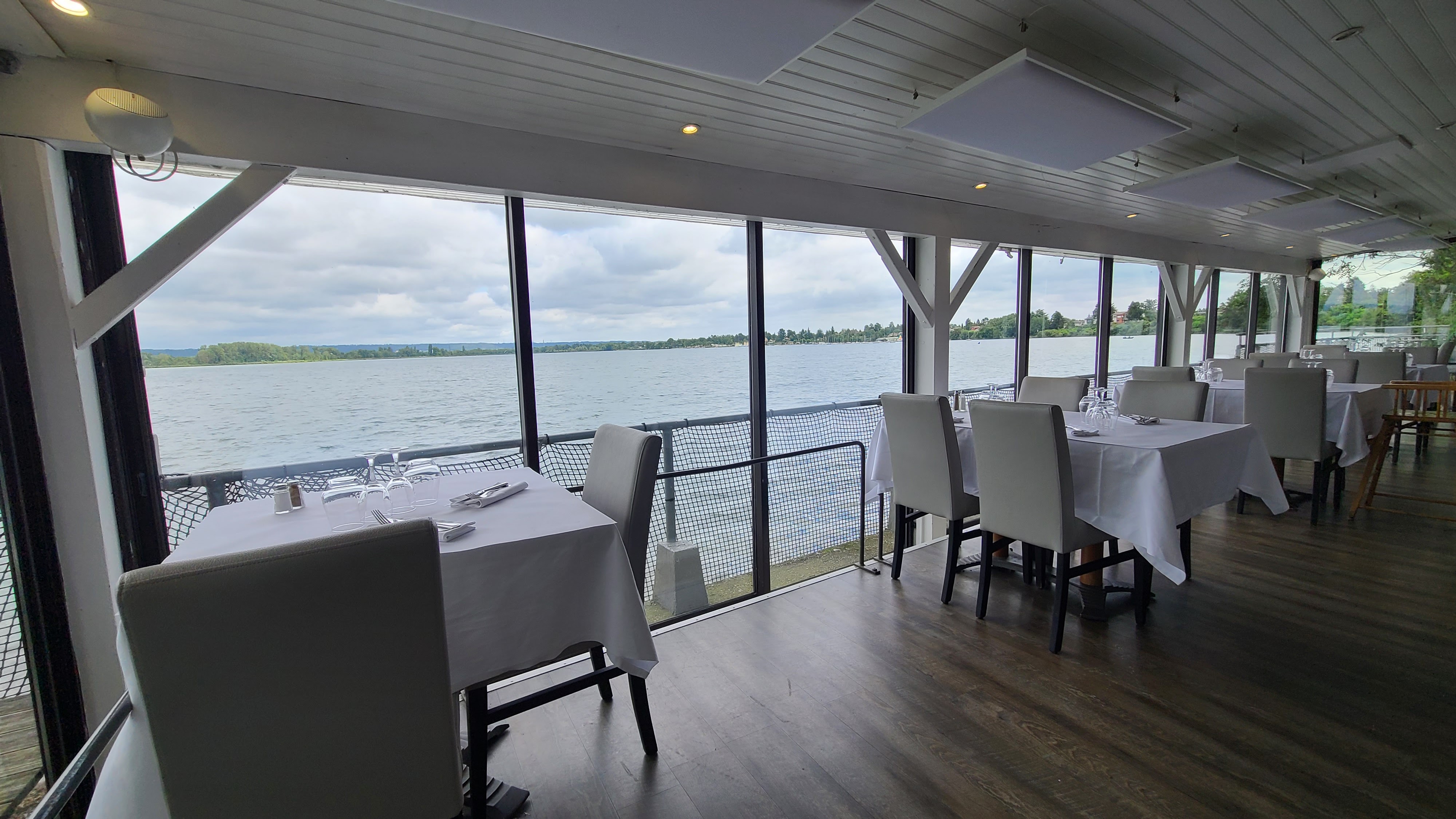 Que ce soit pour un repas en tête-à-tête ou avec des amis, ce restaurant saura combler vos désirs. La terrasse est accueillante, au bord de l’eau avec coucher de soleil en prime, le personnel est super sympa et la nourriture très bonne. Que demander de plus? Un soir de 13 juillet, vous bénéficierez de trois ou plus feux d’artifice tirés de la rive opposée dans les différentes villes qui s’y trouvent. C’est pas merveilleux ça?!