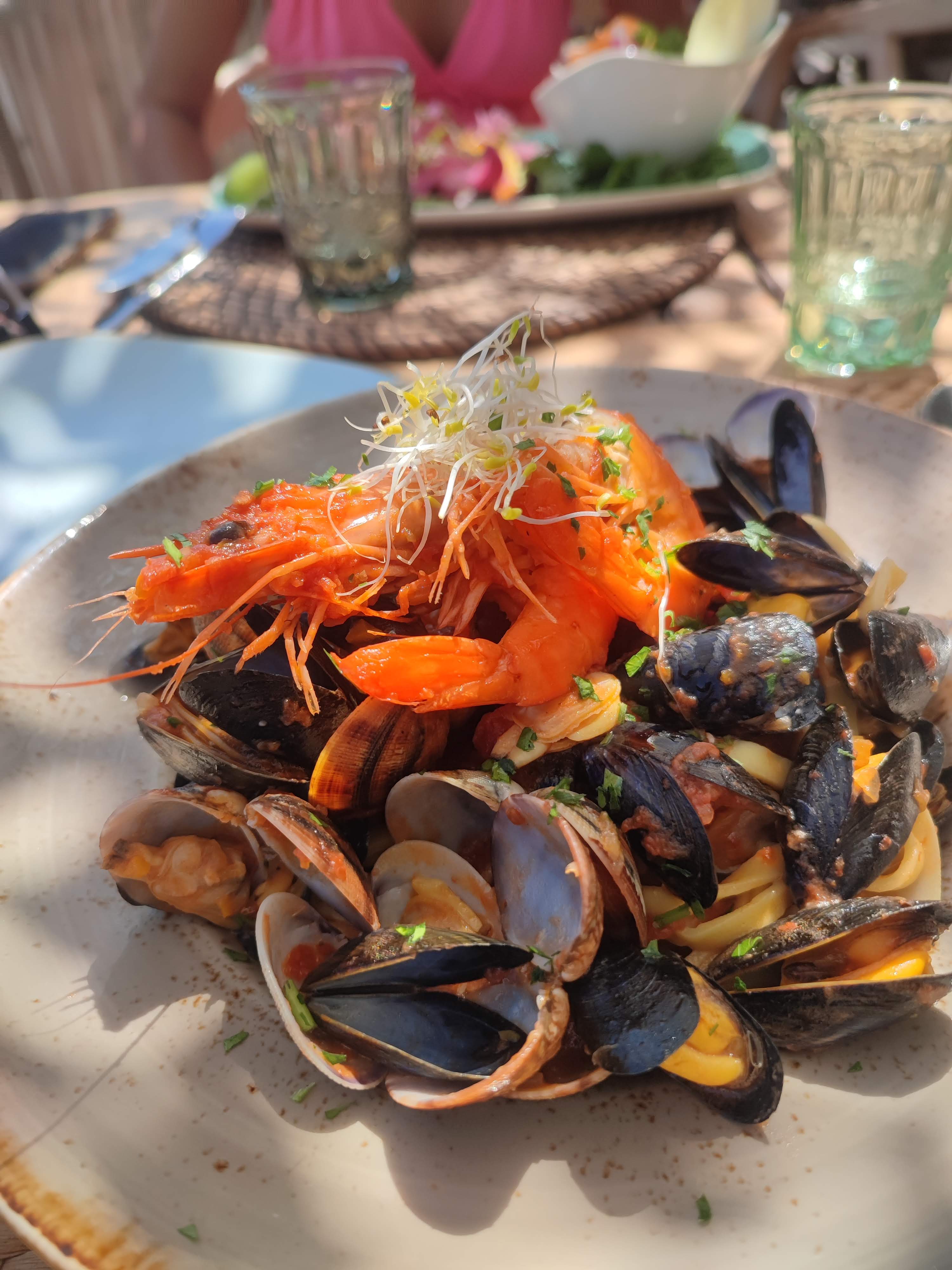 Belle situation,service sympa et attentionné, prix très corrects pour un resto de Pampelonne