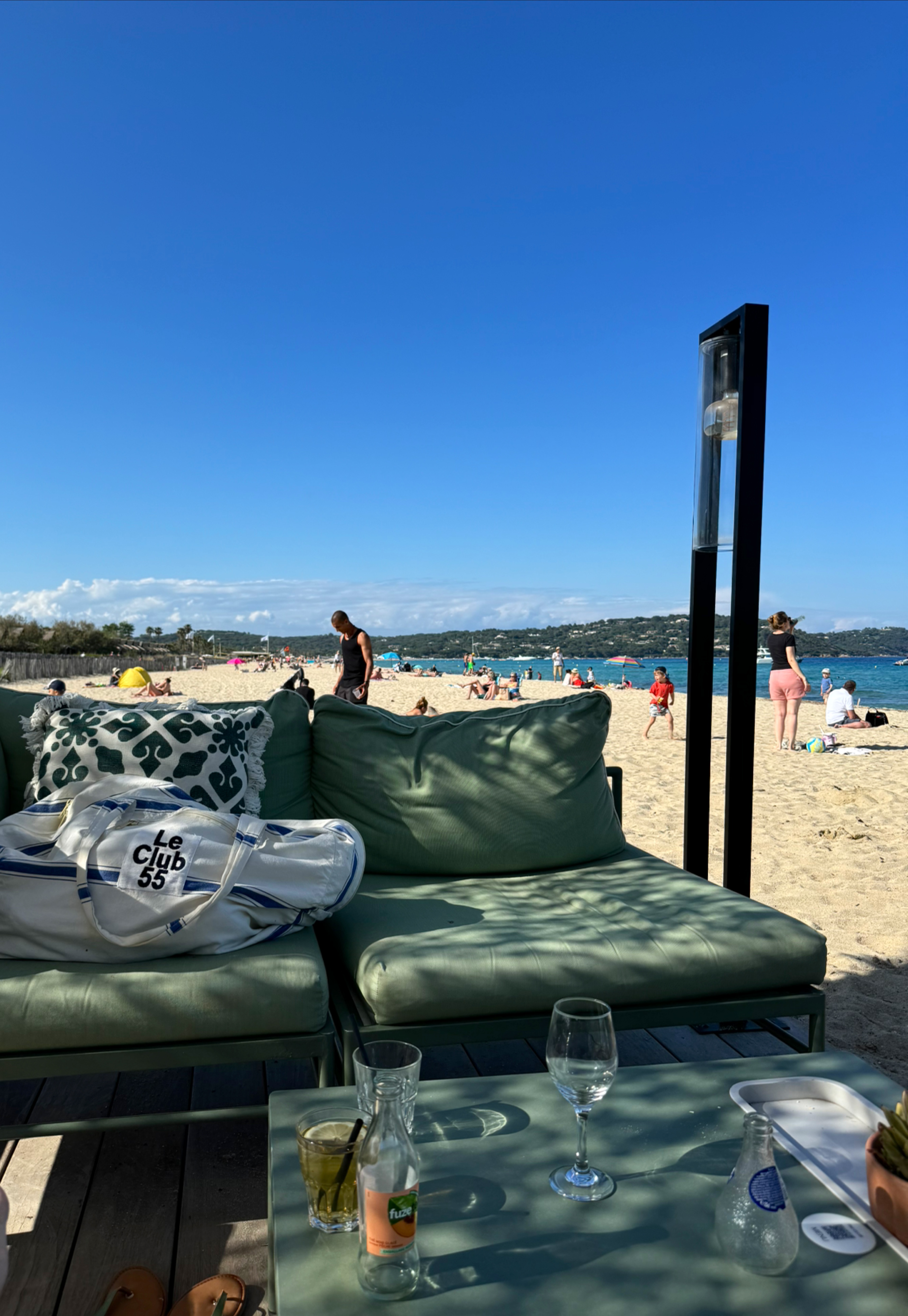 Tout d'abord la plage privée superbe comme chaque année, déco, accueil très agréable par les 2 jeunes plagistes disponibles, service impeccable, souriants rien à dire , sauf peut-être le prix légèrement excessif pour ma part, 60 euros la journée le bed 2 places. Ensuite resto sur la plage, le responsable top, les serveuses souriantes agréables, service impeccable...les plats joliments présentés, bravo aux cuistots. Pour finir par un cocktail au bar au top !!! Une super journée, même si un peu coûteuse. De temps en temps il fait bon se faire plaisir sous le soleil de St Tropez. ☀️🌊