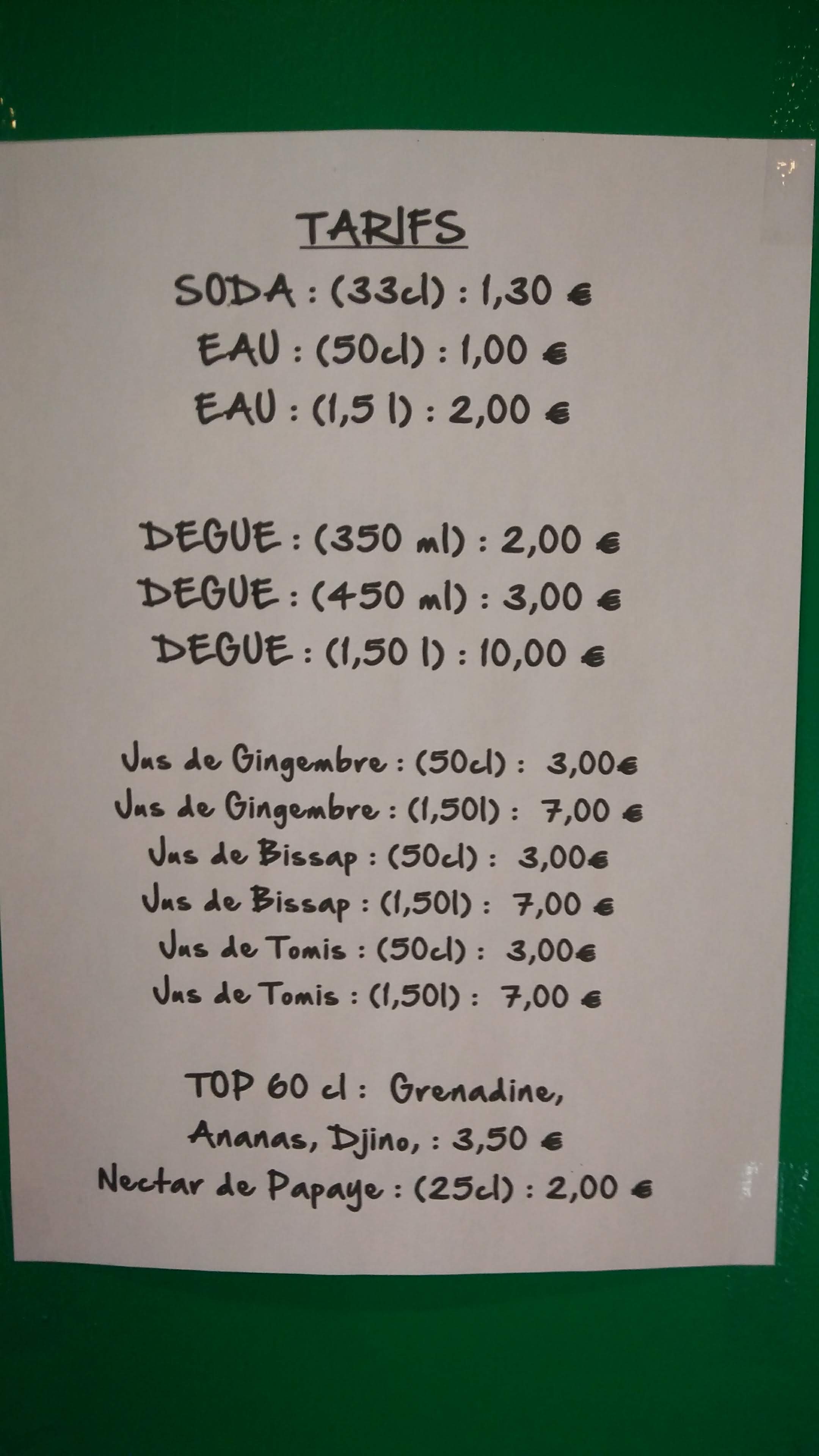 Patron sympa les choix des plats sont judicieux, bien assaisonnés et saint, bissap pas trop sucré vraiment top