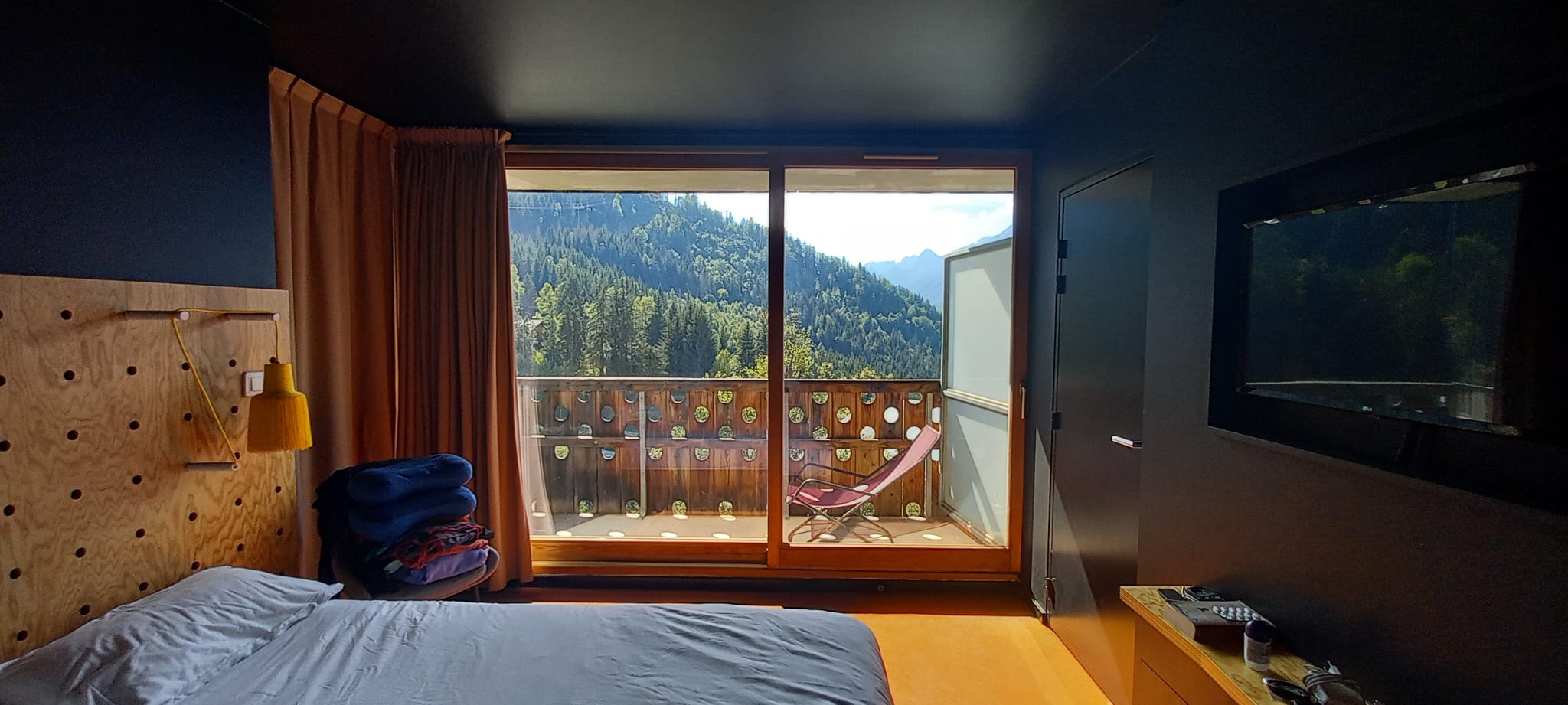 Loger dans une chambre familiale cela reste petit aucun rangement dans la partie des parents. WC dans la salle de bain. Baignoire mais pas possible de prendre un bain relaxant car rien pour boucher le bain... Balcon avec vu magnifique sur la montagne mais qu'un fauteuil pour 4 pour en profiter... La piscine interdit aux enfants de moins de 16ans non accompagnés !!!!!! La galère!!