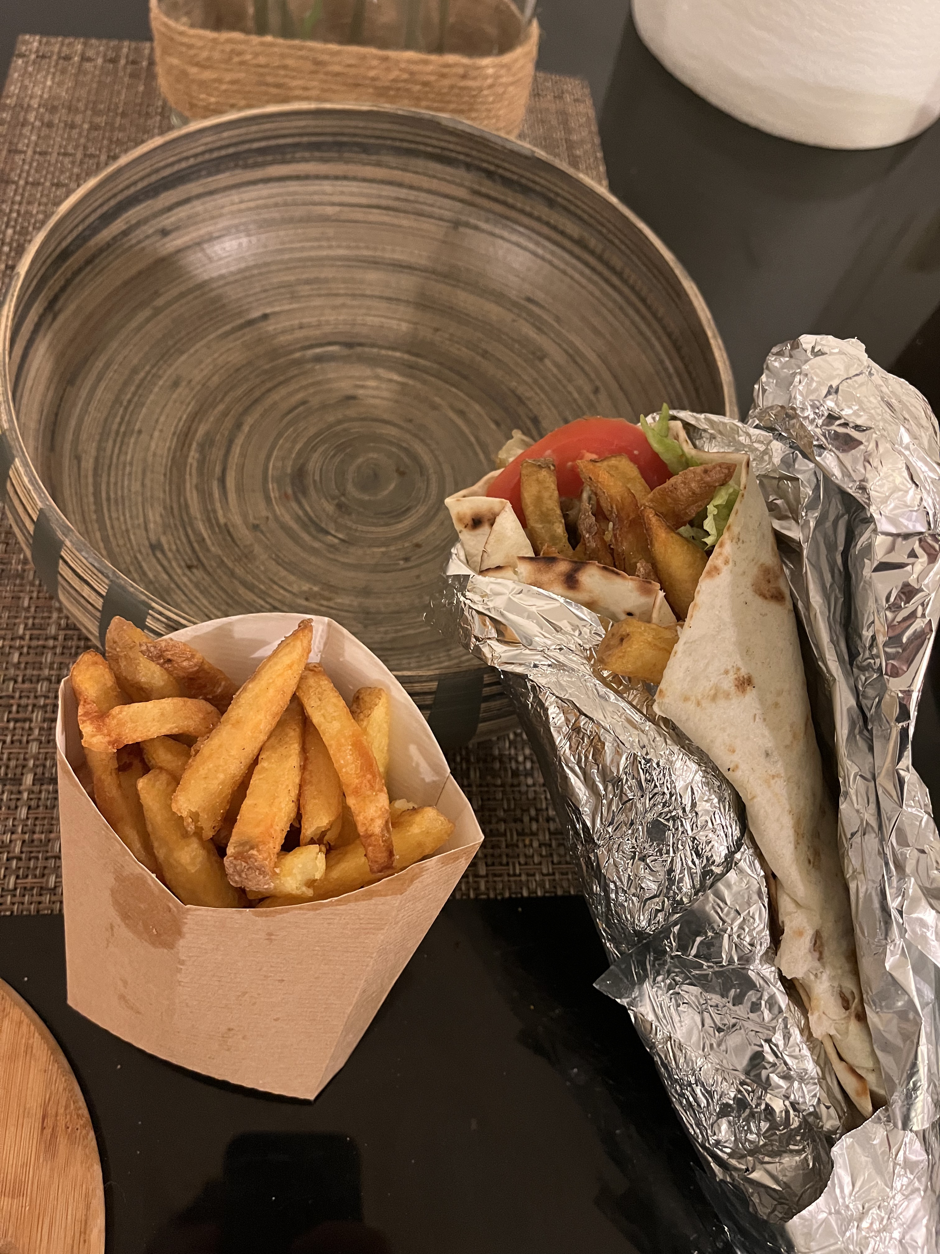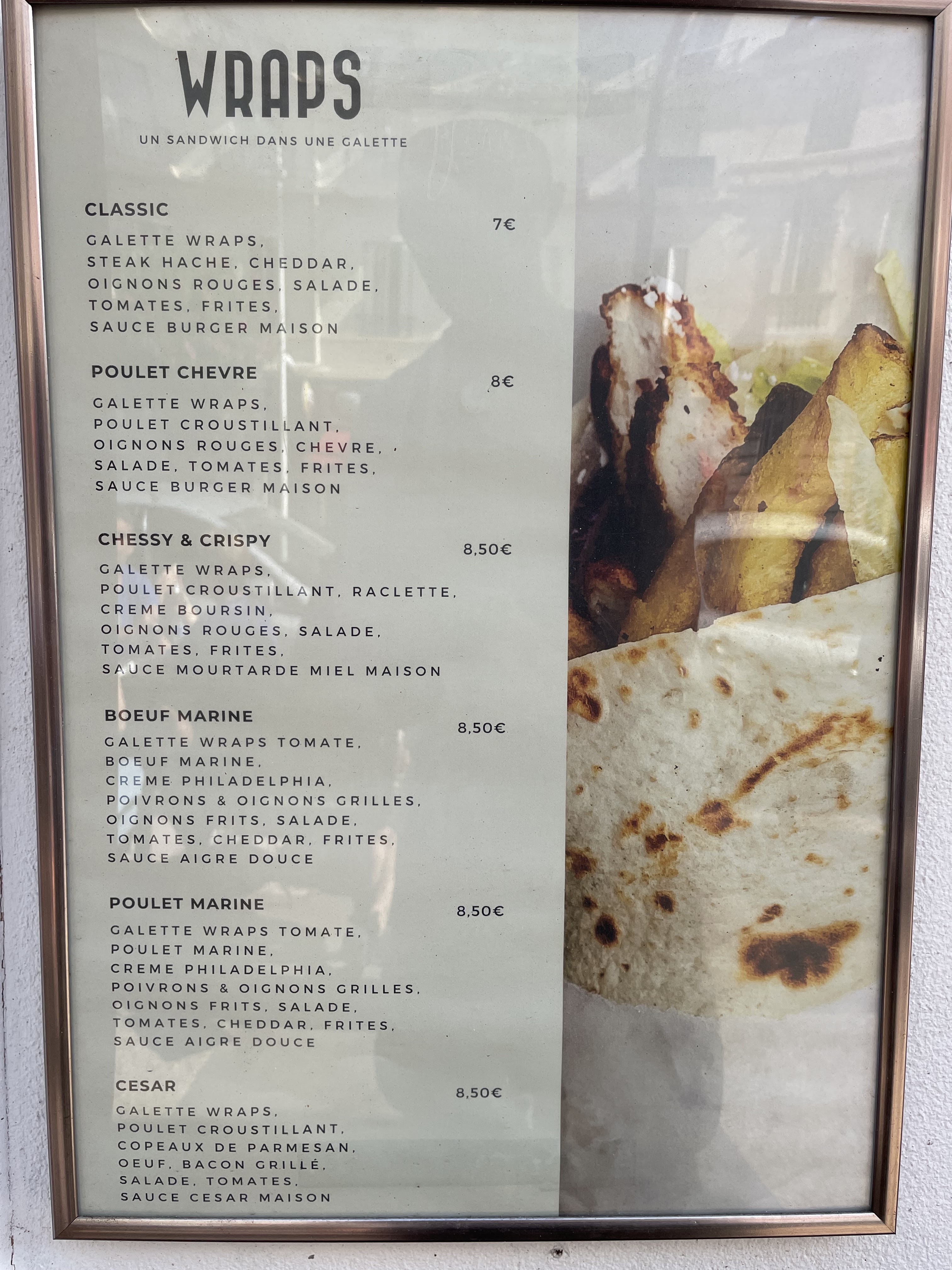 Très bonne nourriture et bon service, et les portions sont grandes ici ! Nous sommes même revenus une deuxième fois. Je recommande les wraps (8€) ! Ils proposent de tout entre 8 et 16 €, des wraps, des burritos, des bowls et des burgers, ainsi que des frites (4 €). Une chose cependant, il pourrait y avoir un peu moins de frites dans le wrap, puisque celles du fond deviennent de toute façon détrempées.