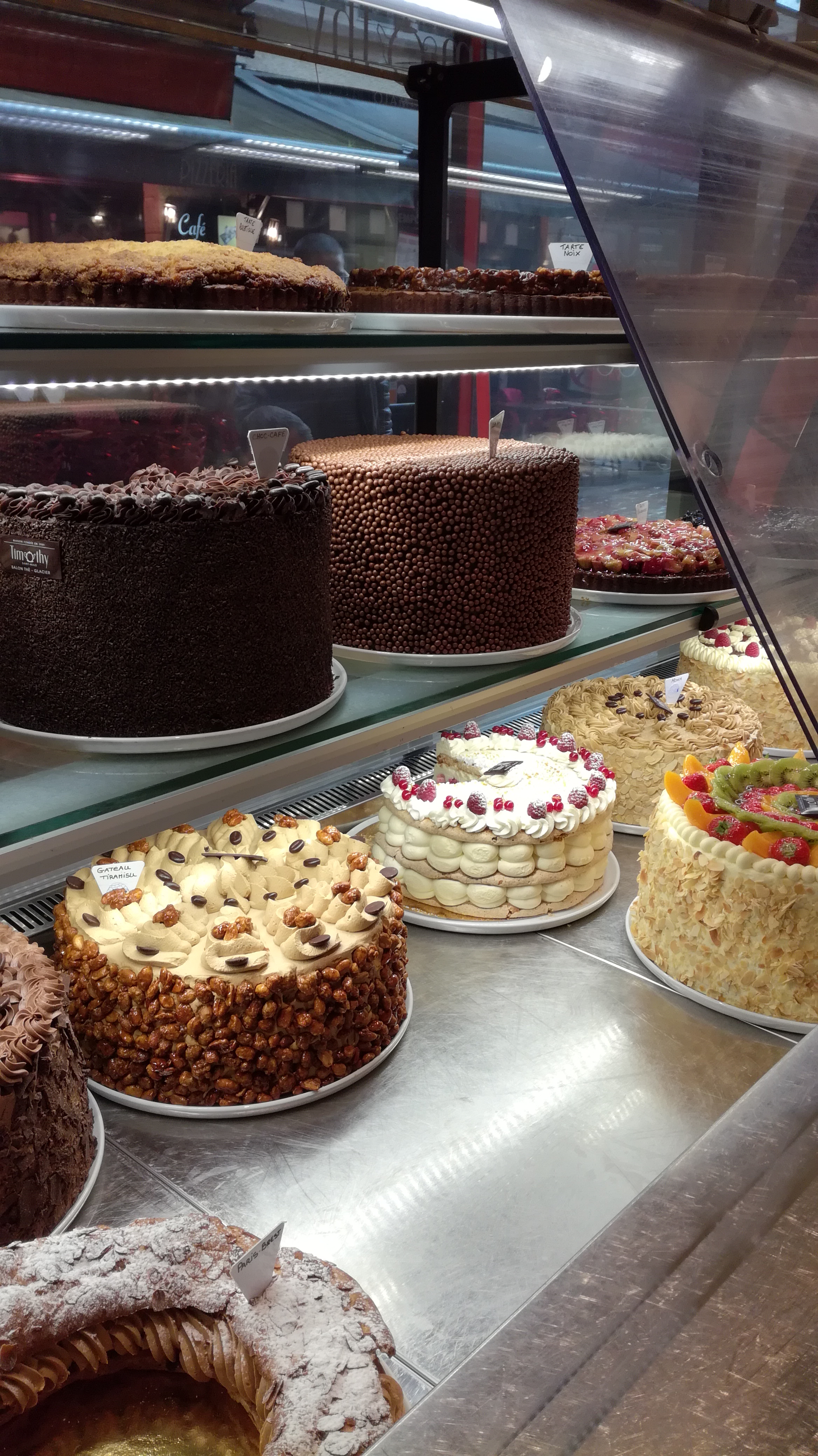 La réputation du Timothy n'est plus à faire ... lieu incontournable où prendre un bon goûter. Des gâteau aussi grands que bons, il y en a pour tout les goûts et le plus dur sera de faire son choix ... les quantités sont limités et les meilleurs arrivent rapidement en rupture (gâteau aux macarons - mon préféré ) Possibilité de déguster sur place ou à emporter et aussi de commander en avance par téléphone pour être sur d'en avoir ! Si vous passez devant la vitrine vous serez obligés de vous arrêter !