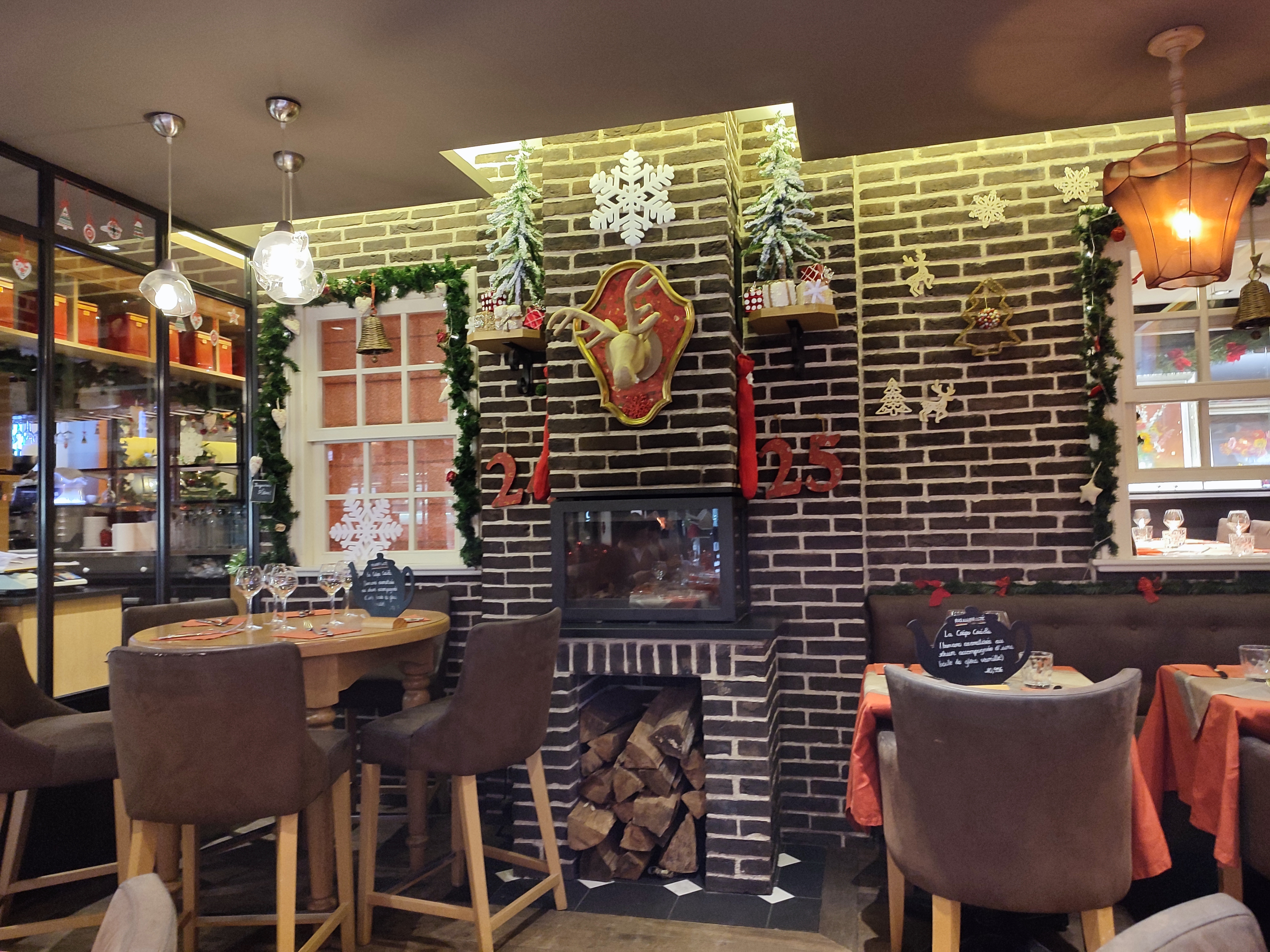 Bel endroit. Joliment décoré pour Noël, chaleureux, une équipe sympathique, des gâteaux extraordinaire et un bon repas, décidément ce restaurant n'a que des qualités ! Les prix sont correctes et si vous ne parvenez pas à finir le gâteau, emporter le restant chez vous. Je recommande vivement.
