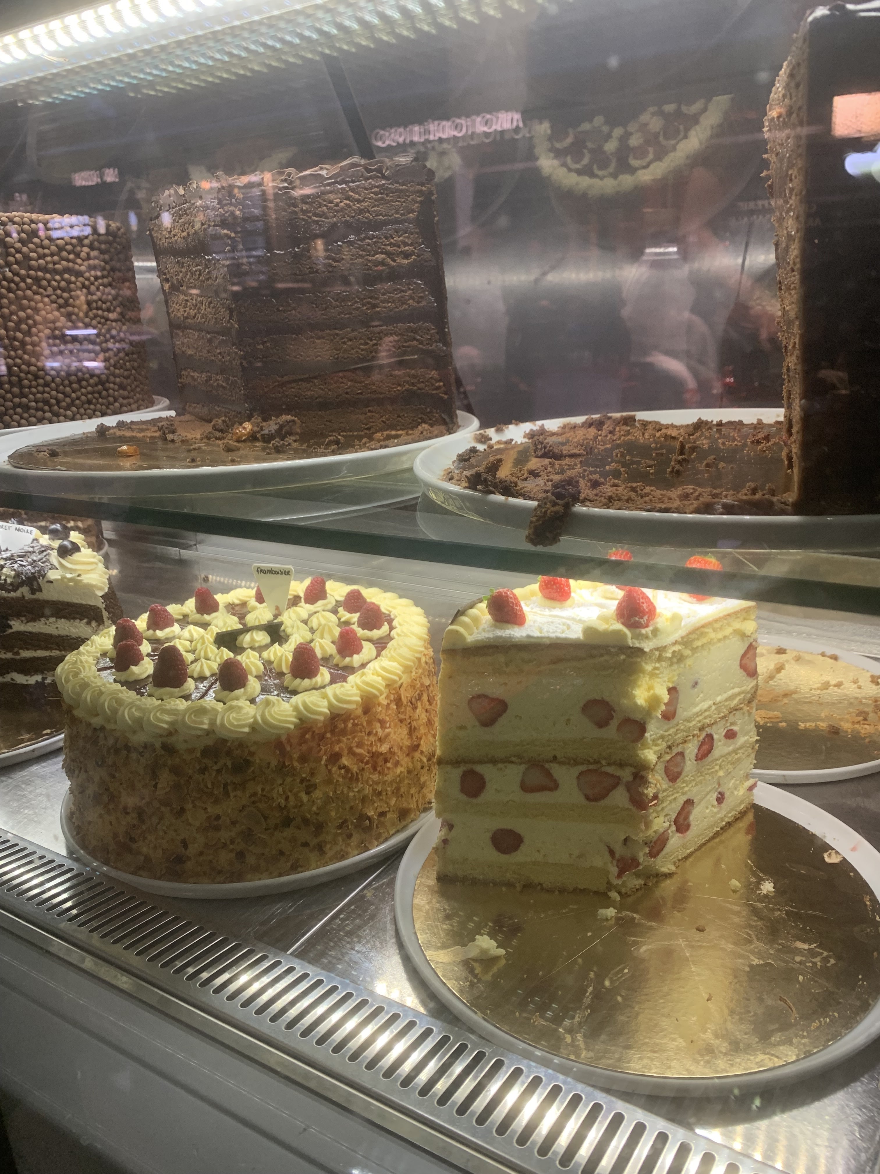 Service assez rapide manque de sourire à mon goût, très froid l’accueil ! Les gâteaux sont énormes mais écœurants en crème impossible de les terminer, cela manque de légèreté. Même le fondant au chocolat qui est pourtant beaucoup plus petit (pour le même prix d’ailleurs) n’a pas pu être fini trop lourd !!! Les boissons chocolatées et late sont quant à eux excellent