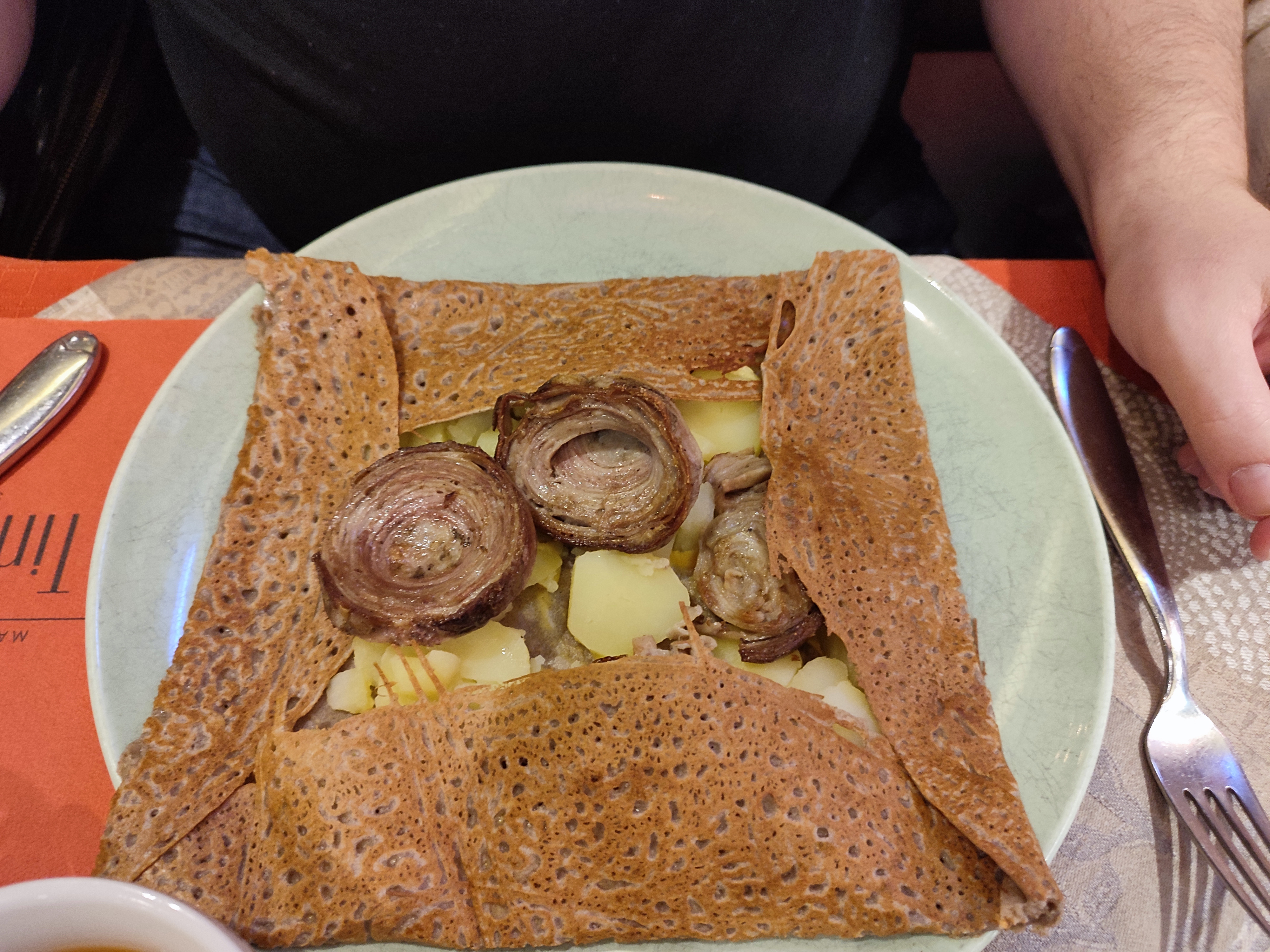 J'ai commandé une galette a l'andouille très déçu, trois petite tranches d'andouille de la pomme de terre en cubes , un peu de moutarde, galette fade et pas assez cuite, service minimum , très déçu.