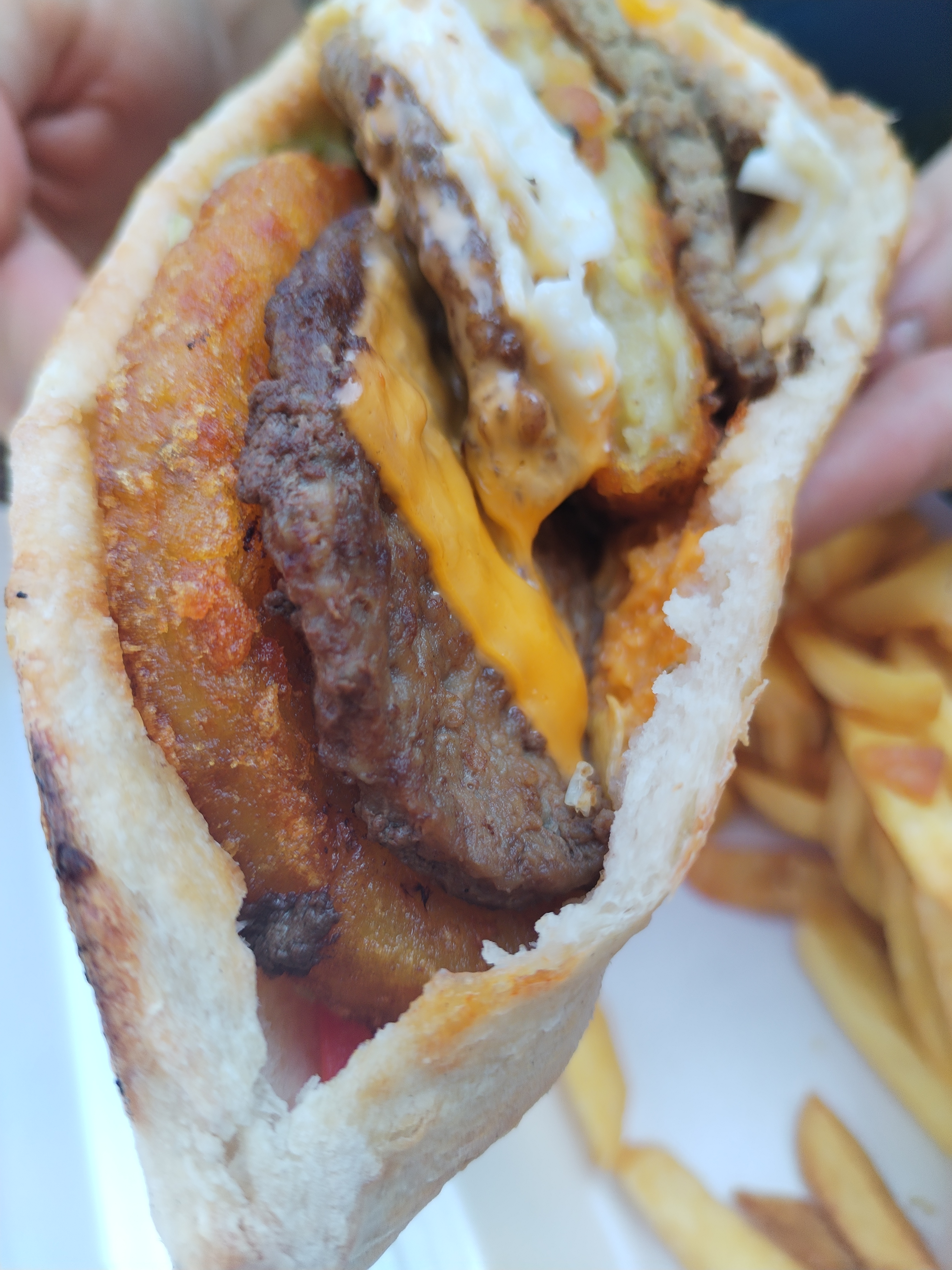 Déçue du burger baps, les steaks affreusement plats, un tranche de fromage malheureuse, des légumes sans saveur, une galette de pomme de terre très fine également le tout voyageant dans un pain burger gigantesque. Dernière fois pour nous dans ce fast food.