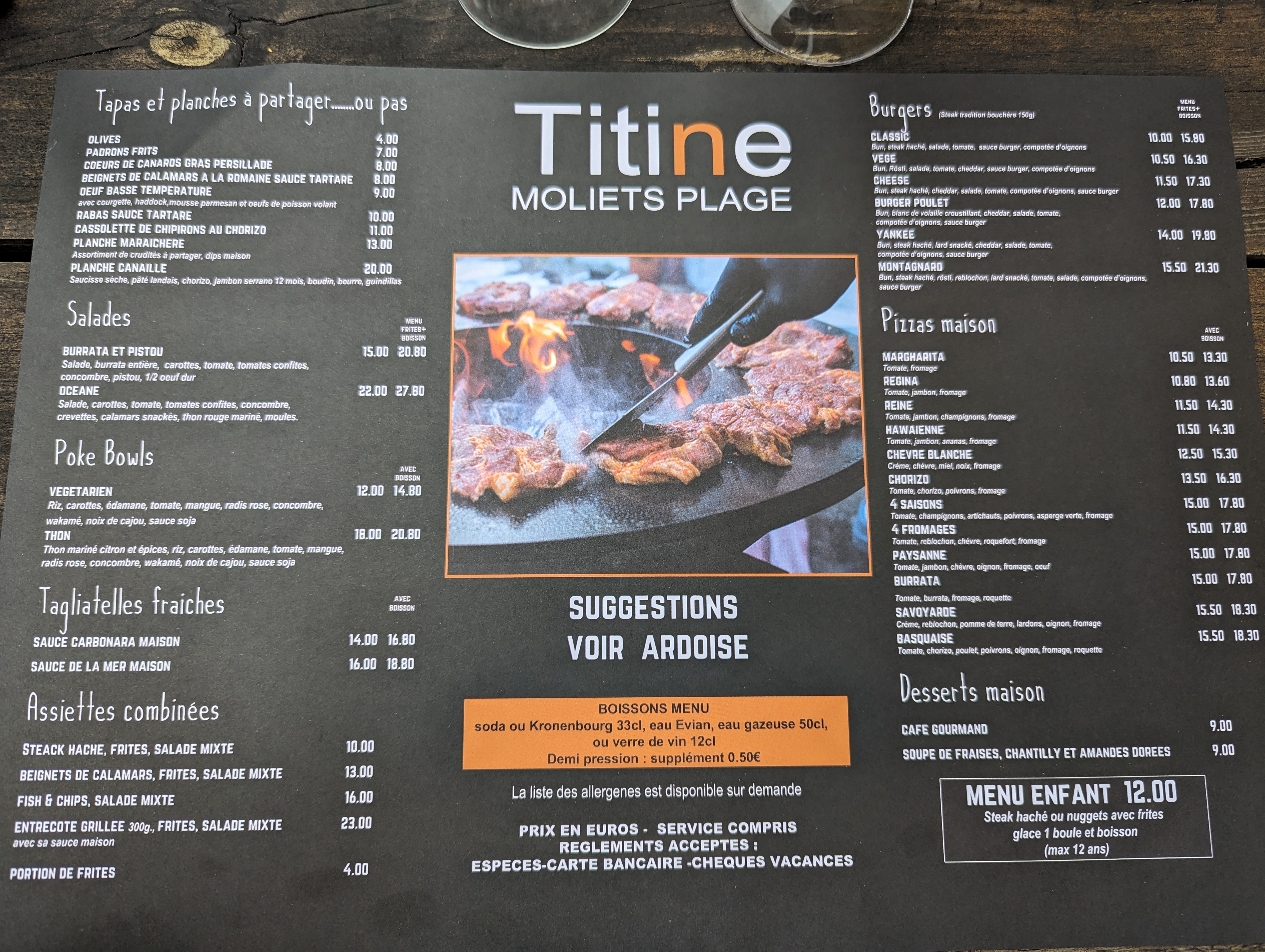 Nous fréquentons Titine depuis 3 ans maintenant. Lieu toujours très agréable, restaurant de plage bien placé avec un choix très variés. Malheureusement, nous constatons une baisse significative de la qualité des plats proposés; pizza sans grande saveurs avec toute un filet de beurre d'escargots dessus (pourquoi?), les américains aussi ont perdu en saveur, les portions des calamars et salades par exemple ont rétrécie. Disparition de certains plats au menu l'année dernière comme les chipirons. Le service reste efficace et souriant, rien à dire sur cela. Le prix reste compétitif (comptez environ 60-70€ pour un repas complet à 4) mais la qualité ne suis plus du tout. En bref, nous comptions passer la majorité de nos dîner dans ce lieu mais, après 3 repas consécutif à tester toute la carte, nous avons tous décider à l'unanimité de changer de crèmerie, dommage...