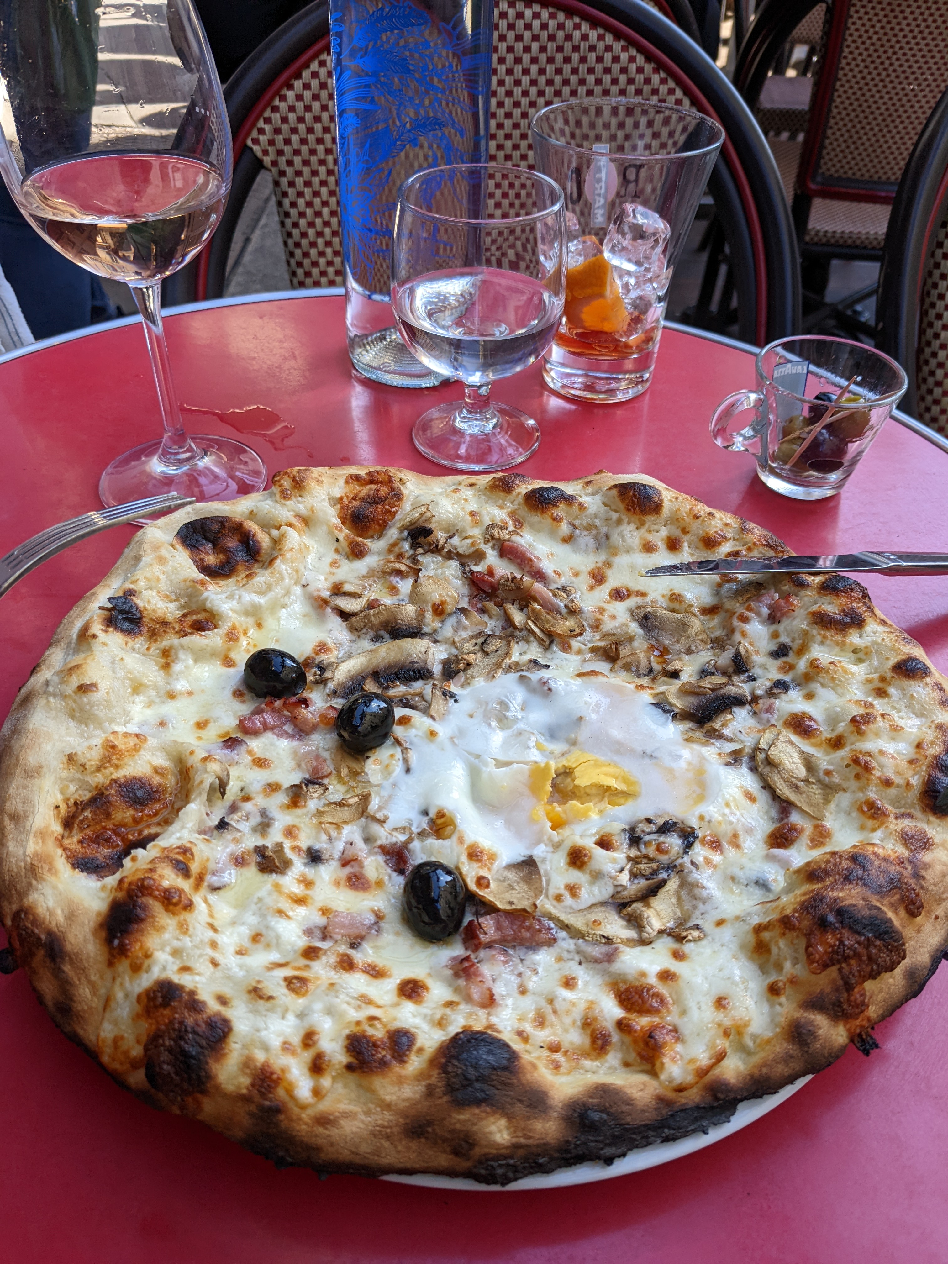 Pizza bof et chère, eau et boissons pas fraîches, serveurs un peu dépassés. L'huile sur la 4 fromages en photo