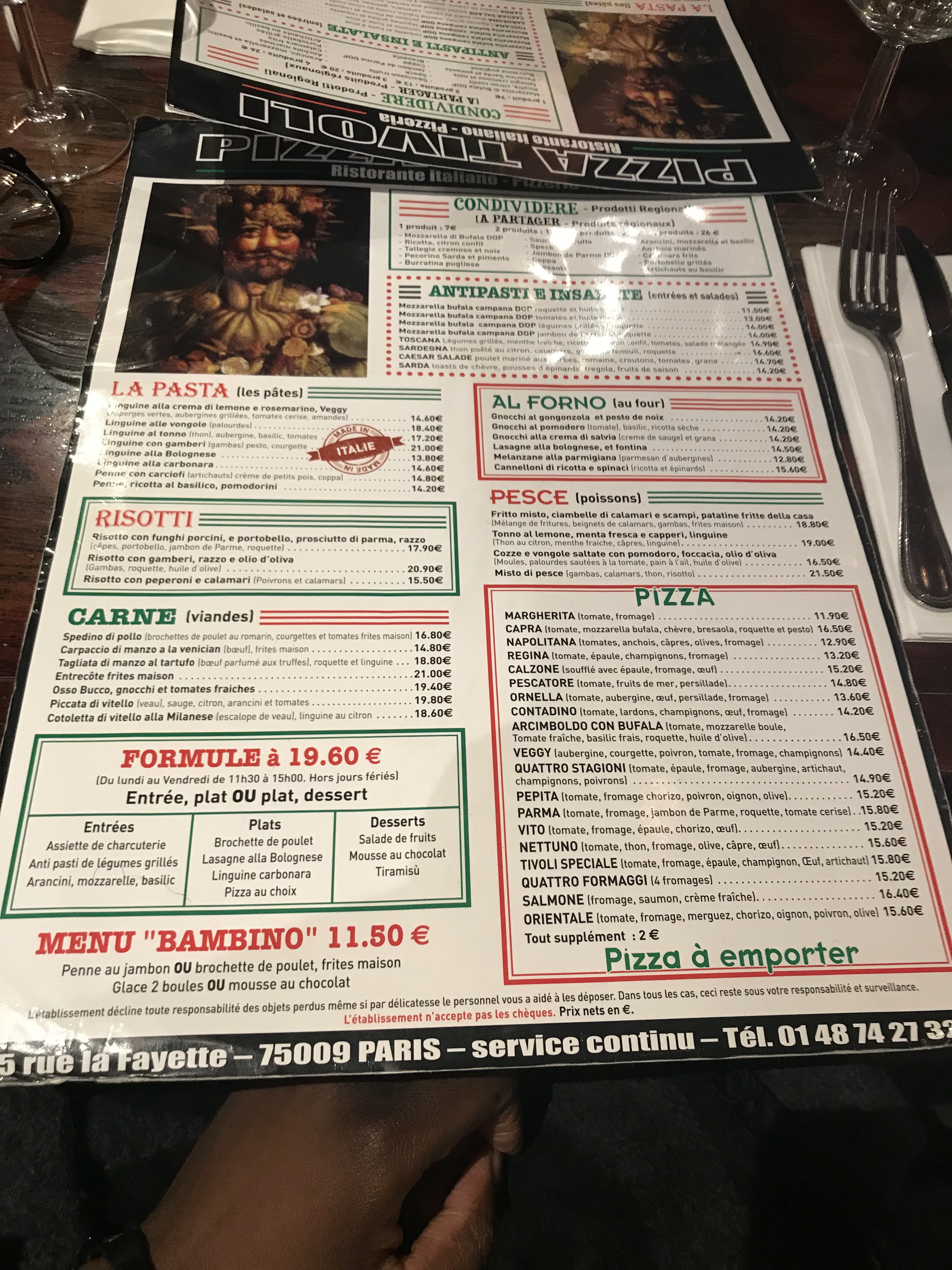 Accueil plaisant dans une magnifique salle. Plats du jour, carte et menus offrent un large choix de la cuisine italienne. Le service et le rapport qualité/prix sont plus que satisfaisants. Entre amis, collègues ou en famille, le restaurant Tivoli propose un réel moment de dépaysement et de convivialité.
