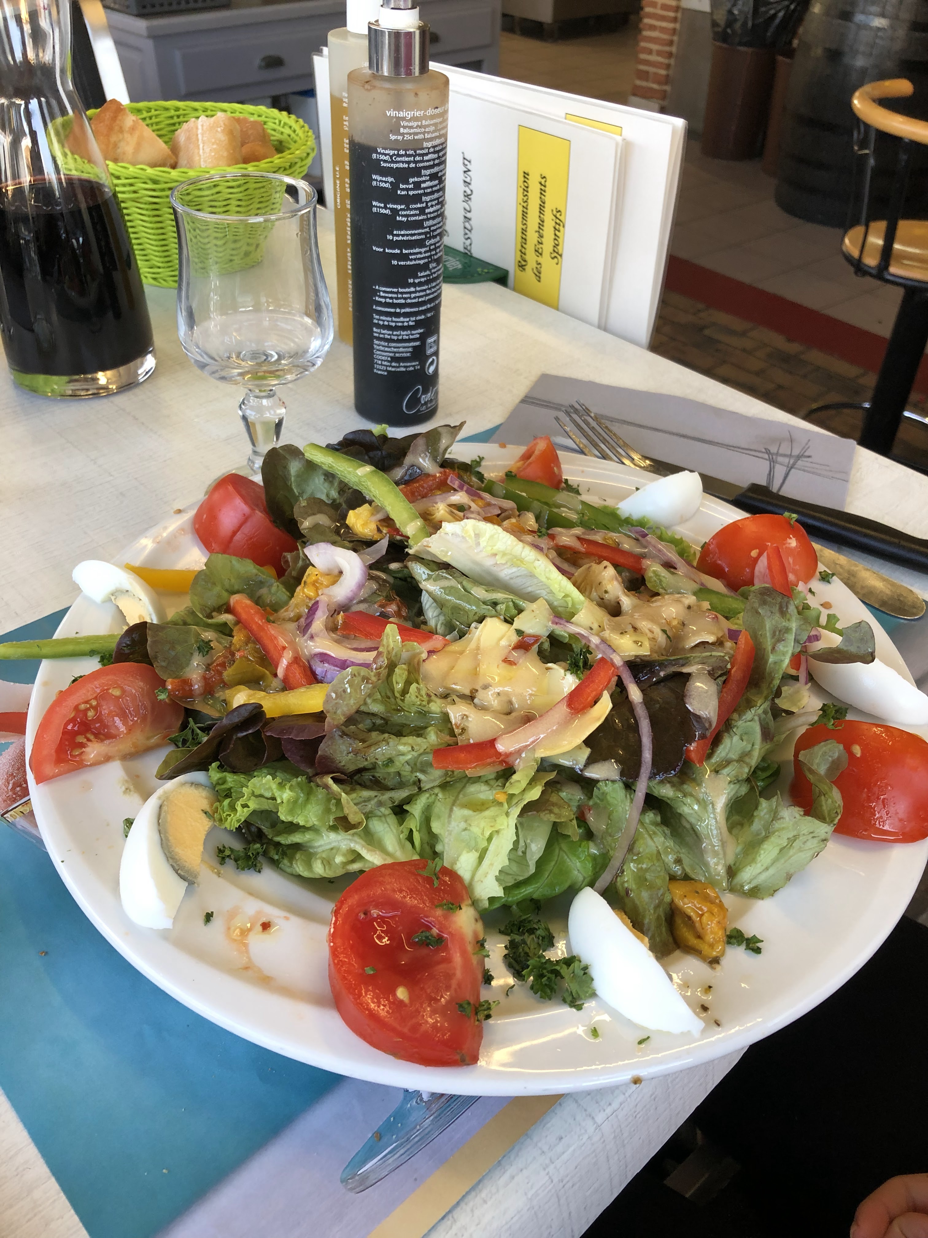 Salade landaise n'a que de nom du département où nous l'avons mangé. Trop copieuse. Avec moins de quantité et plus de qualité (asperges du pays et non en boîte pleine d'eau) et mieux présentée. Service et accueil parfait rien à dire. Nous vous souhaitons une bonne saison