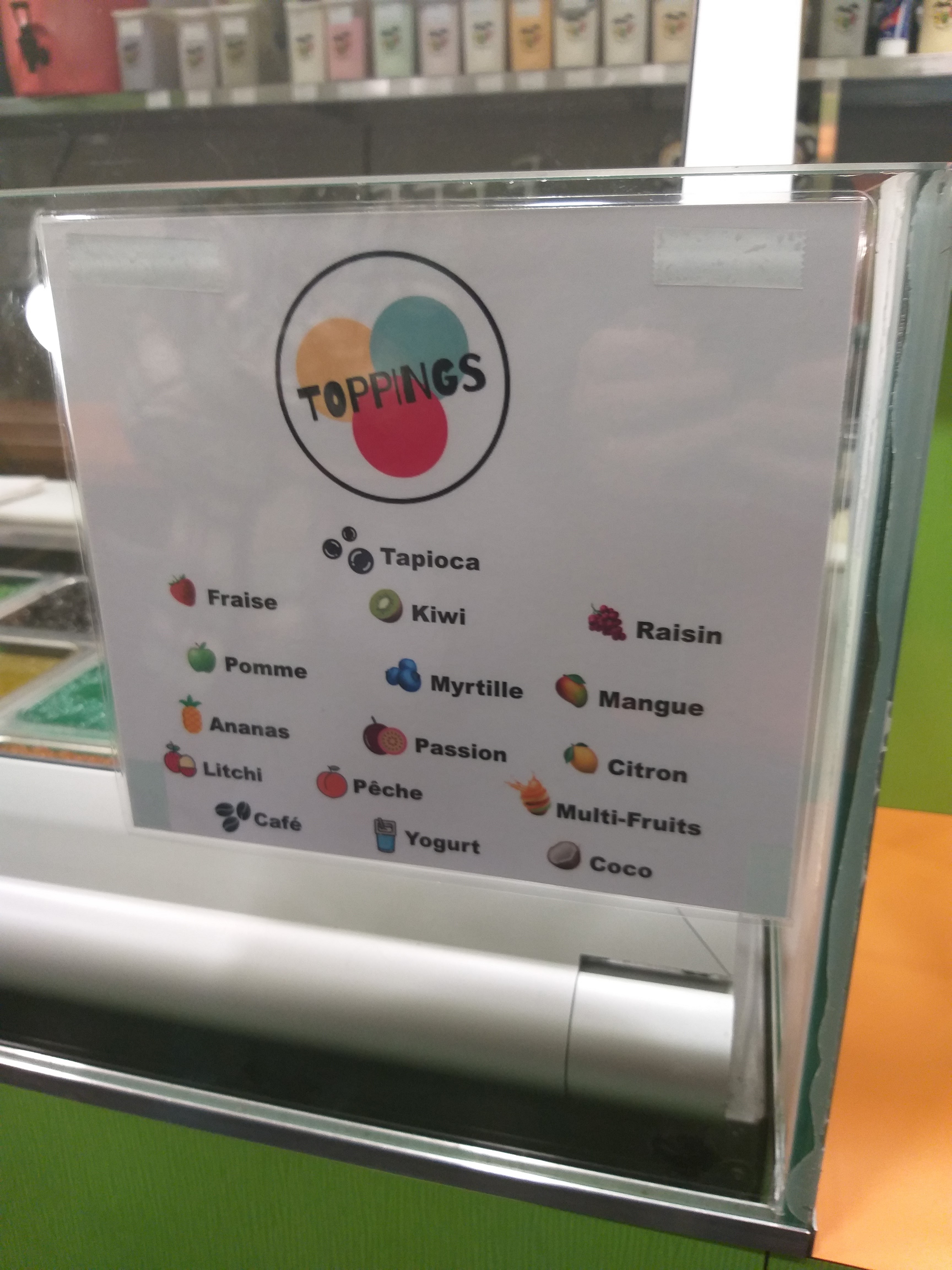 Erreur sur l'addition : on nous compte les toppings inclus en supplément ( la collègue de la caissière lui a signalé mais elle n'a pas corrigé). J'ai refait le total après et comme je n'avais pas de ticket pas possible de réclamer. Sinon pour la boisson mangue fraîche (prise sans topping) le goût est agréable. La déception vient que sur la photo on voit plein de des de mangue fraîche. A la conception il y a bien un coulis et de la purée fraîche mais pour les des ce sont deux lamelles riquiqui qui ont sombre en quelques secondes dans le cream cheese liquide. Pour ces 7 euros la boisson n'est pas exceptionnelle. De même pour le milkshake avocat ( topping normalement inclus) mais pour laquelle on nous a facture le supplément. Dommage. J'essaierai peut être un bubble tea classique pour compléter mon idée. Si il m'est facture les 5.50 promis il pourrait m'amener à revoir ma note.