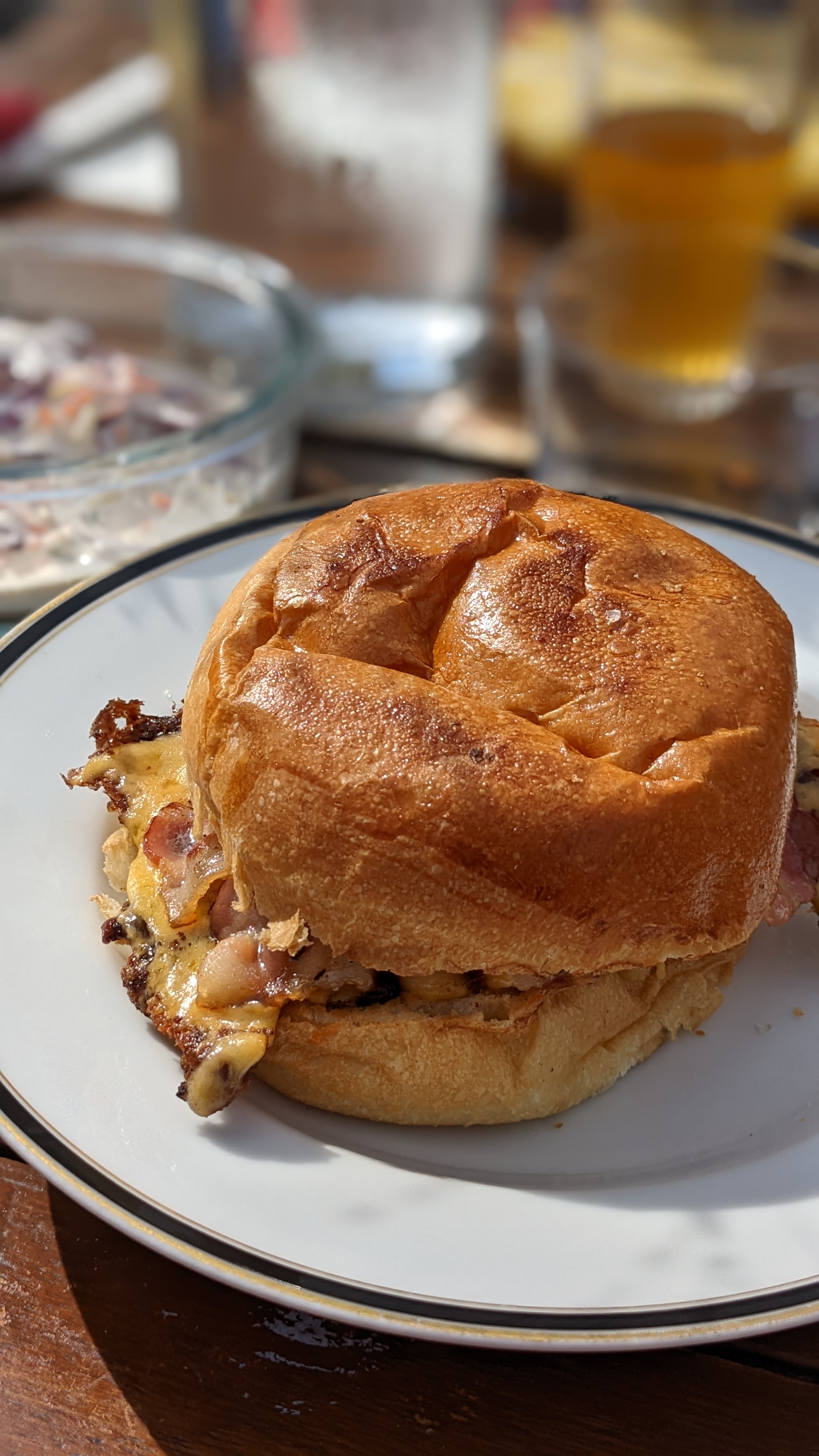 Établissement très sympathique au coeur du village, terrasse ensoleillée à deux pas de l'église. Personnel très accueillant. Mets de qualité à base de produits naturels locaux. Goûtez le smash burger 🍔 et le parmentier de pulled pork. Cole slaw savoureux sauce yaourt. Une jolie découverte.