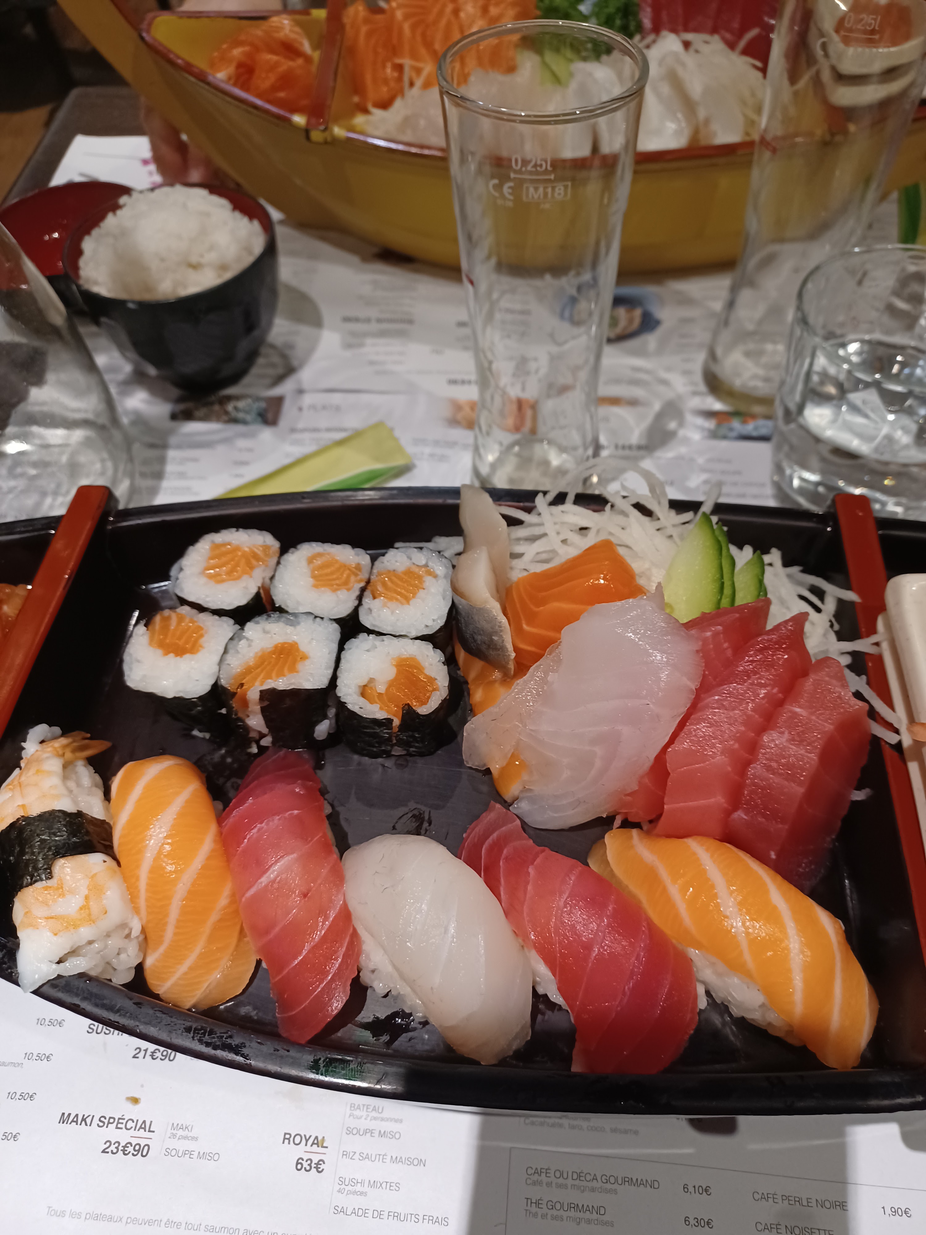 Très décevant. Pas possible d'avoir un assortiment de sushi/maki/sashimi le soir, c'est proposé seulement à midi. Ils n'avaient pas ce que j'ai commandé (poulpe) et en plus le thé gourmand n'était pas accompagné de gâteaux japonais mais de gâteaux normaux. Je ne recommande pas.