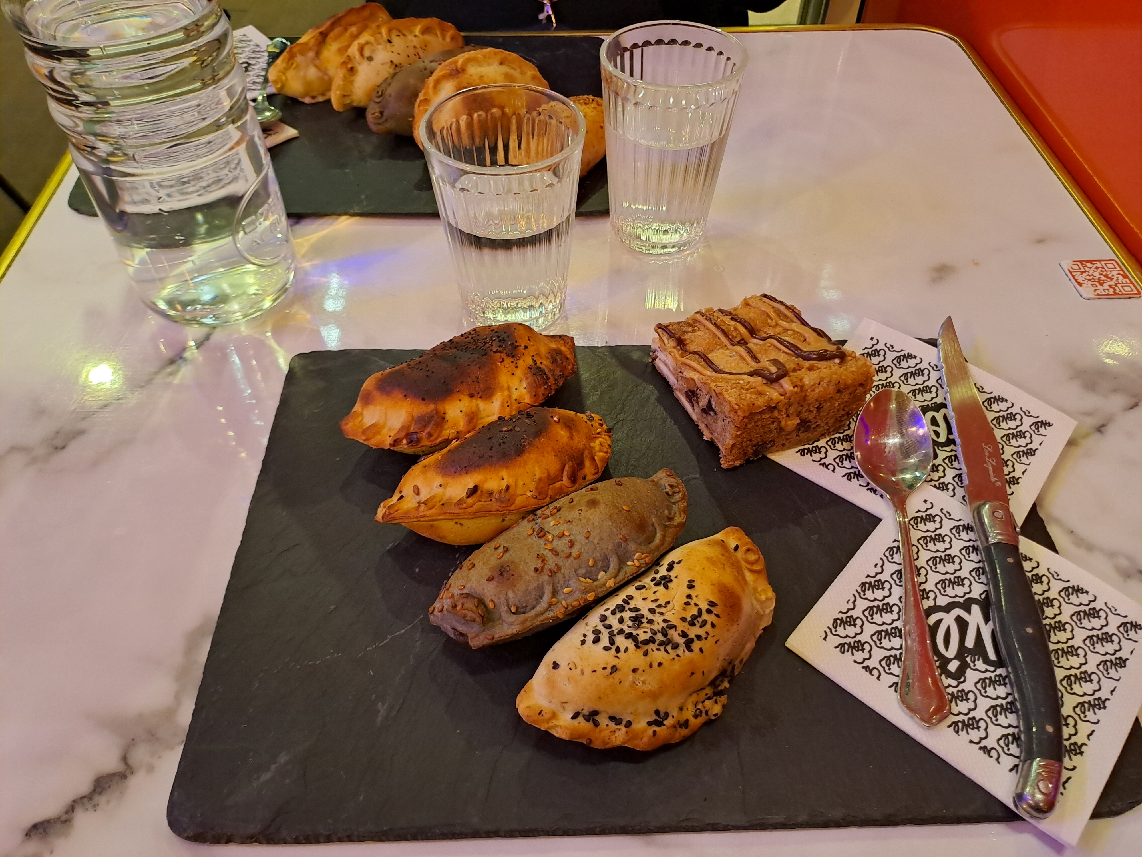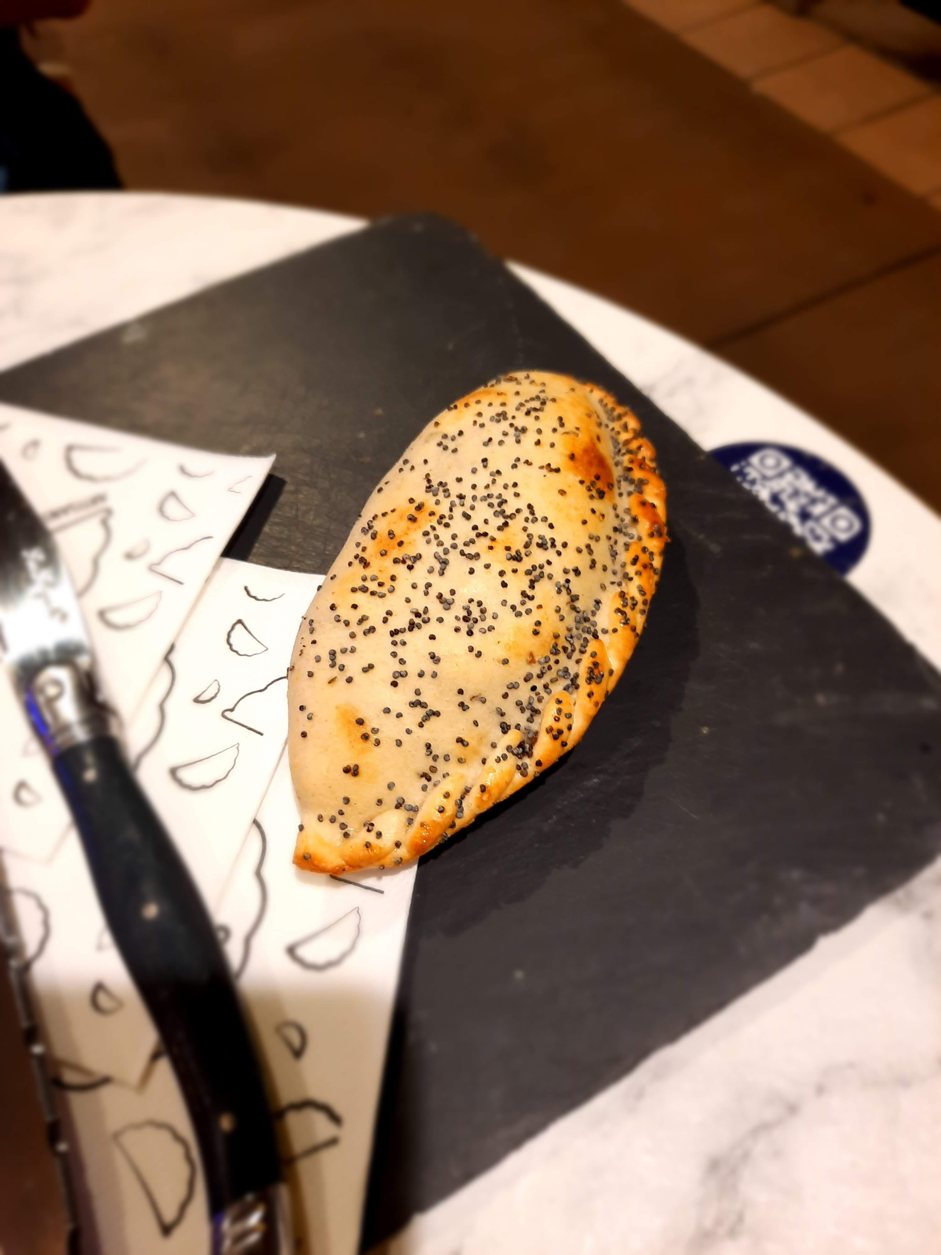 Je suis allé là avec un ami et j'étais très content avec l'expérience. C'était un concept intéressant, les empanadas française. Il y avait 12 goûts des empanadas et nous avons goûté tout sauf le Dahl qui était fini. Dans l'ensemble j'avais été content avec la nourriture c'était savoureux mais les morceaux/portions étaient un peu petites. Si j'avais payé le prix complet j'aurais été un petit peu déçu avec la taille des morceaux. Mais parce que j'avais payé avec la fourchette et j'avais reçu une réduction de cinquante percent, j'étais très satisfait. En conclusion je recommande le magasin et je voudrais visiter encore mais pas nécessairement tout suite.