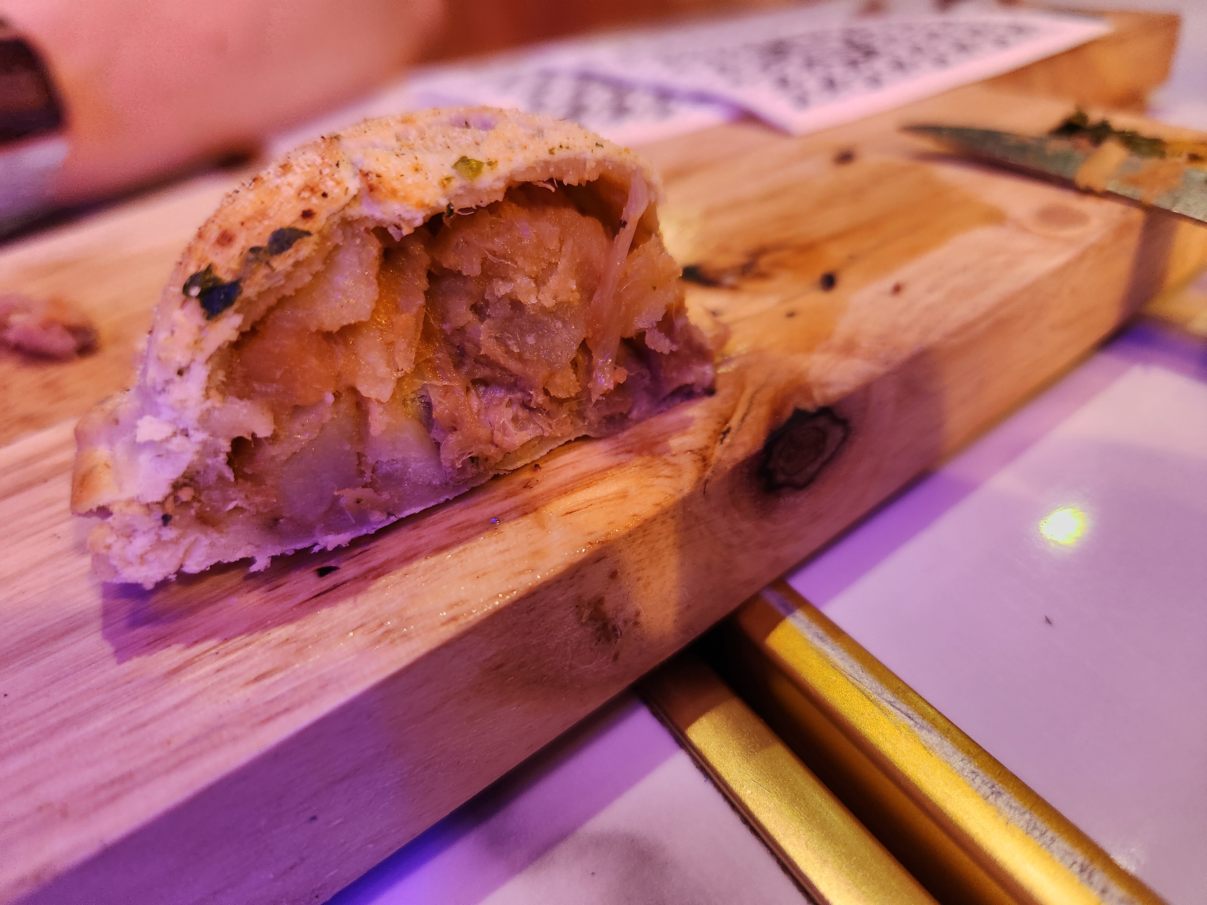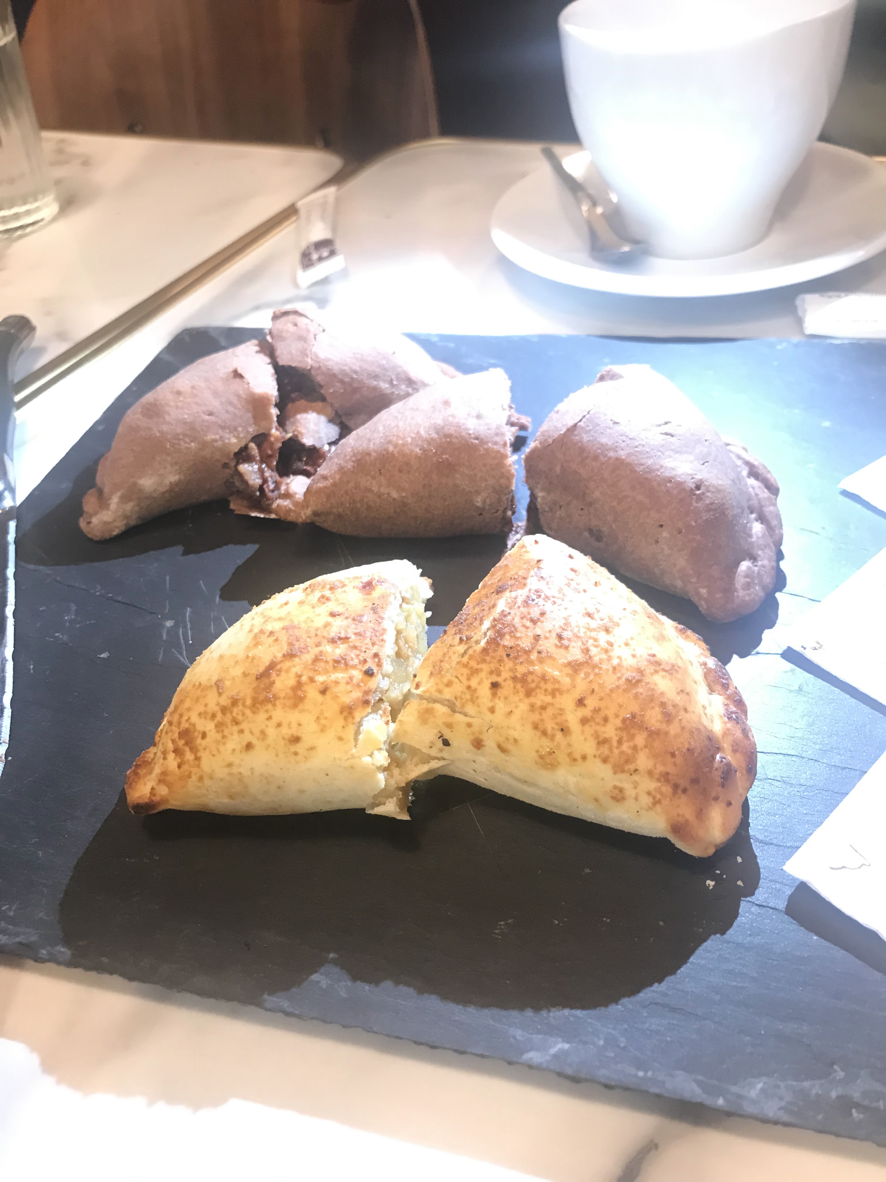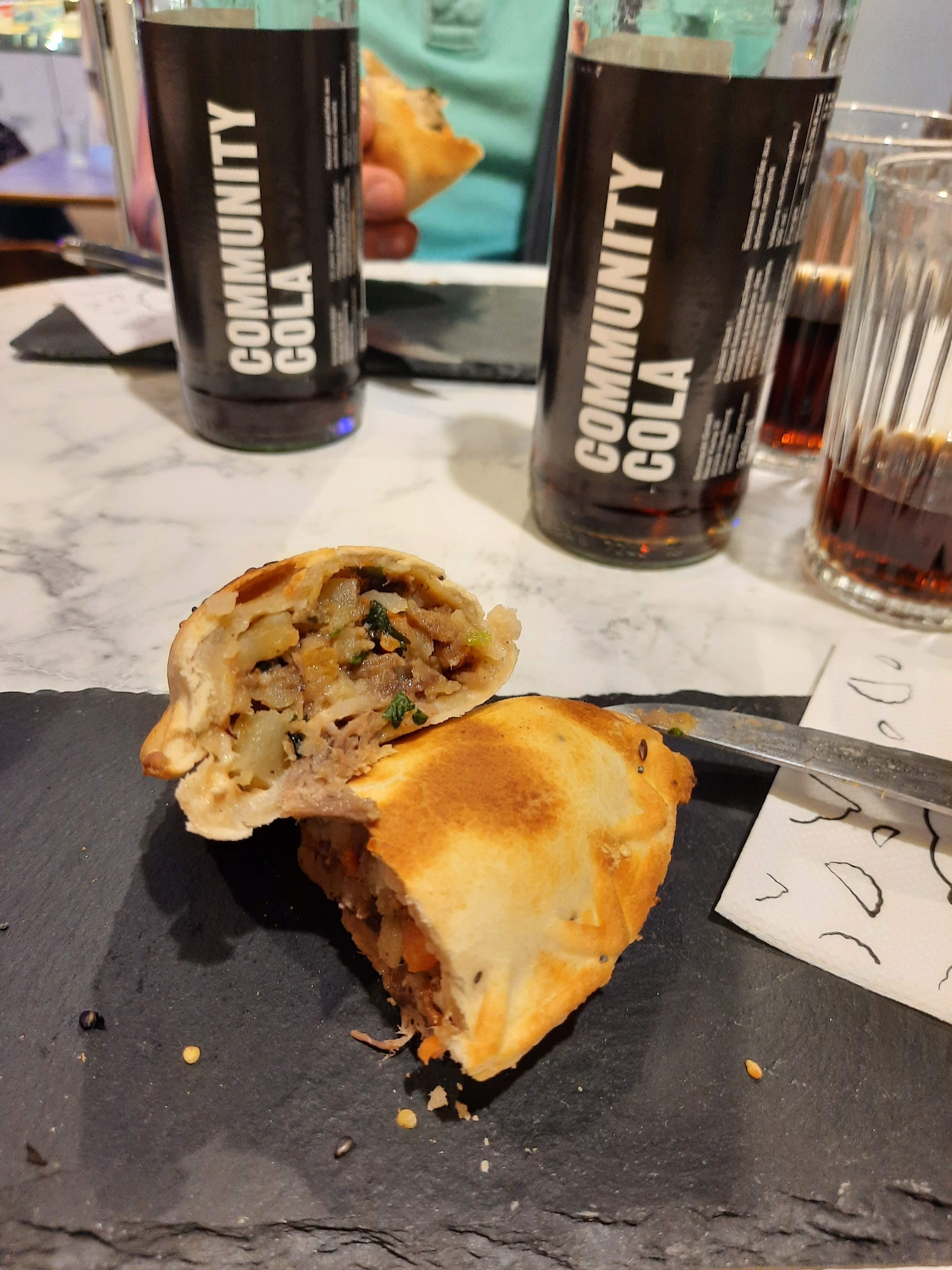 J'ai essayé l'empanada au jambon, à l'emmental et aux truffes. Je n'ai pas pu goûter de truffes. La pâtisserie était correcte mais pas la meilleure que j'ai eue. Remplissage décent. Globalement bon mais pas génial. Je m'attendais à mieux d'après les critiques élogieuses.