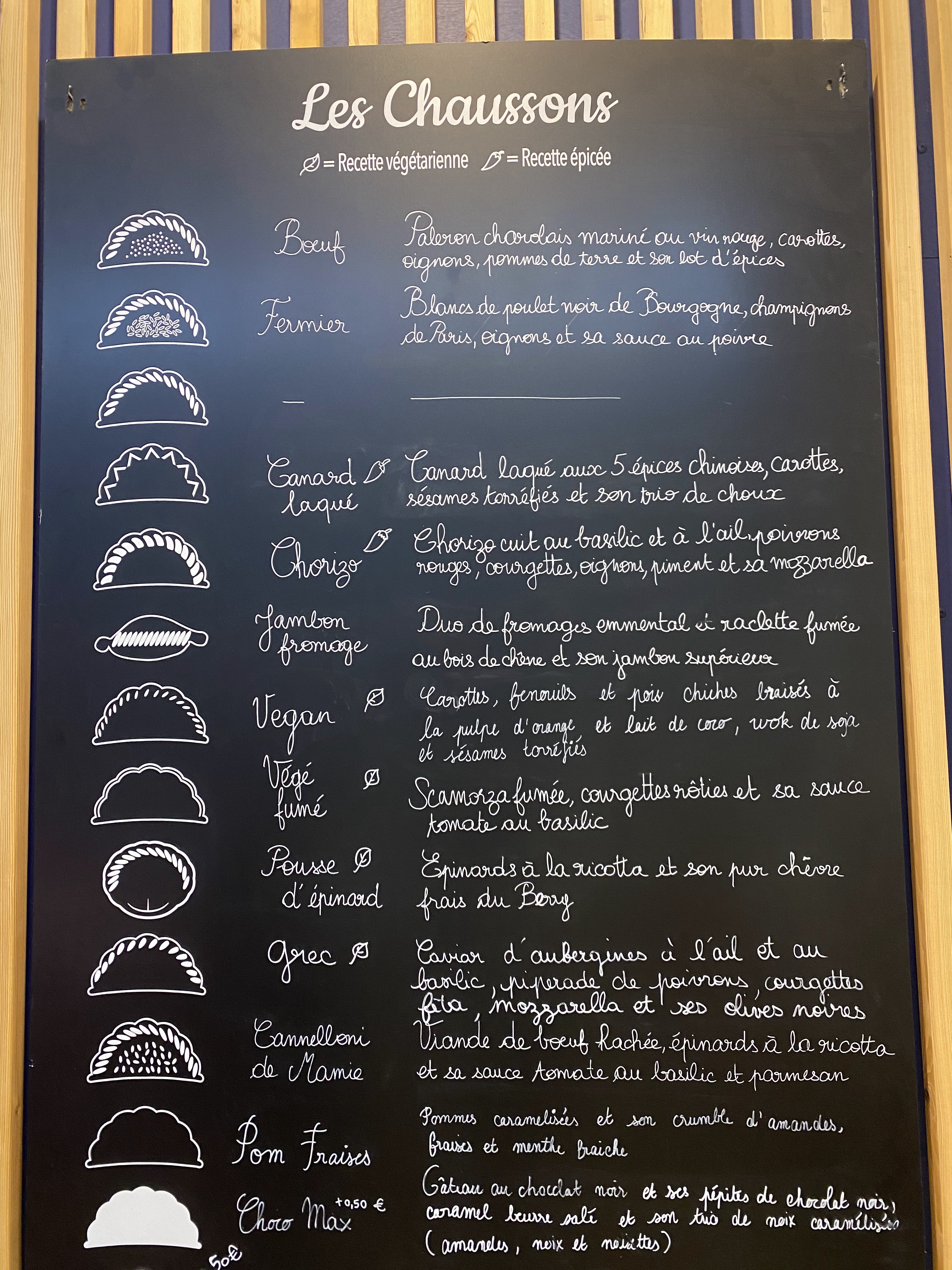 Délicieux chaussons ! Le prix peu paraître un peu cher au départ, mais ça vaut vraiment le coût. Produits frais et pleins de saveurs. La pâte est fine et pas écoeurante. Les chaussons sont bien garnies. Nos préfèrés : canard laqué et butternut
