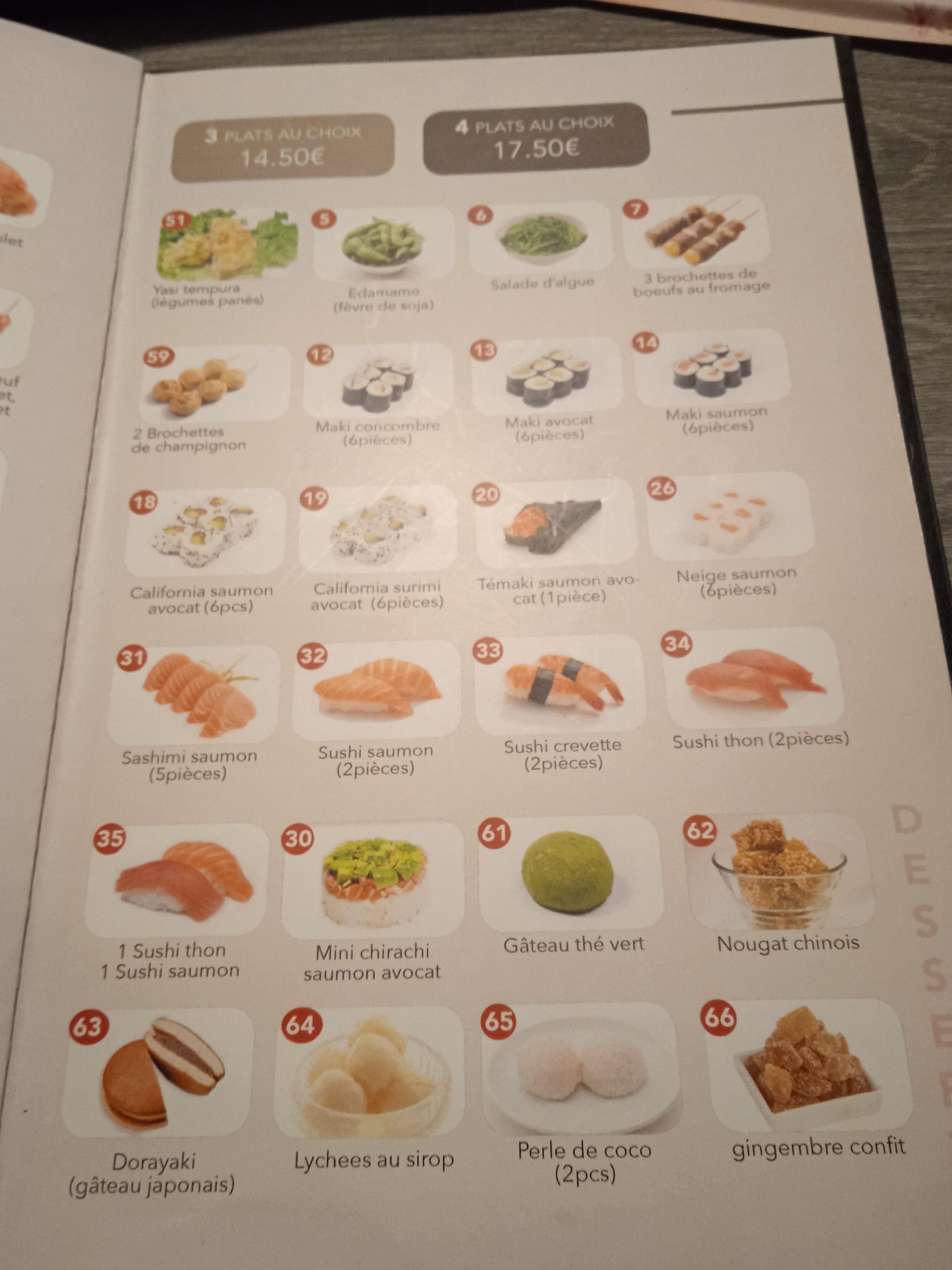 Je ne recommande pas. Ce n’était vraiment pas bon, voir immangeable. Le poisson n’était pas frais et le reste sans saveurs. Même les sushis en supermarché sont meilleurs, c’est pour dire...