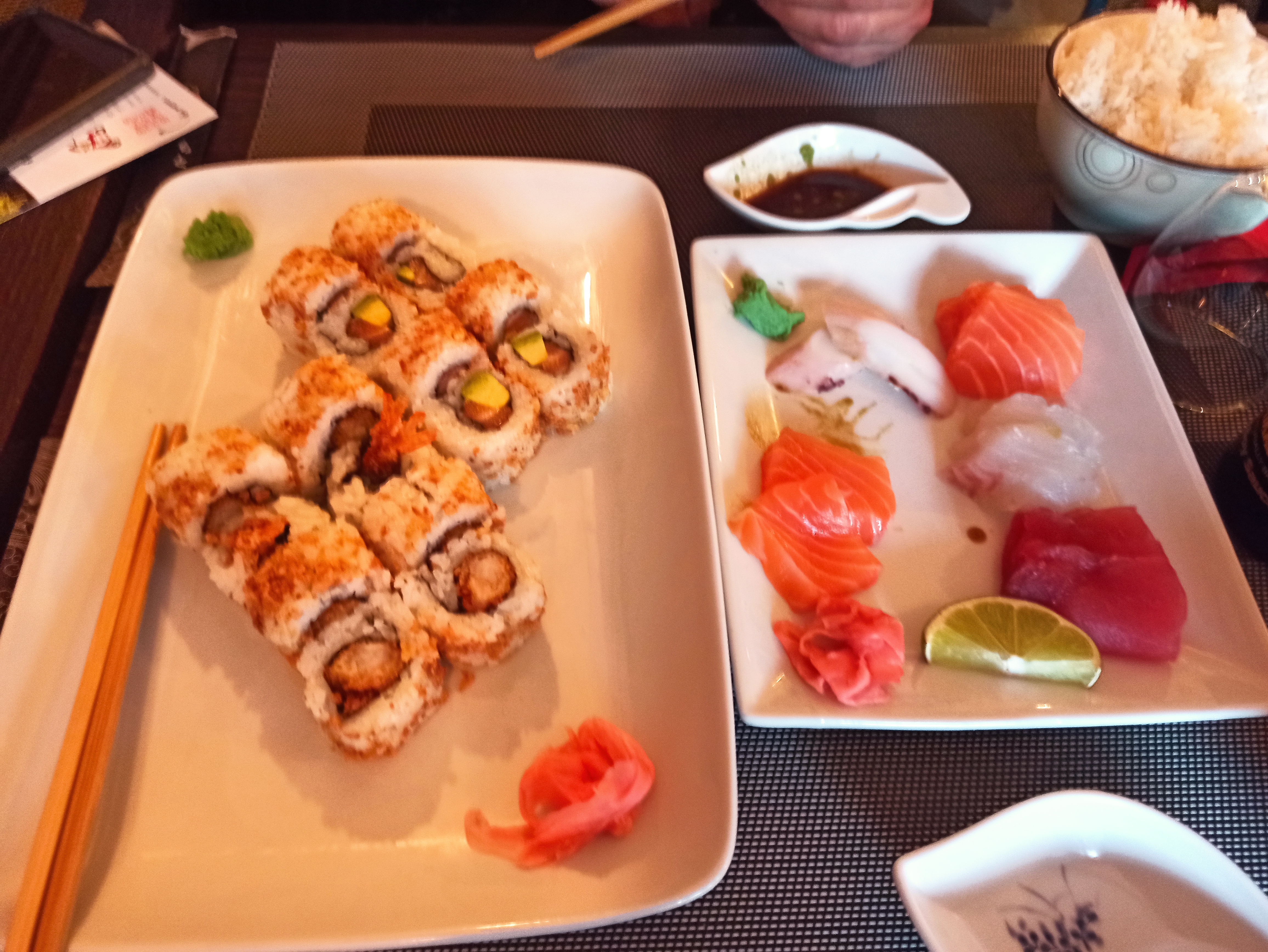 Extrêmement déçu de la qualité. Le riz était tellement cuit et compacte. Le poisson sans saveur. Je ne sais même pas si le riz était vinaigre tellement cela ne c est pas ressenti L avocat était très dur, la friture des tempura roll absolument pas à la hauteur de ce qu on trouve habituellement. Dernière fois dans cette établissement