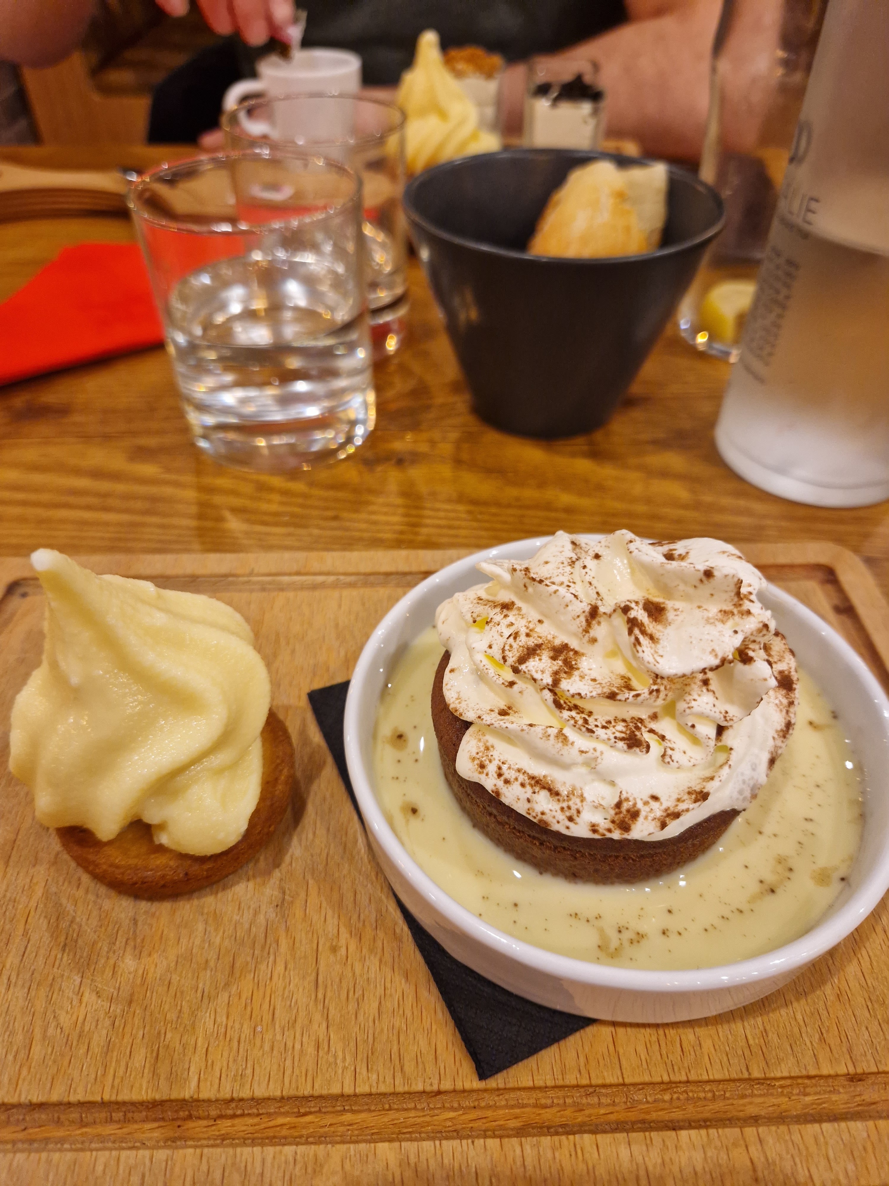 Déçue des plats et de leur présentation. C’était sec et froid. Par ailleurs, le serveur touchait sans faire exprès la nourriture du bout de ses doigts, ça arrive. Seulement quand on le voit se toucher les cheveux, le corps,… c’est assez limite. Leur moelleux au chocolat n’était pas top. Dommage.