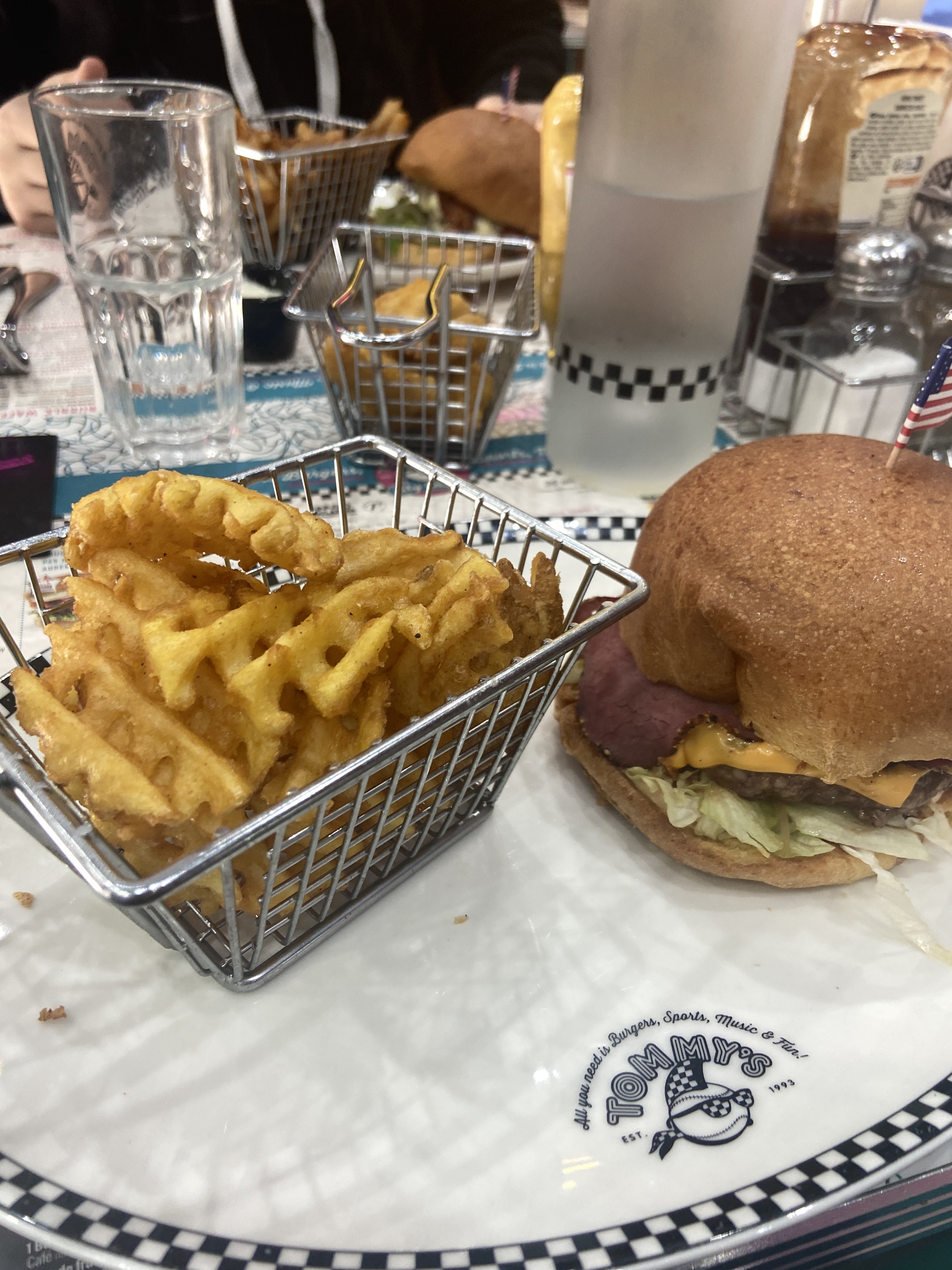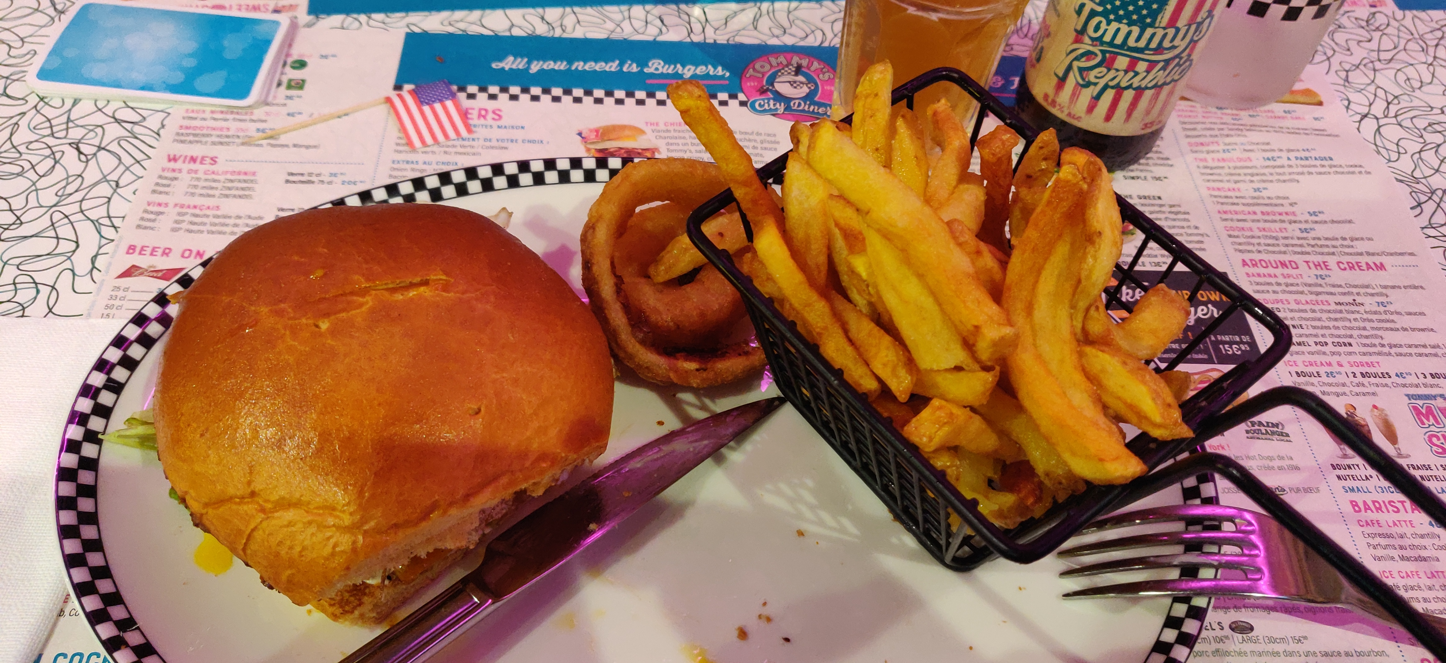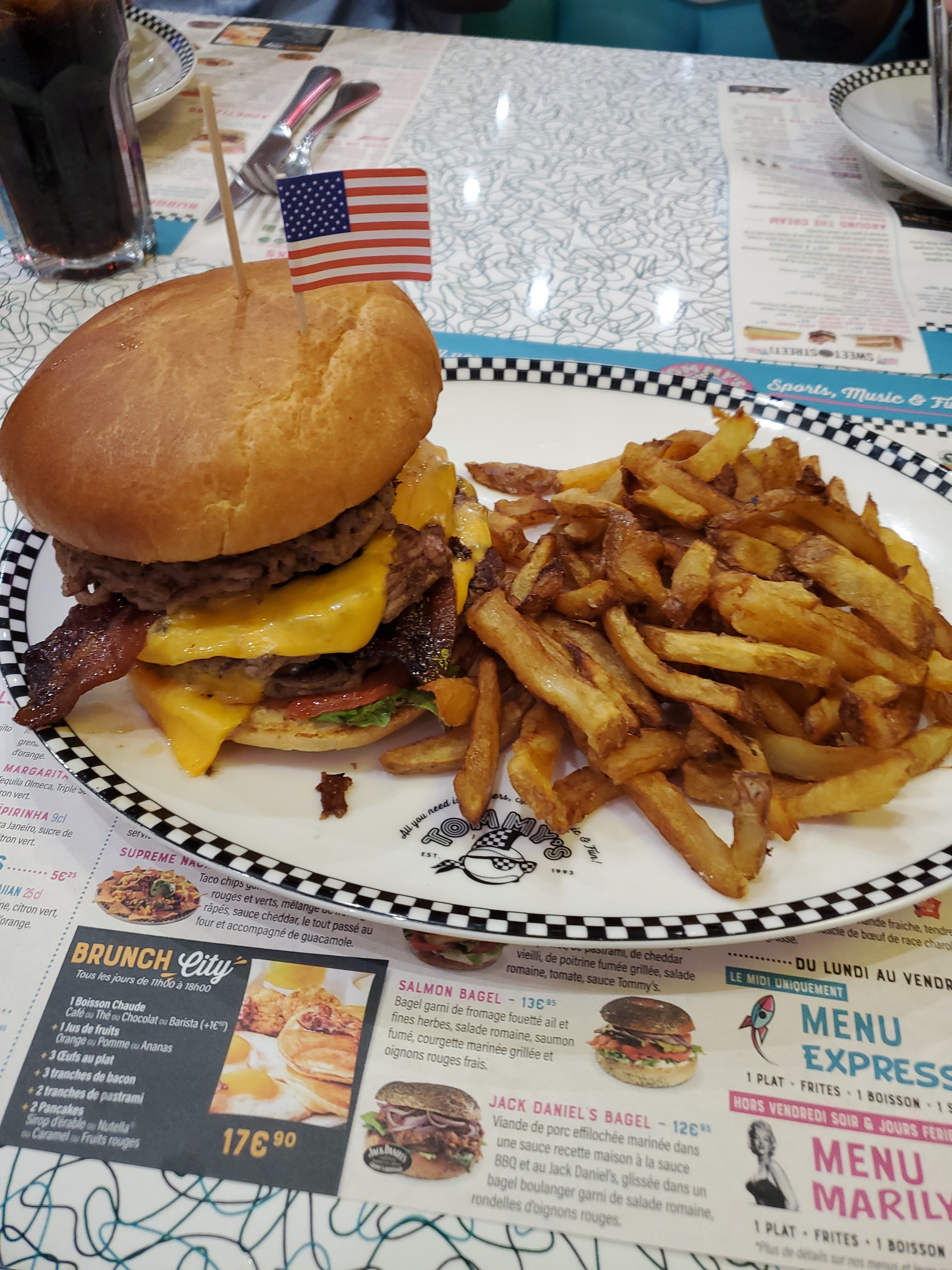 J’ai passé une bonne soirée chez Tommy’s Diner. Les serveurs sont très sympathiques et à l’attention des clients. Les prix sont abordables. Les frites au top, le cocktail pareil et juste le burger est bon aussi mais ce n’est pas vraiment extraordinaire. Je recommande et j’ai envie de revenir pour découvrir d’autres plats.