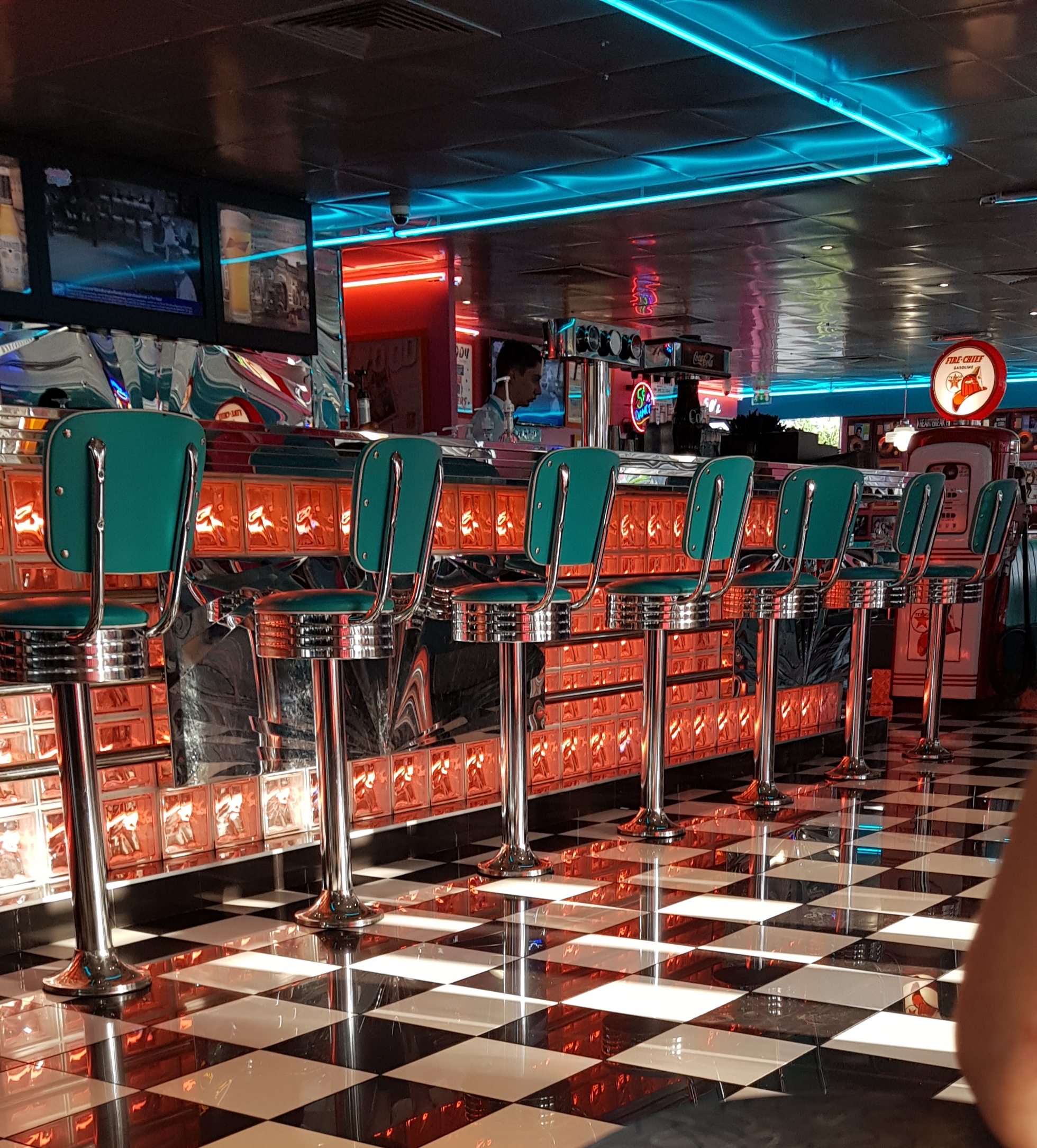 Personnel compétent et sympathique, ambiance 'Diner' bien reconstituée. Bonne cuisine aussi. Bref, j'ai passé un bon moment et je recommande